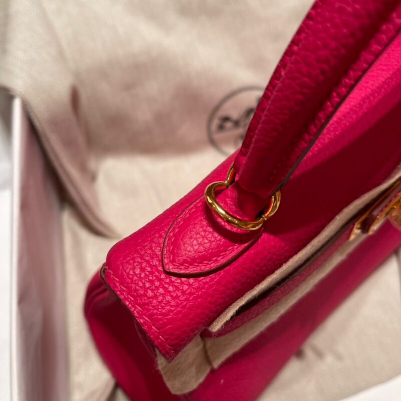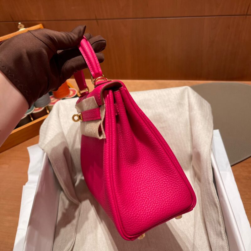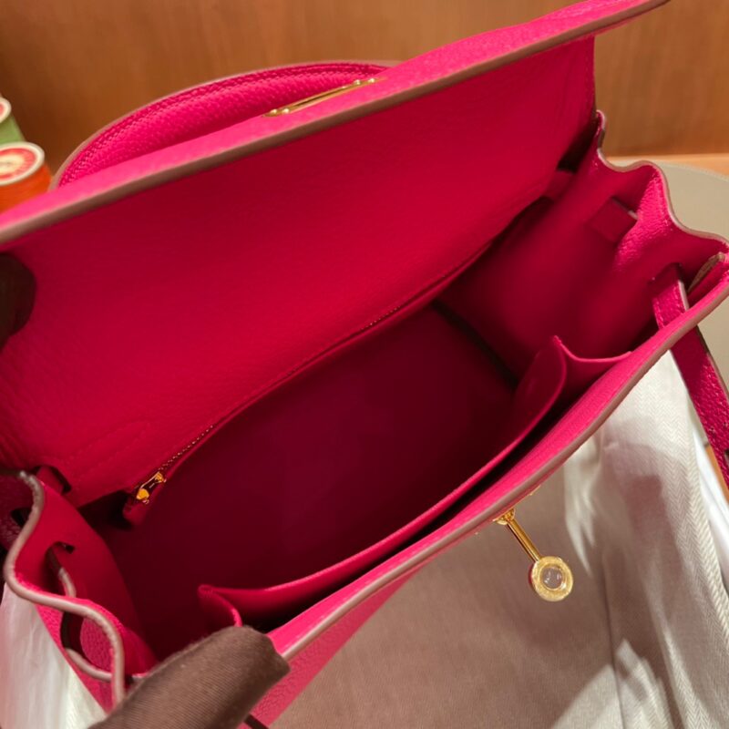 Kelly 25cm Togo Leather. Extreme Pink. Inner Seam Retourne. Gold Buckle