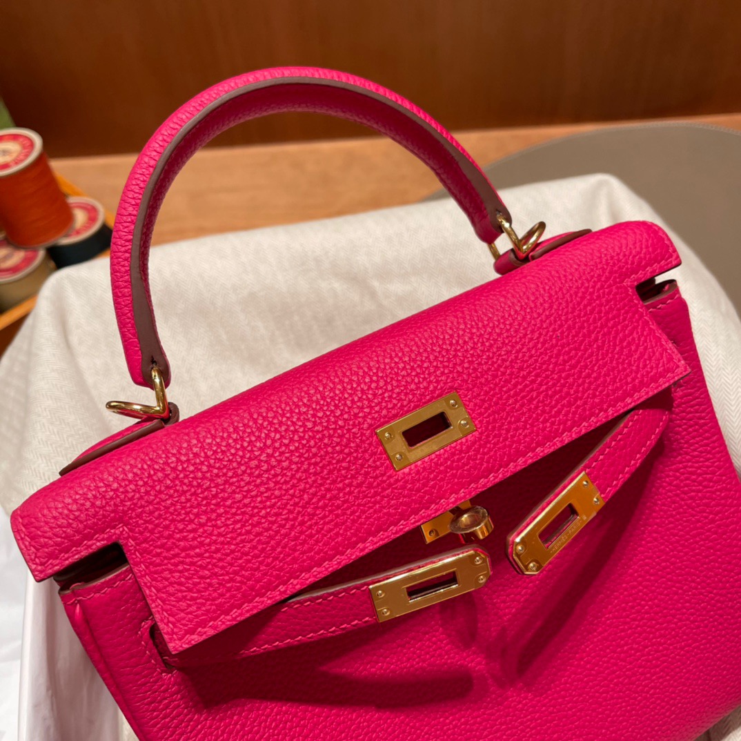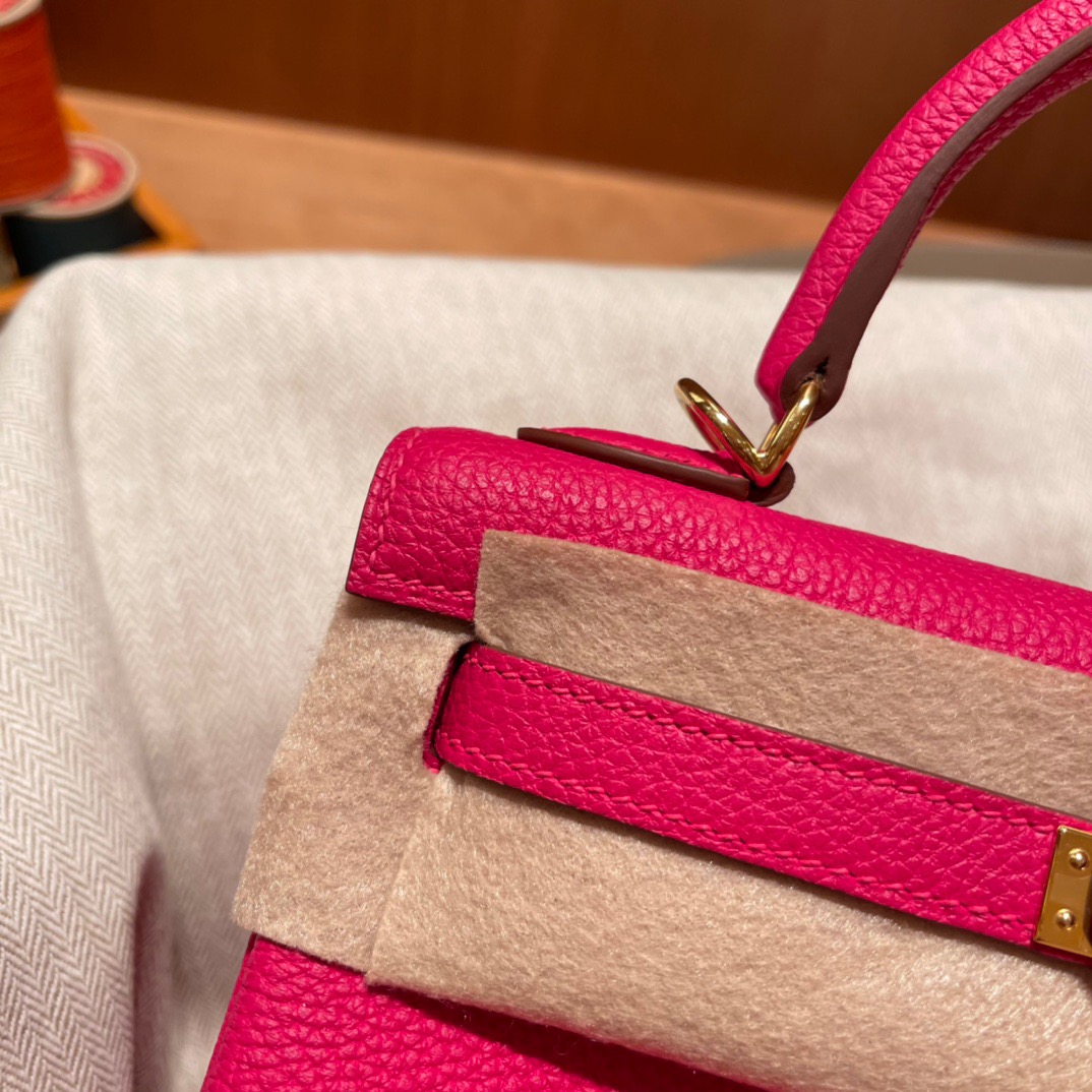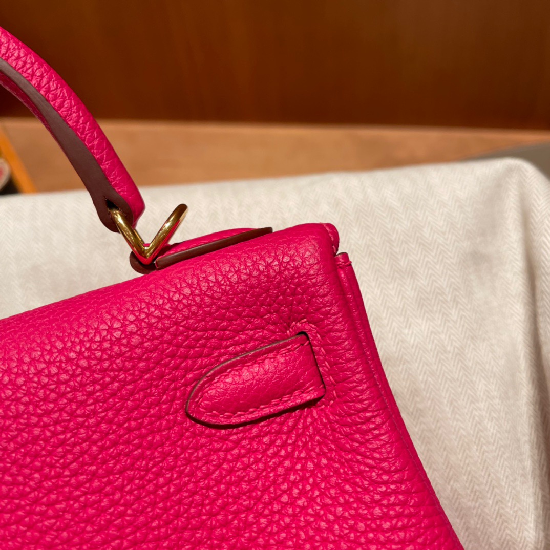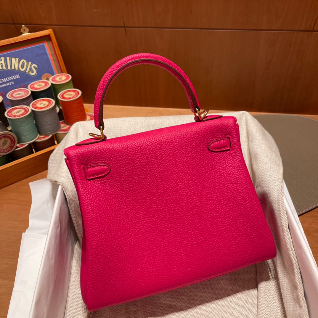 Kelly 25cm Togo Leather. Extreme Pink. Inner Seam Retourne. Gold Buckle