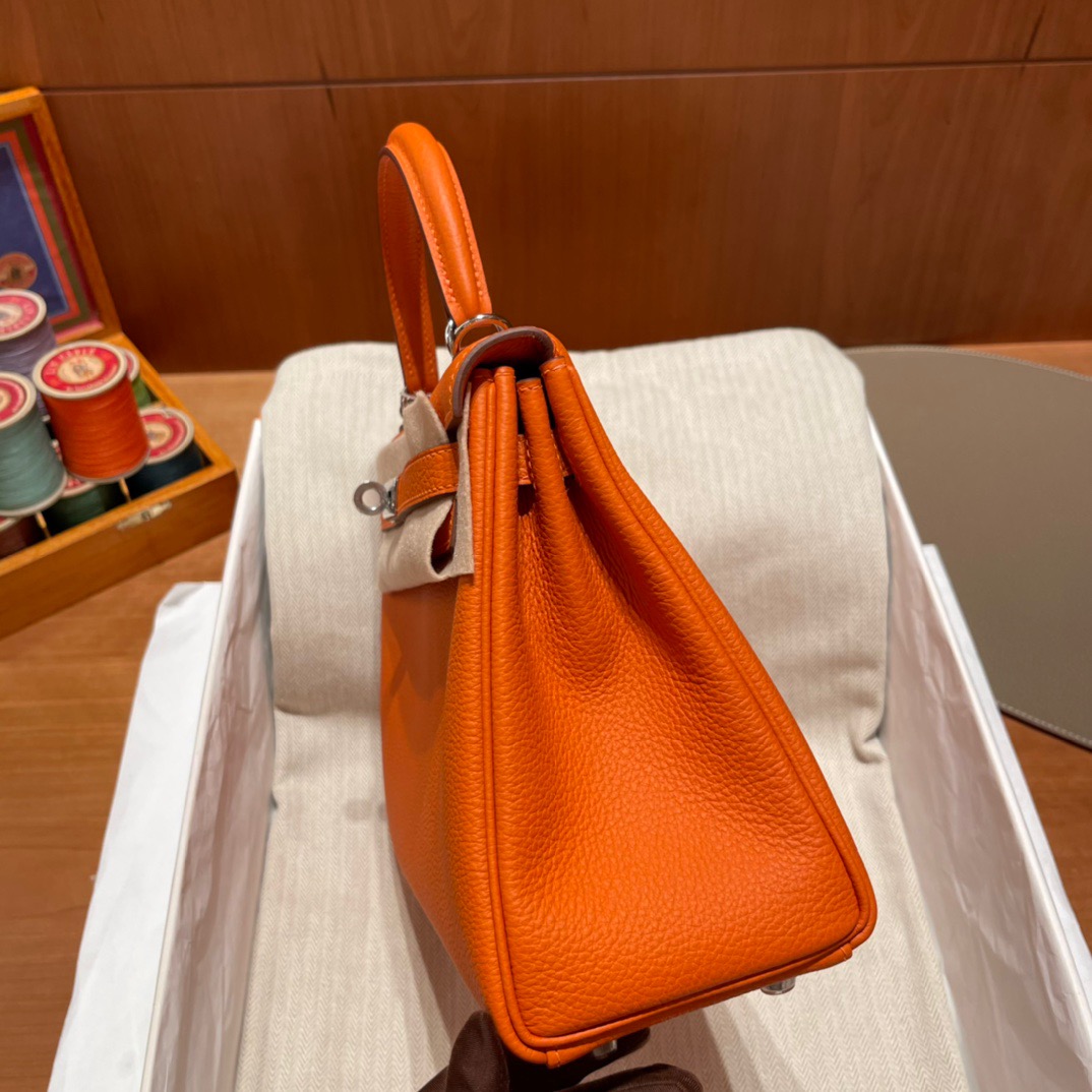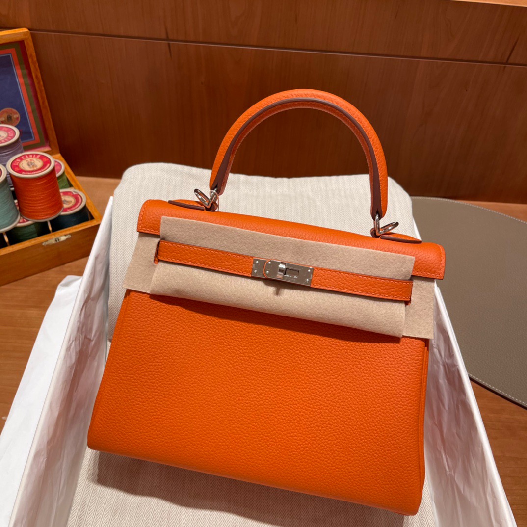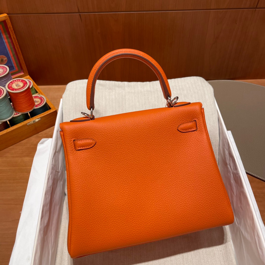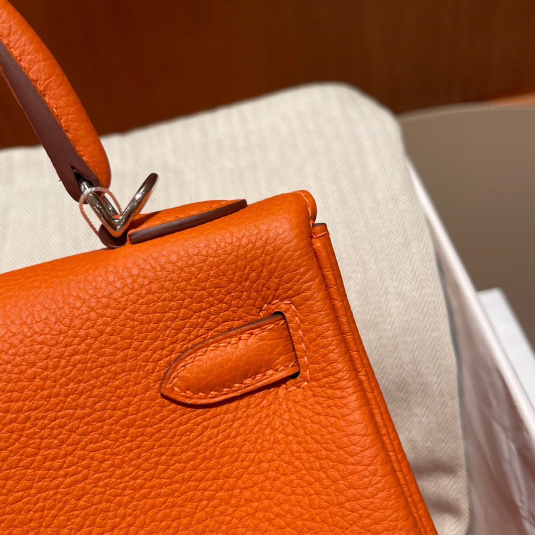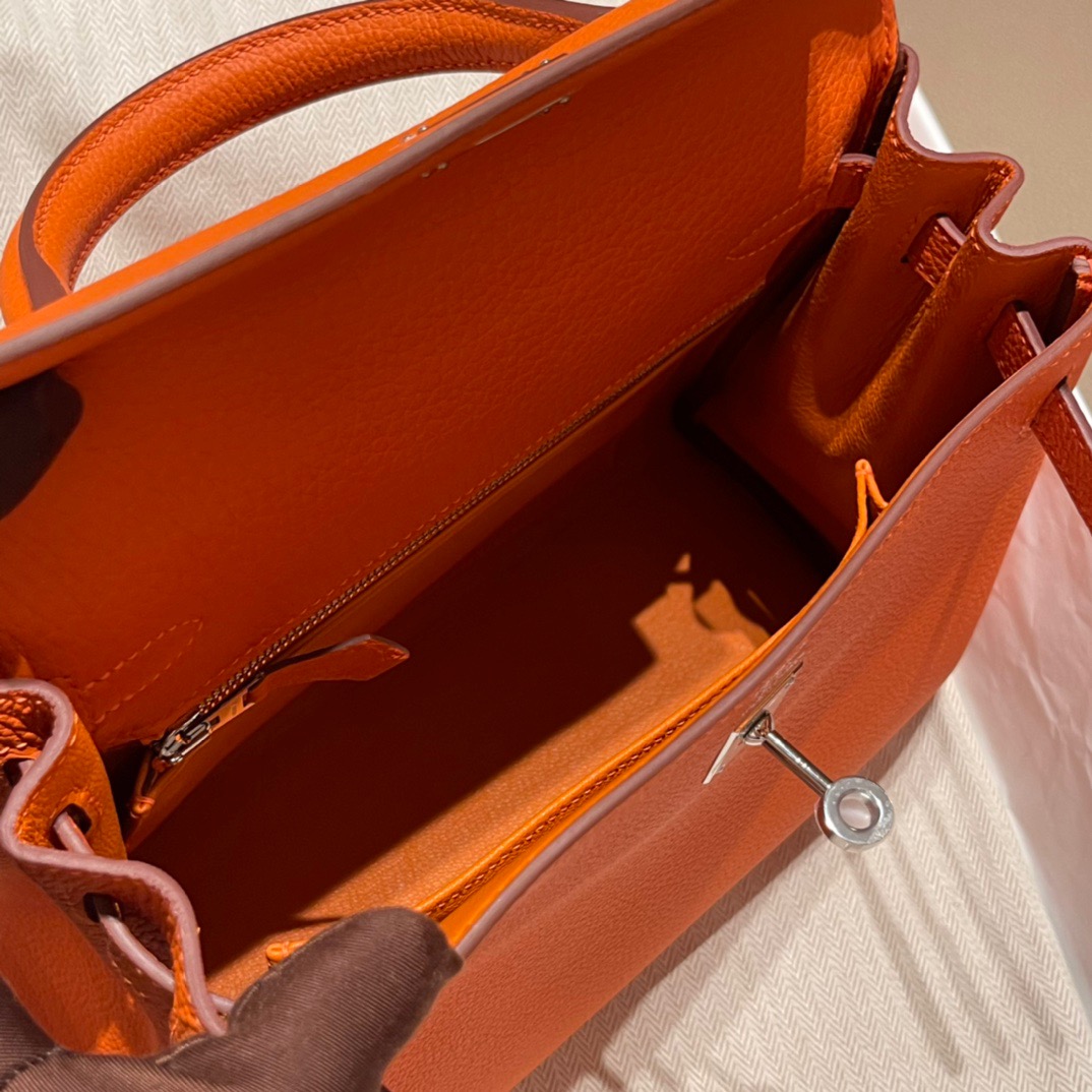 Kelly 25cm Togo leather inseam 93 Orange. Silver Buckle