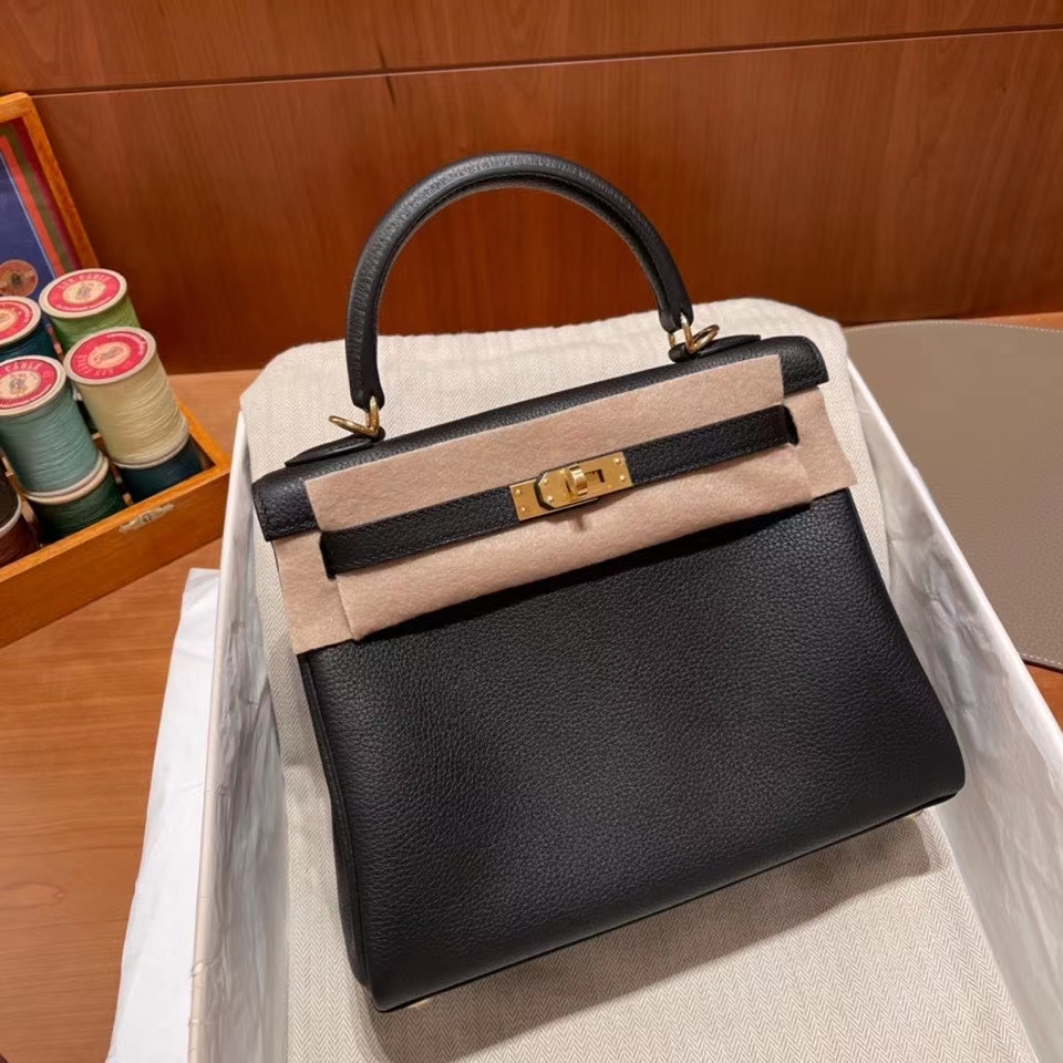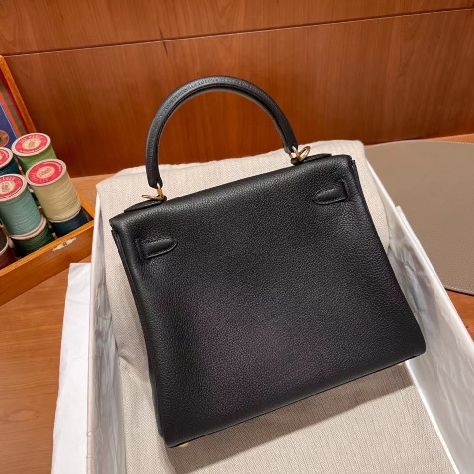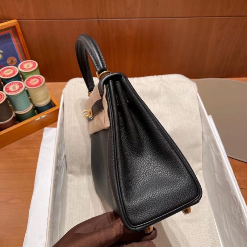 Kelly 25cm inner seam Retourne Togo leather black. Gold Buckle