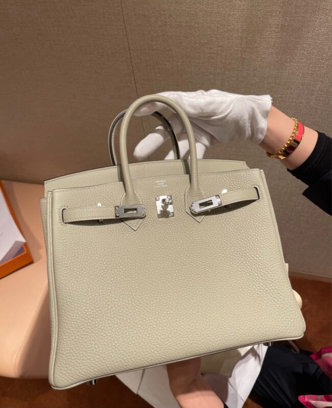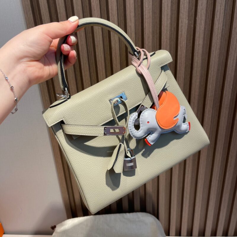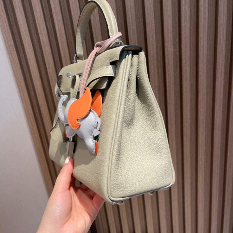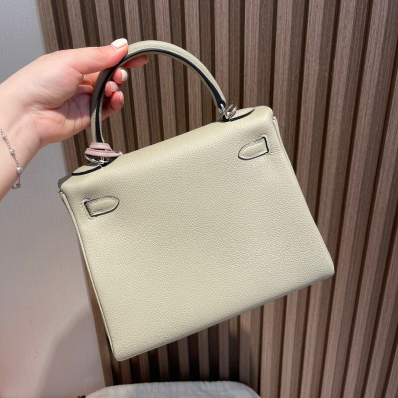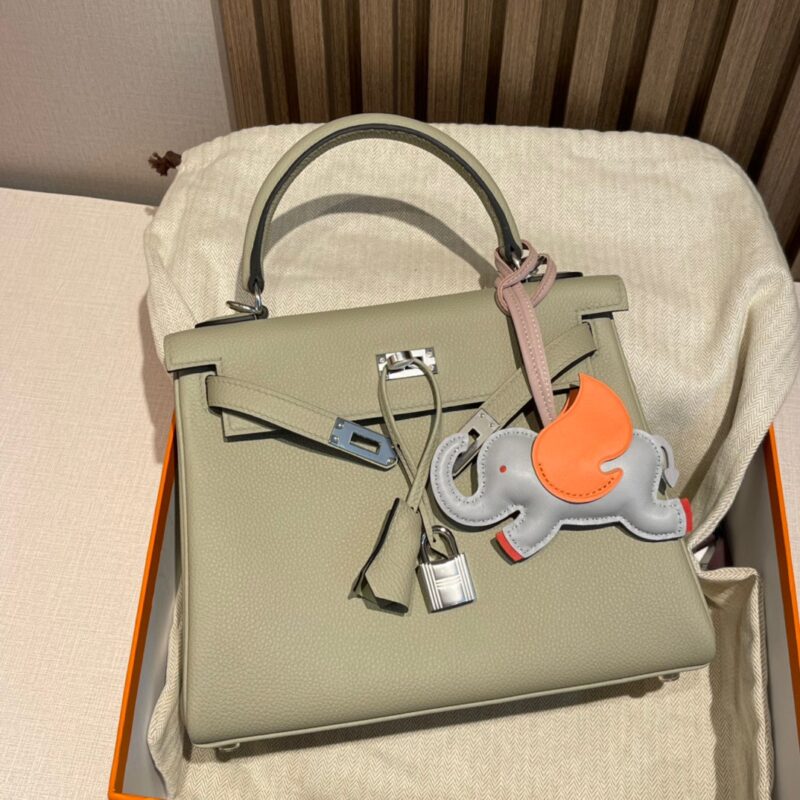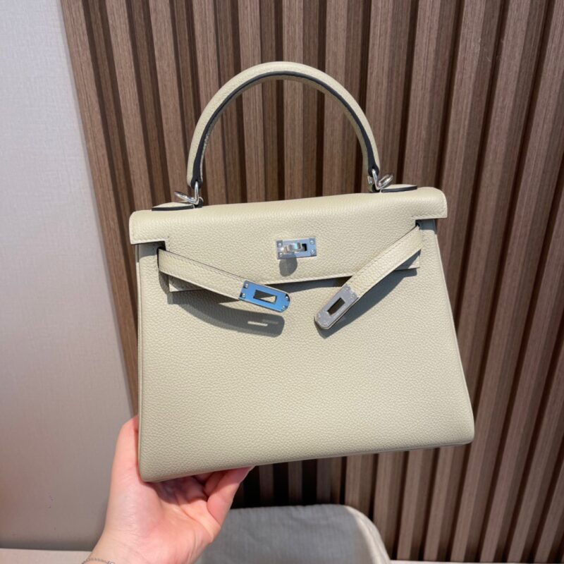 Kelly 25cm Togo Leather Q1 Sage Green (Sauge). Silver Buckle