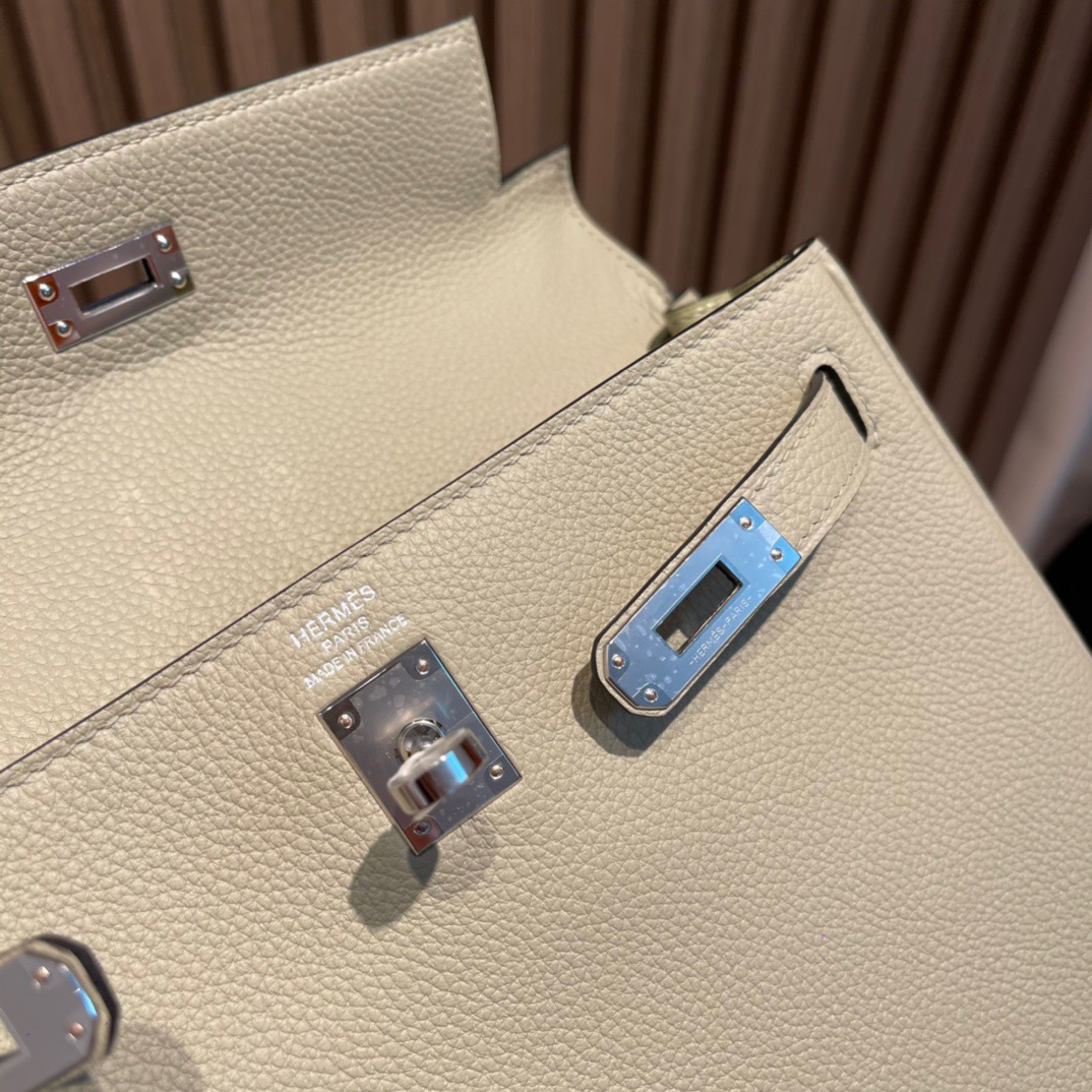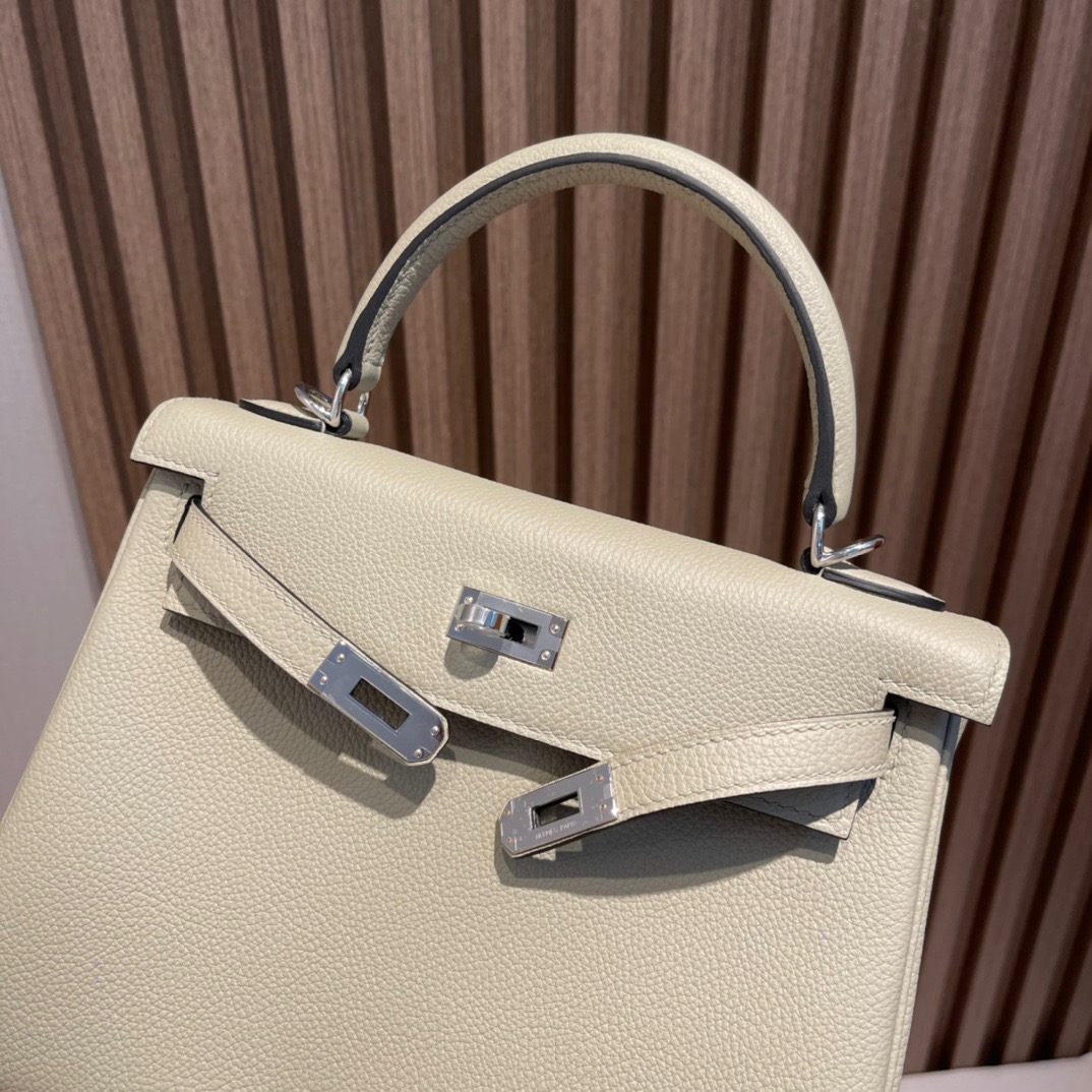 Kelly 25cm Togo Leather Q1 Sage Green (Sauge). Silver Buckle