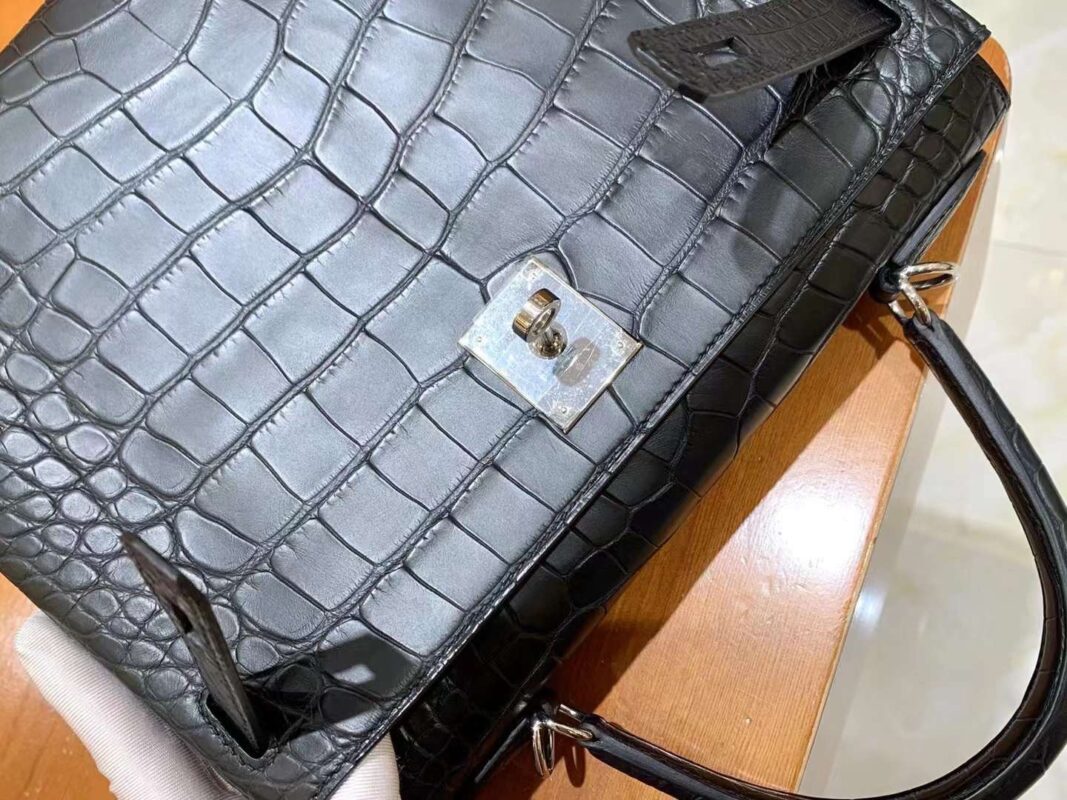 Kelly 25cm Cube – Alligator – Black Silver