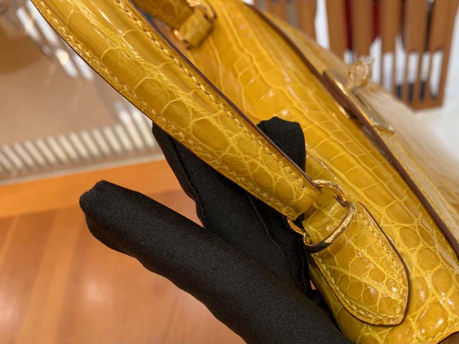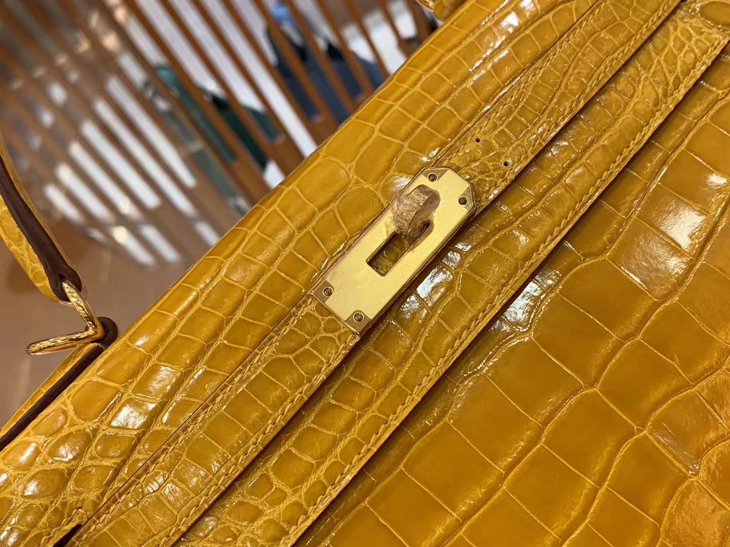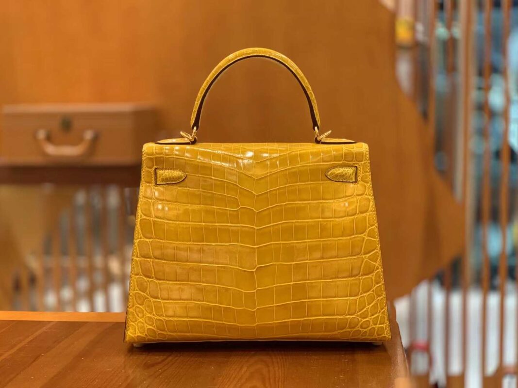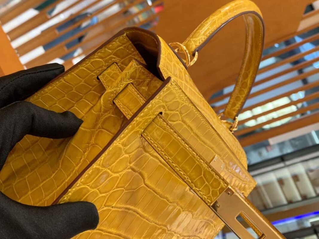 Kelly 28cm Amber Yellow Imported first-class Nile crocodile leather. French beeswax thread. 100% hand-sewn