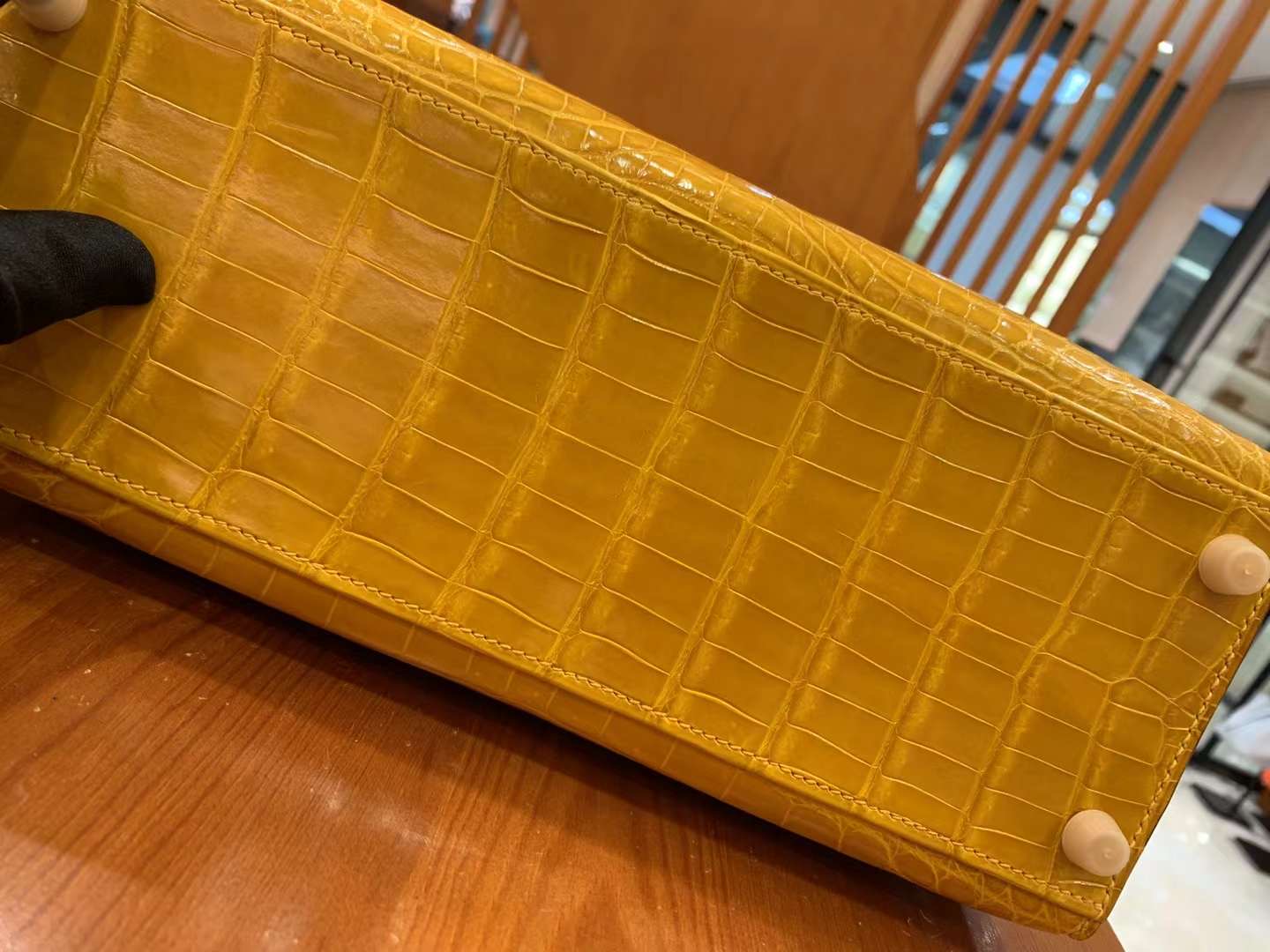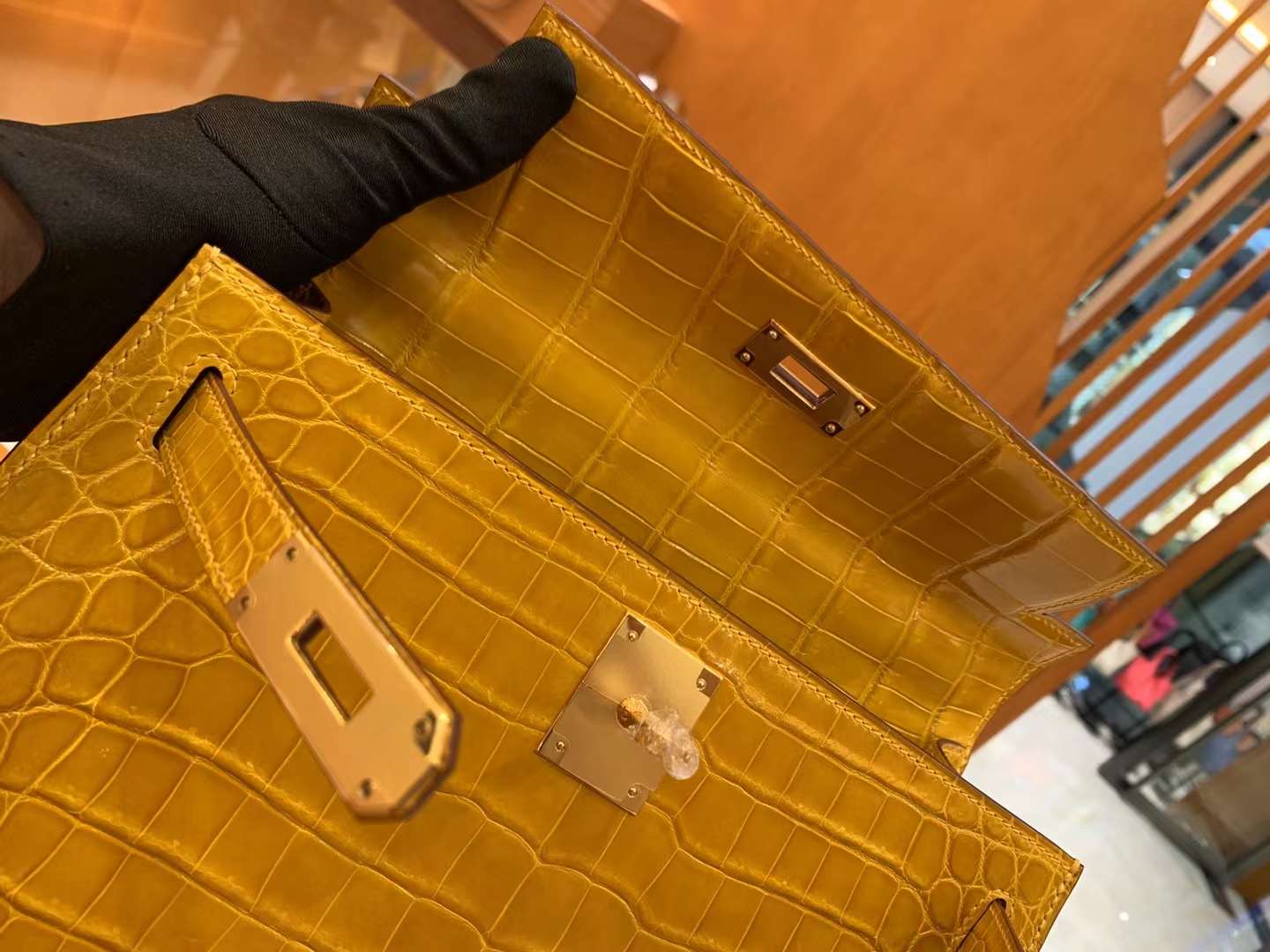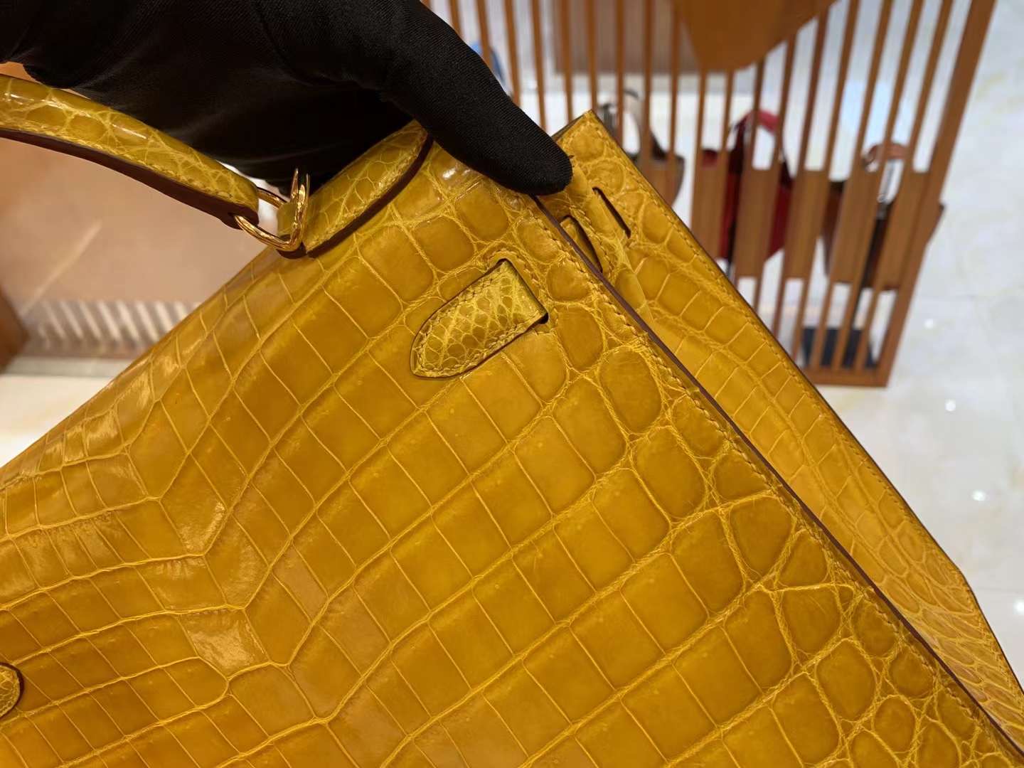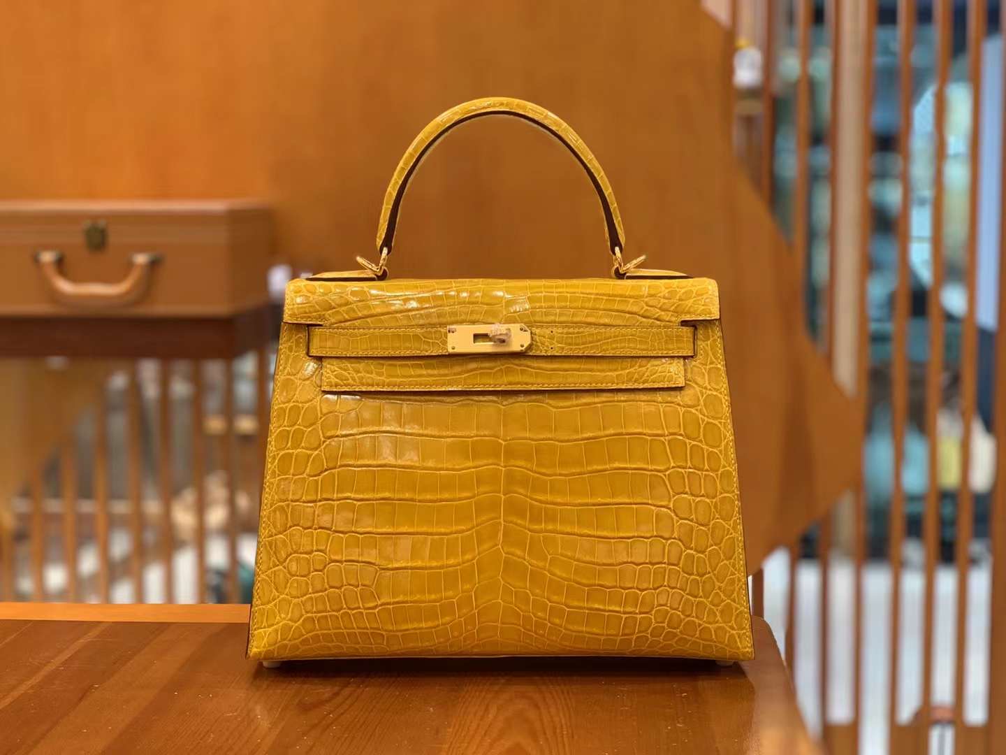Kelly 28cm Amber Yellow Imported first-class Nile crocodile leather. French beeswax thread. 100% hand-sewn