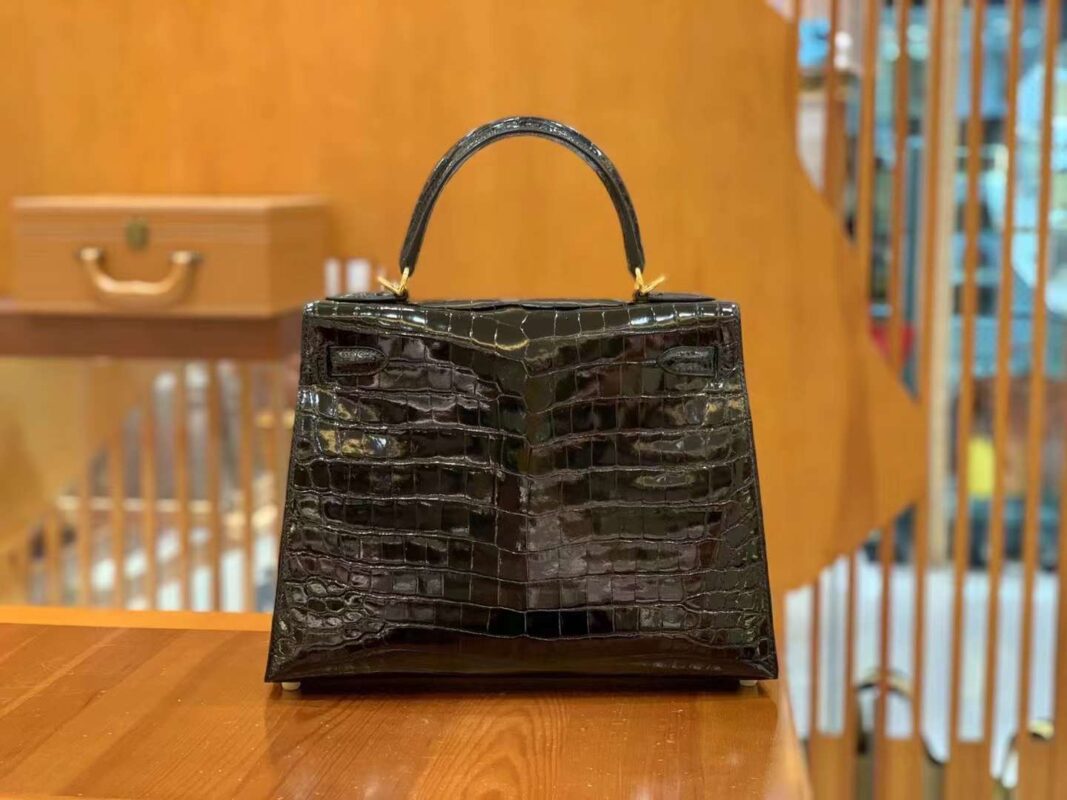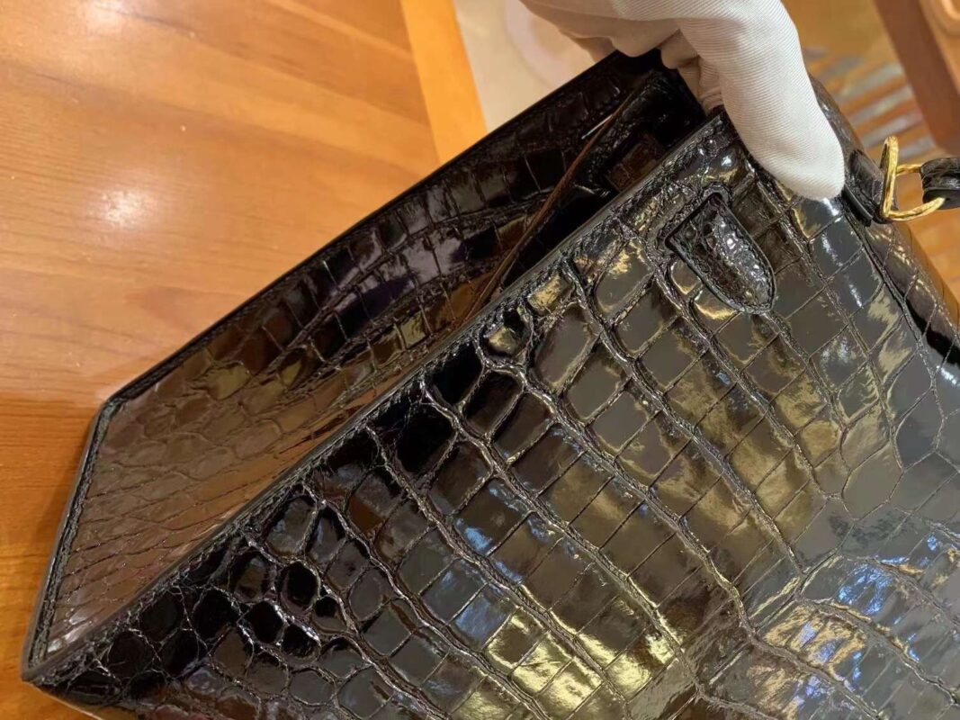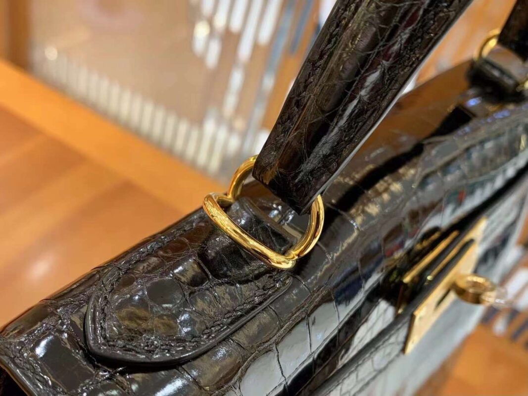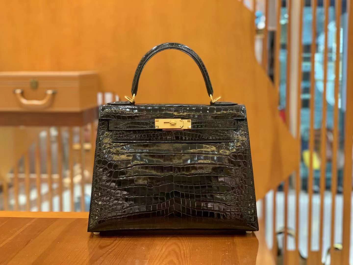 Kelly 28cm Black Gold Imported first-class Nile crocodile leather. French beeswax thread. 100% hand-sewn