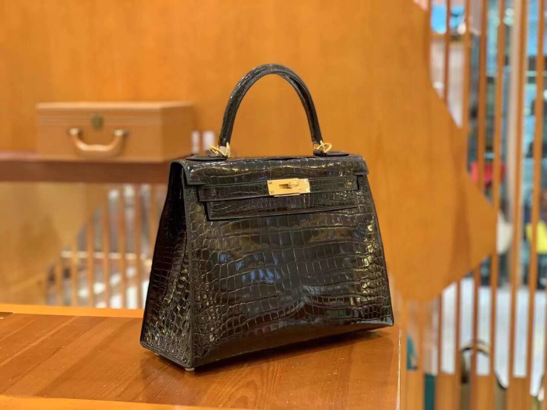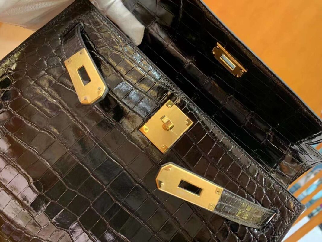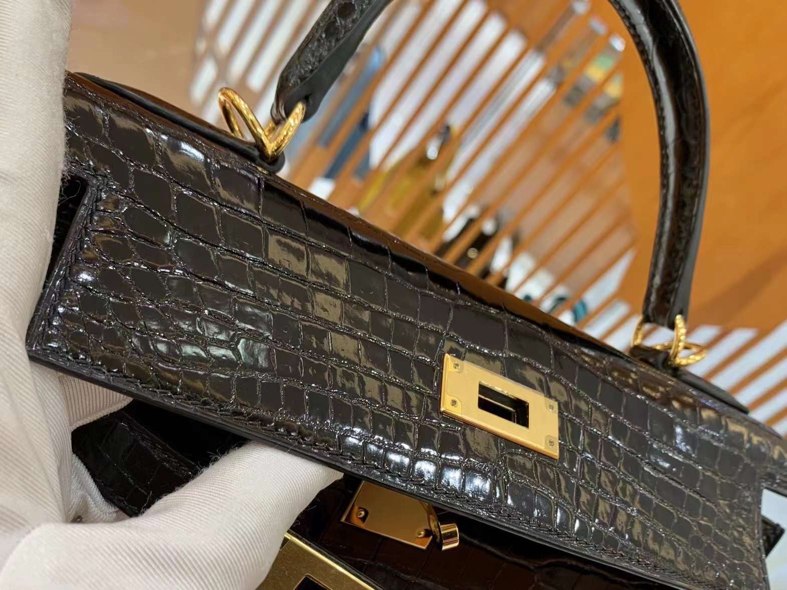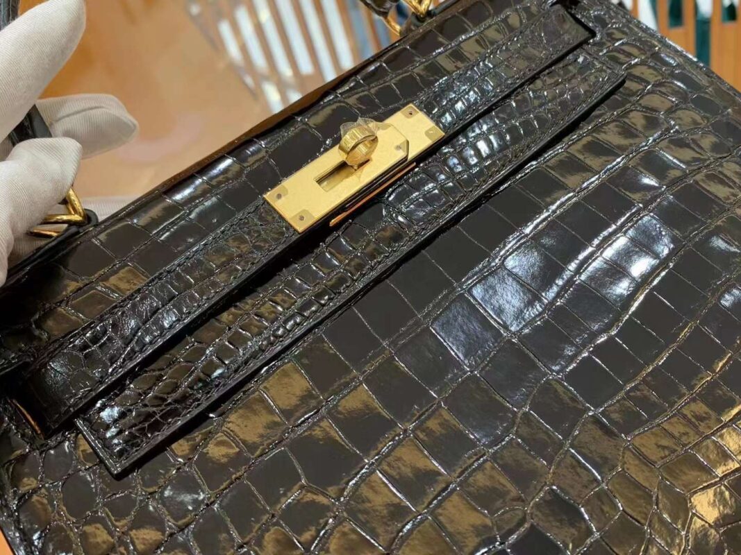 Kelly 28cm Black Gold Imported first-class Nile crocodile leather. French beeswax thread. 100% hand-sewn