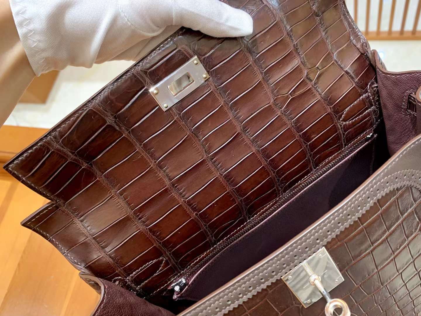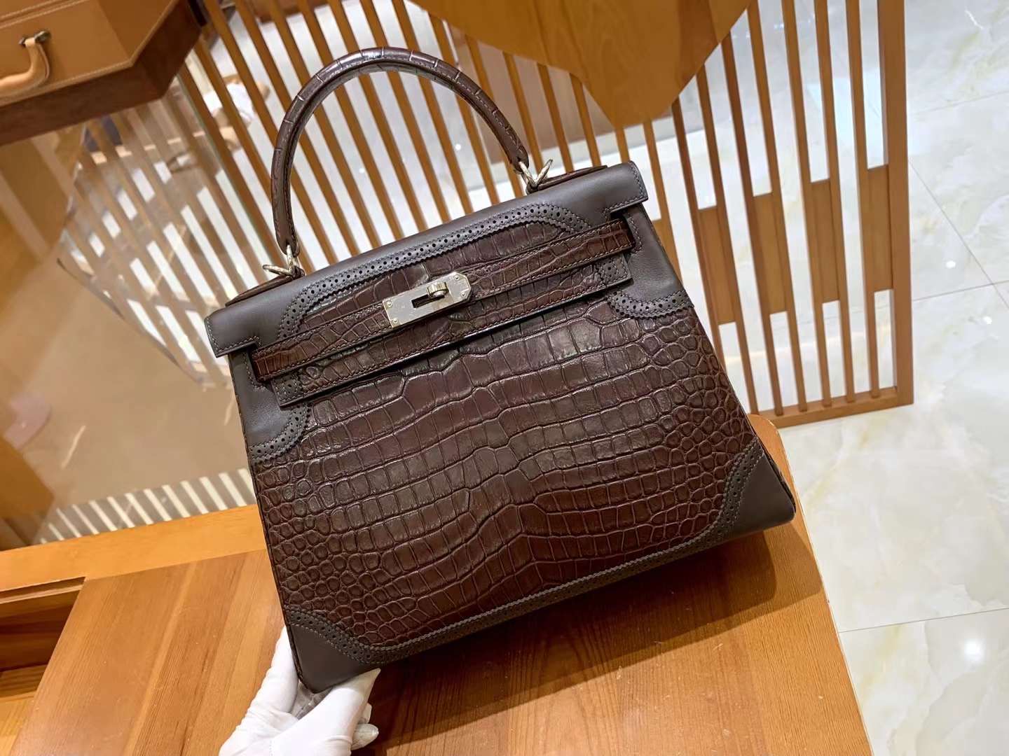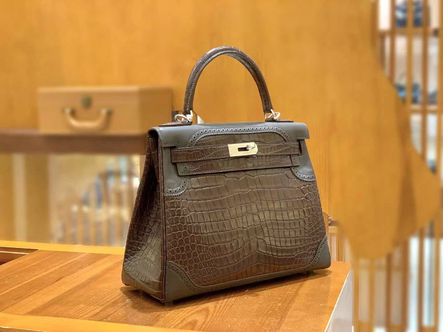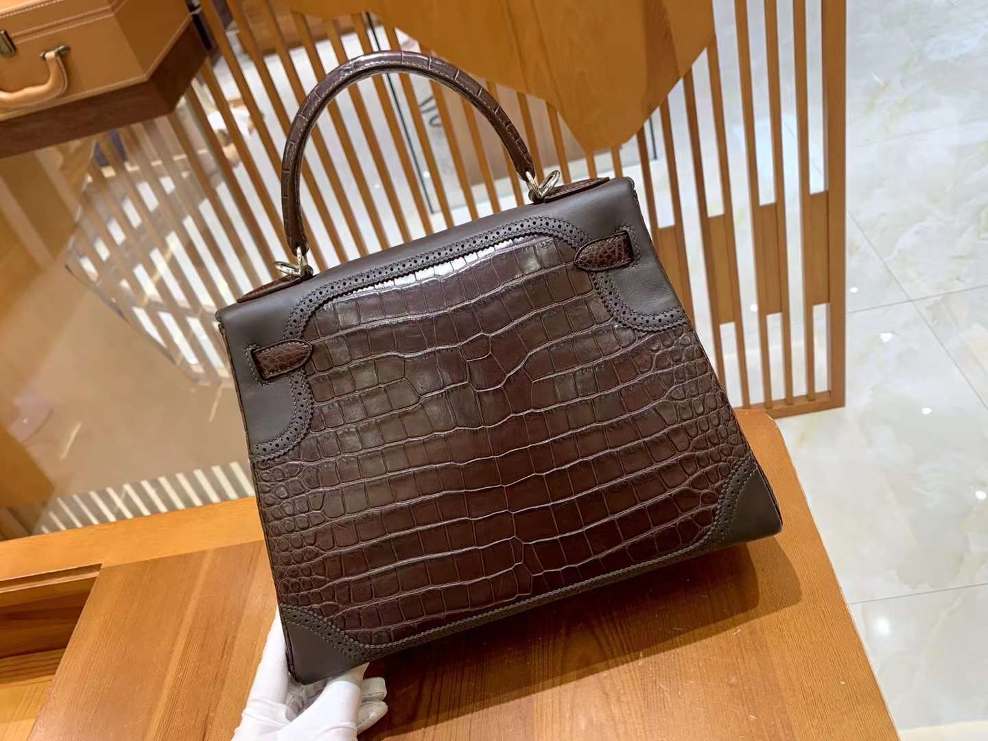 Kelly 28 Crocodile Matte Brown