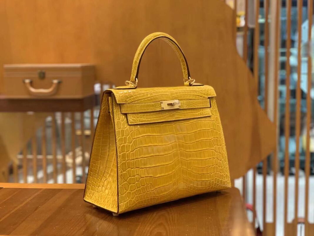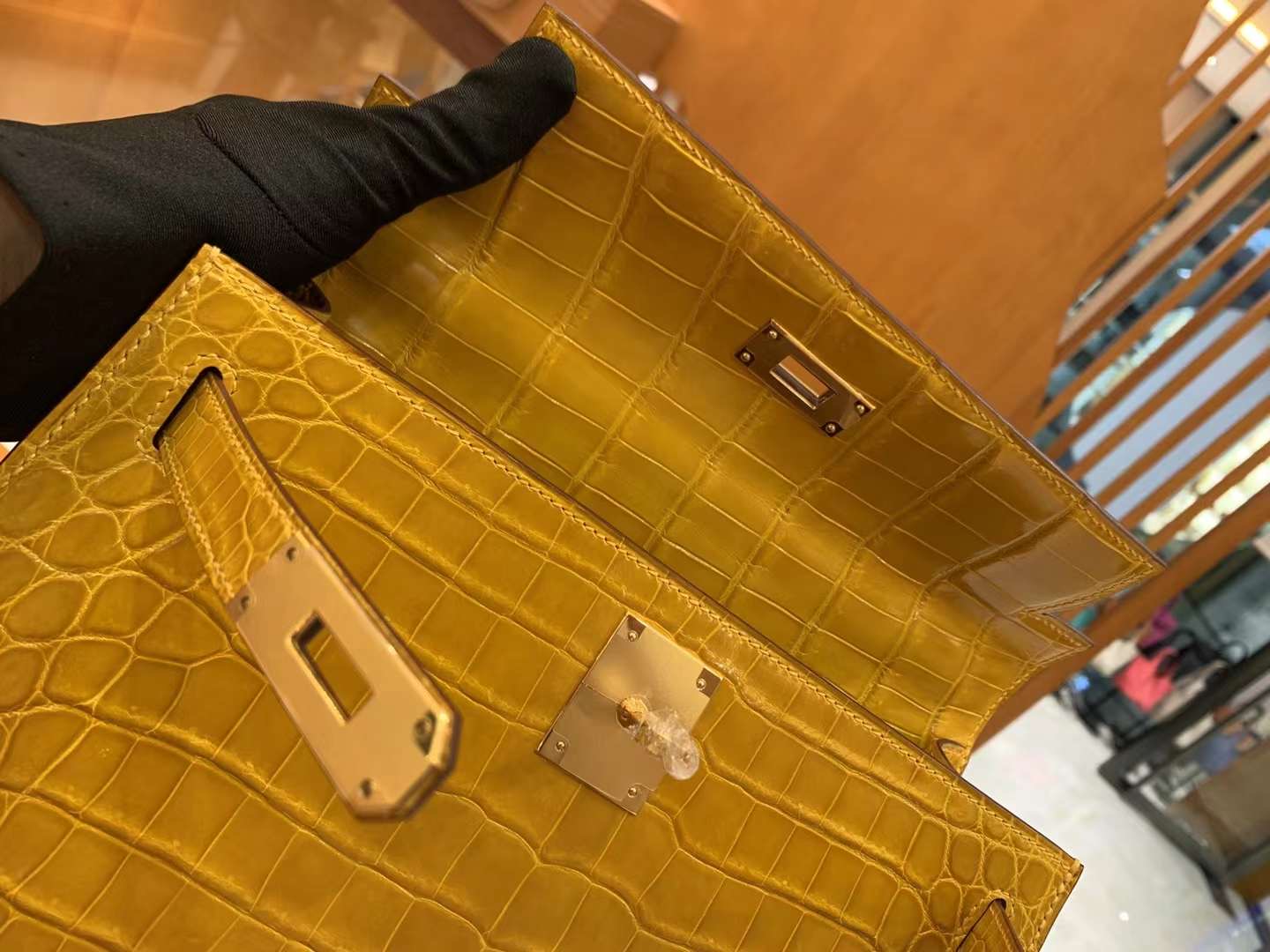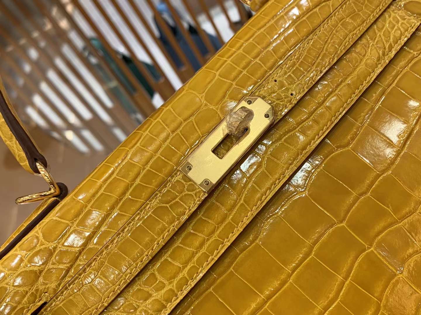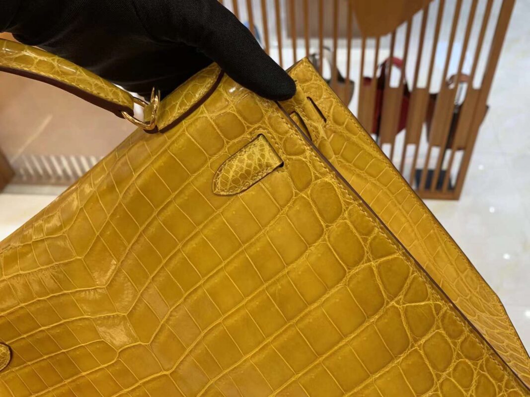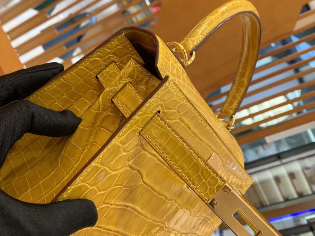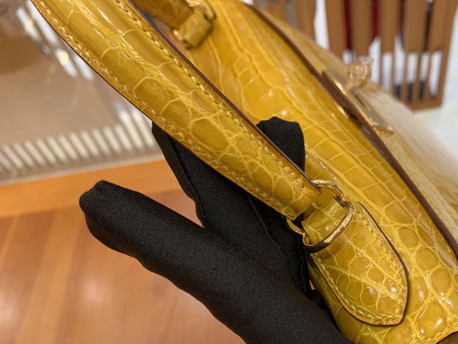 KL 28cm Amber Yellow First-class Nile Crocodile leather. Gold Buckle. Imported raw materials. All Hand Sewn