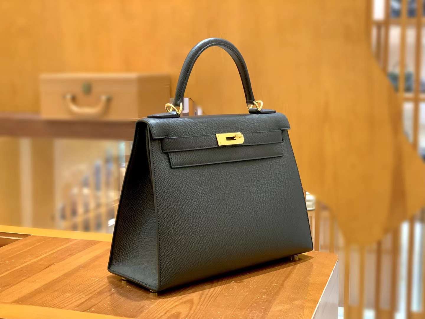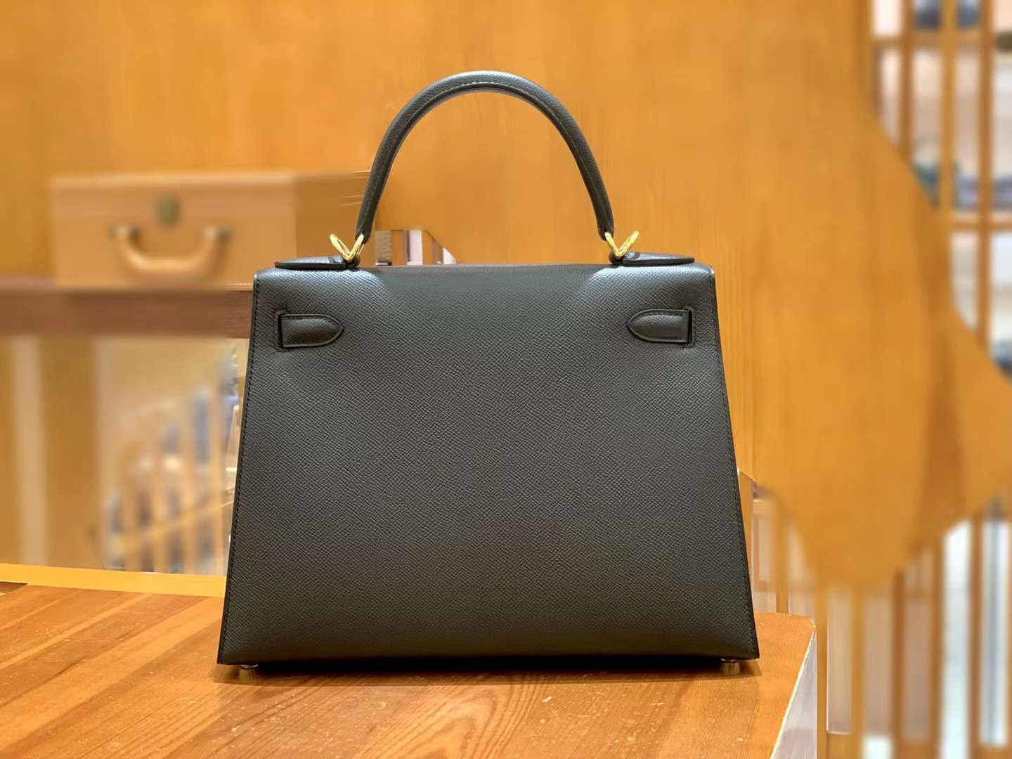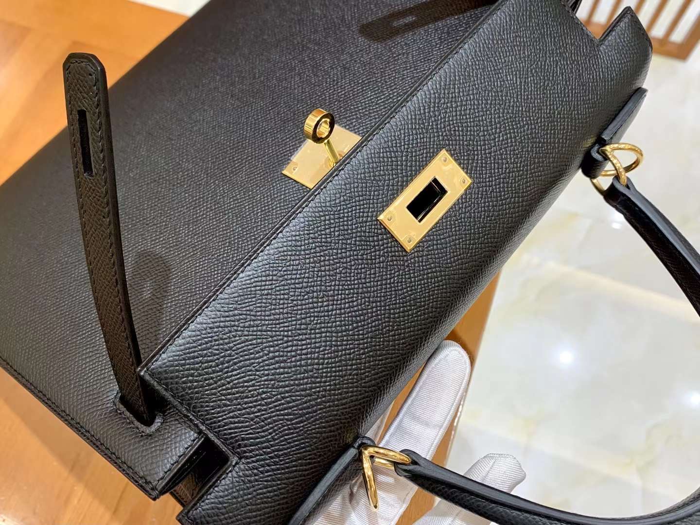Kelly 28cm Epsom Black gold buckle imported Epsom cowhide. French original beeswax thread, fully hand-sewn.