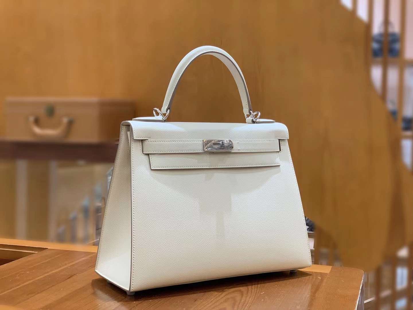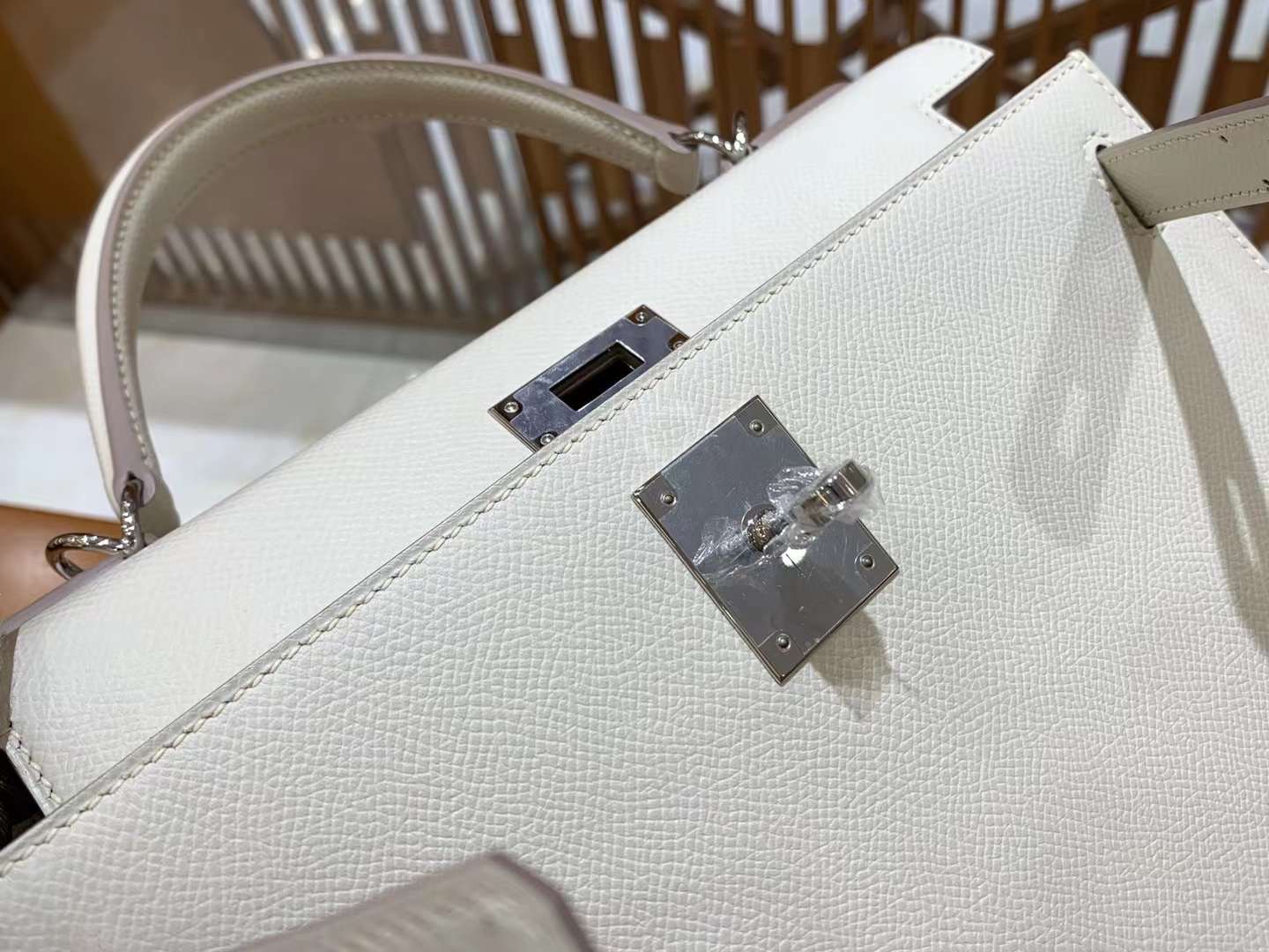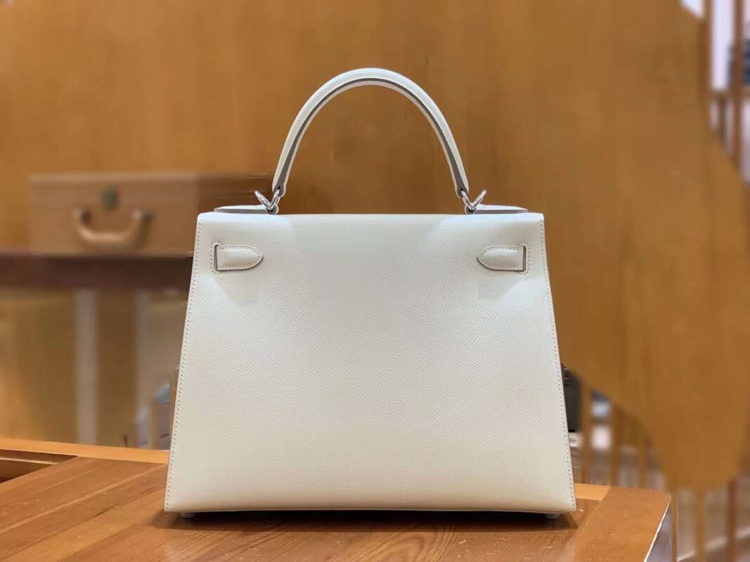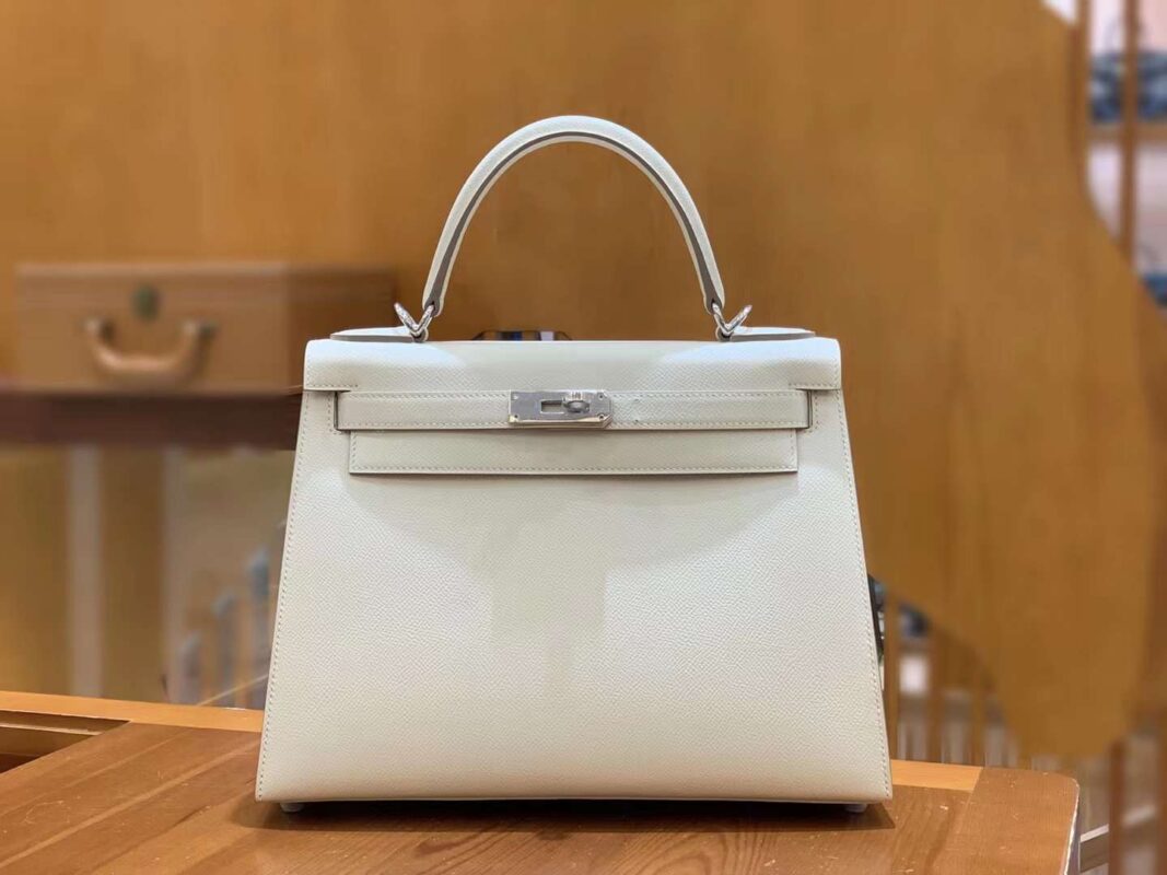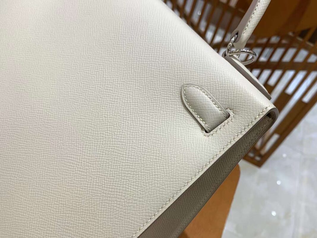 Kelly 28cm Craie silver buckle imported Epsom cowhide French original beeswax thread fully hand-sewn