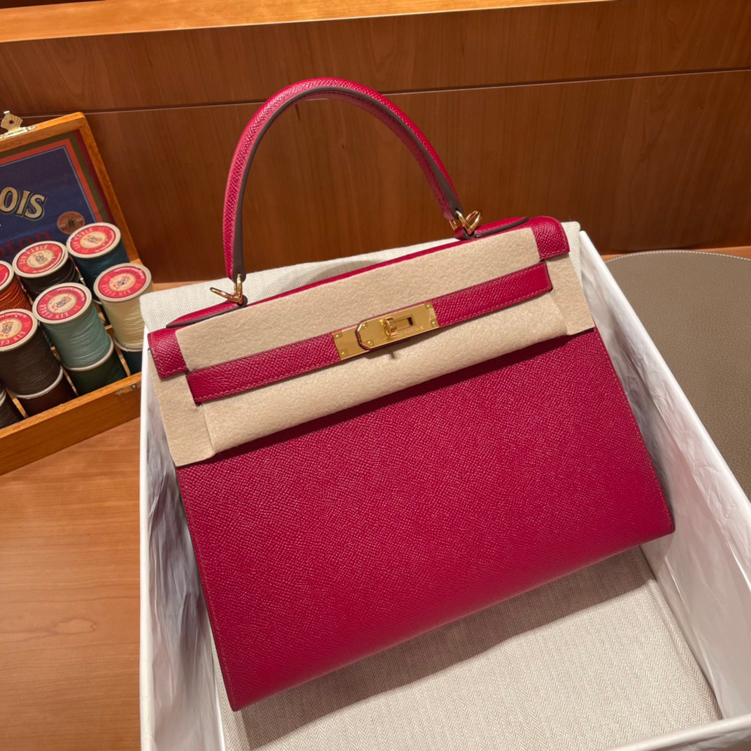 Kelly 28cm Epsom Leather. B5 Ruby Red (Noble Red)