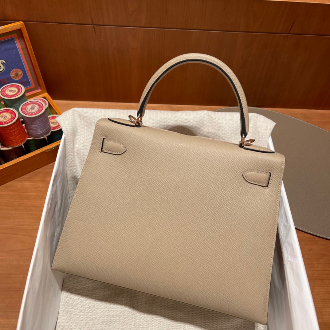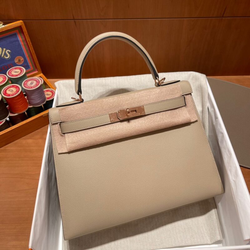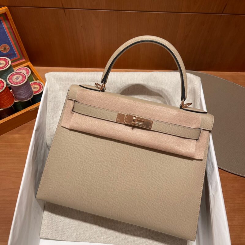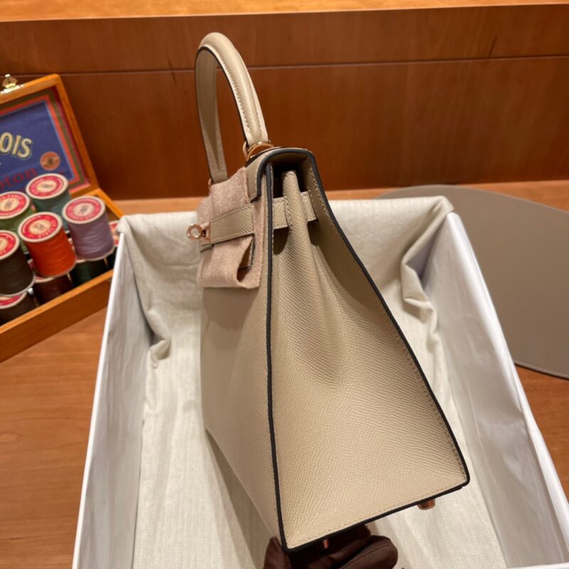 Kelly 28cm Epsom Leathe. S2 Grey Trench. Gold Buckle