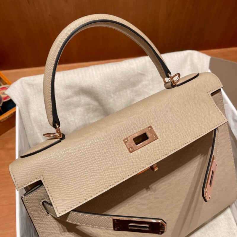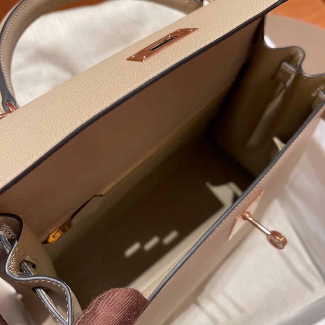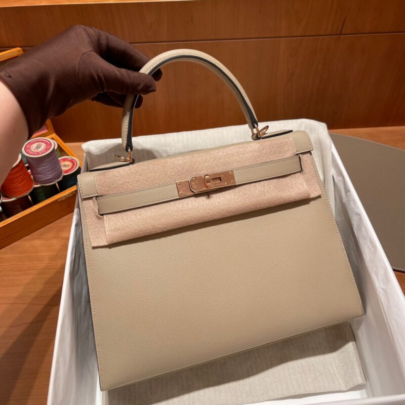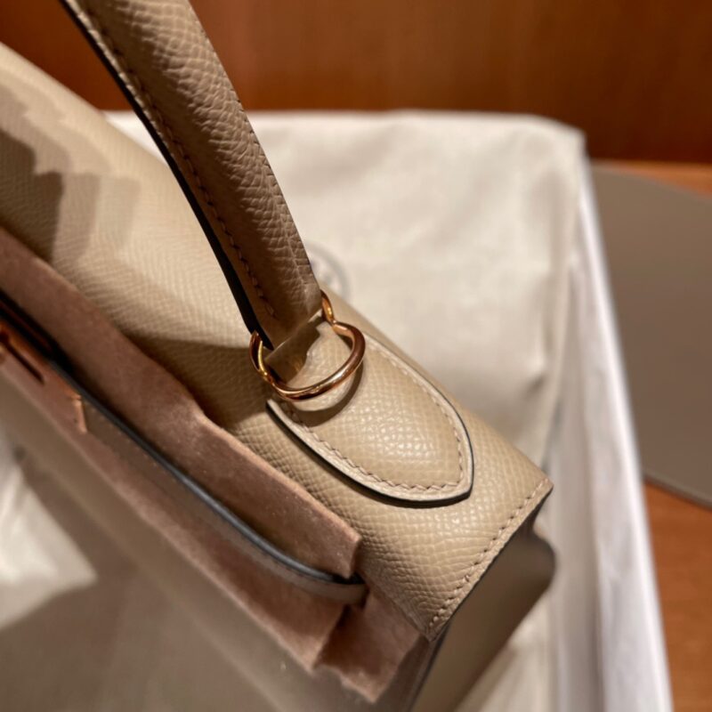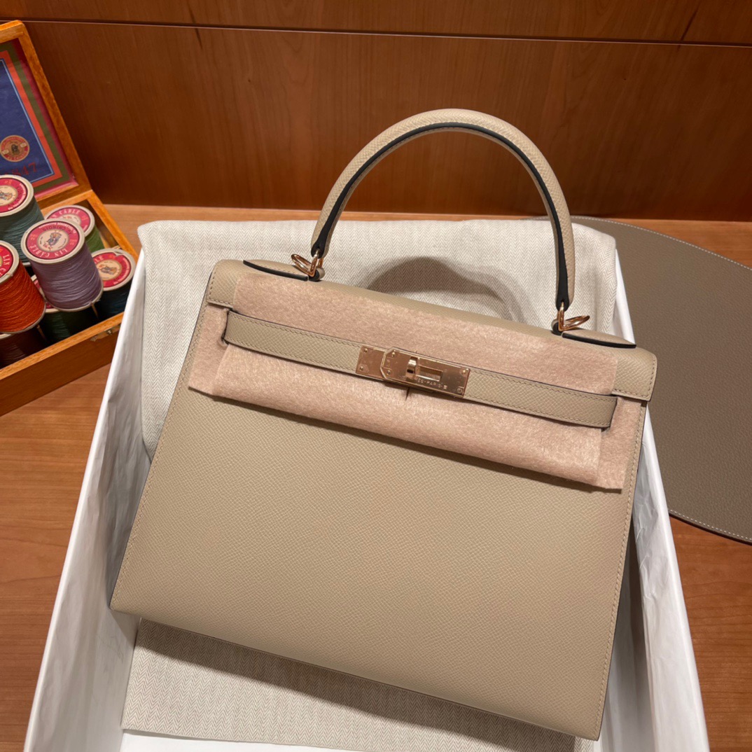 Kelly 28cm Epsom Leathe. S2 Grey Trench. Gold Buckle