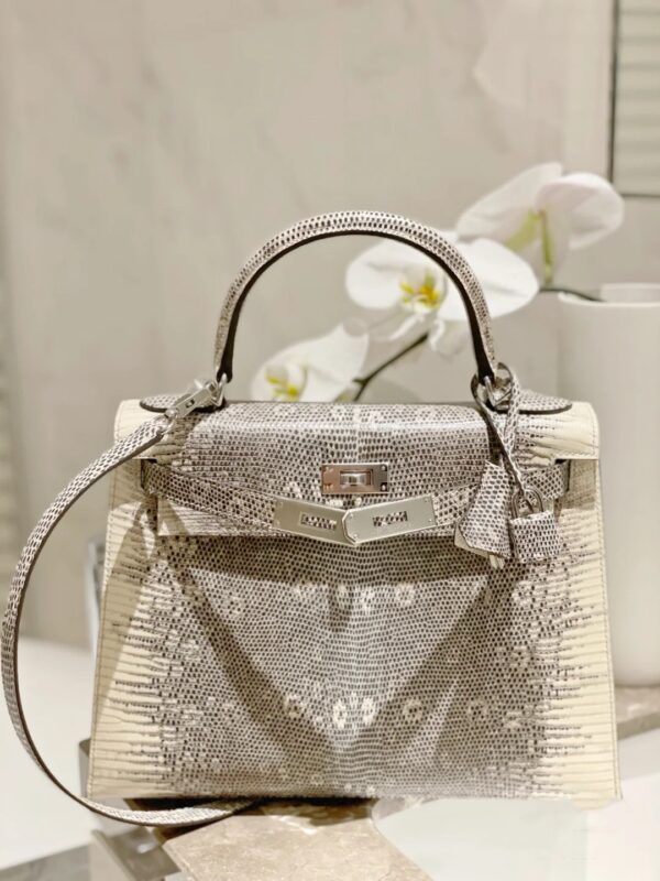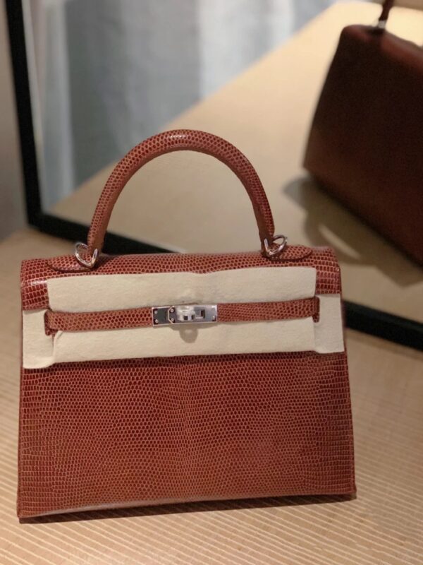 Kelly 28 LizardNatural color and  Silver Buckle.Etruscan Red.Tobacco Grey,