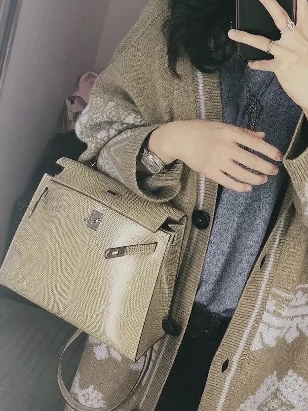 Kelly 28 LizardNatural color and  Silver Buckle.Etruscan Red.Tobacco Grey,