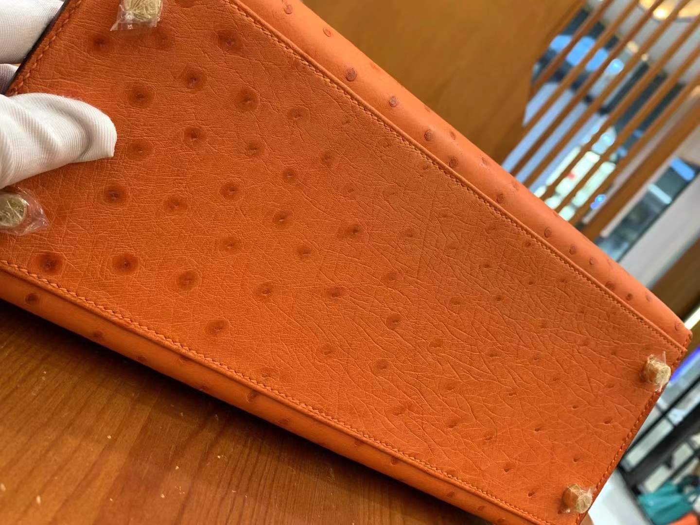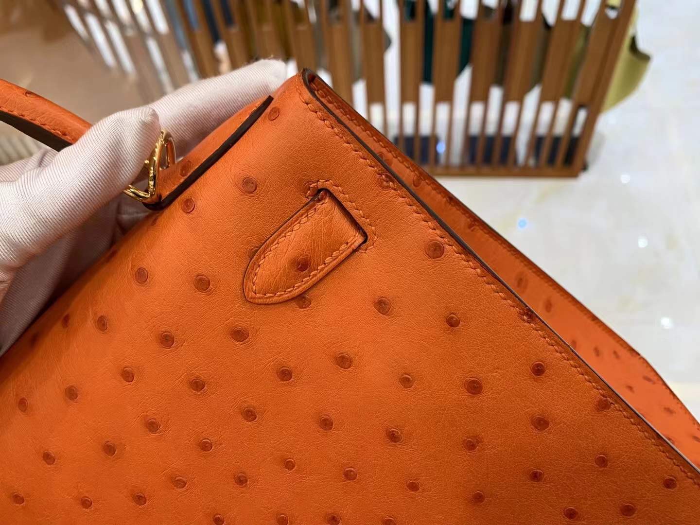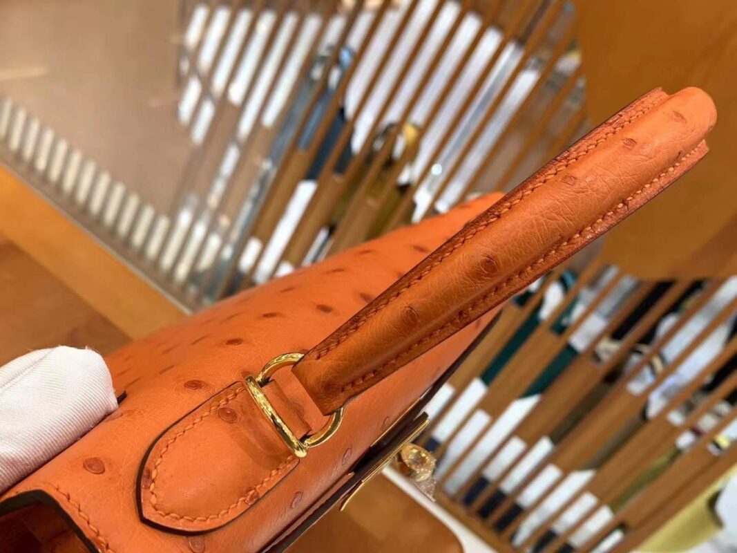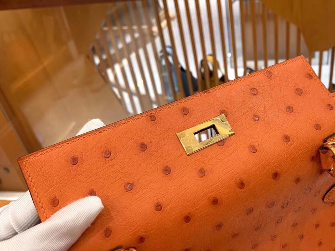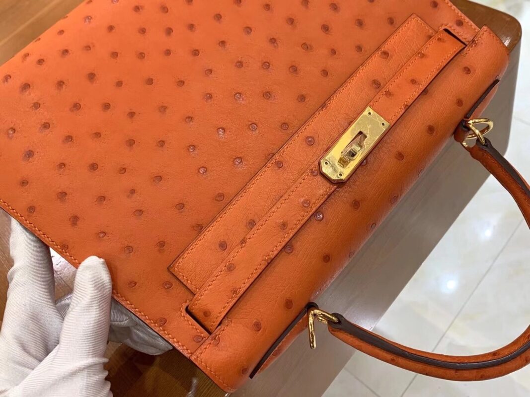 Kelly 28cm Classic Orange Gold BuckleImported South African KK grade ostrich leather. Hand-sewn