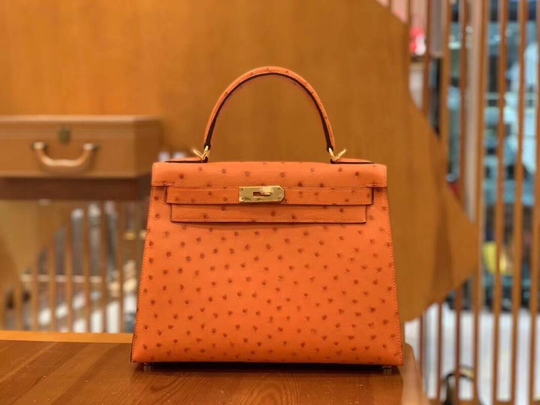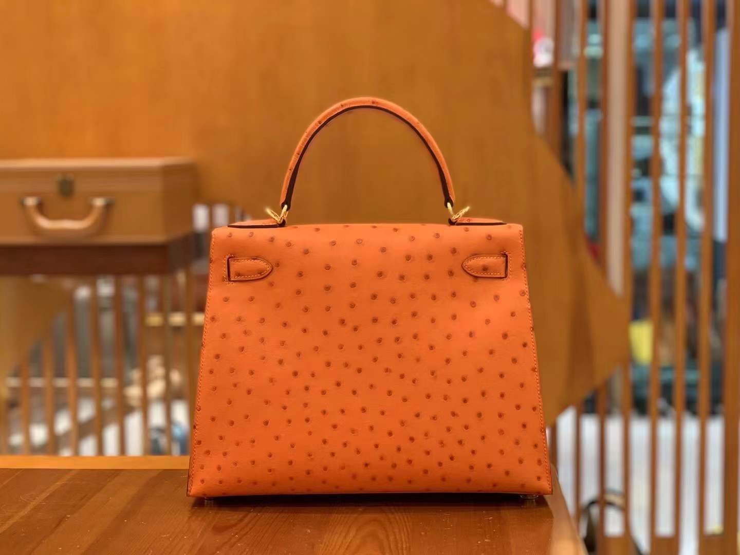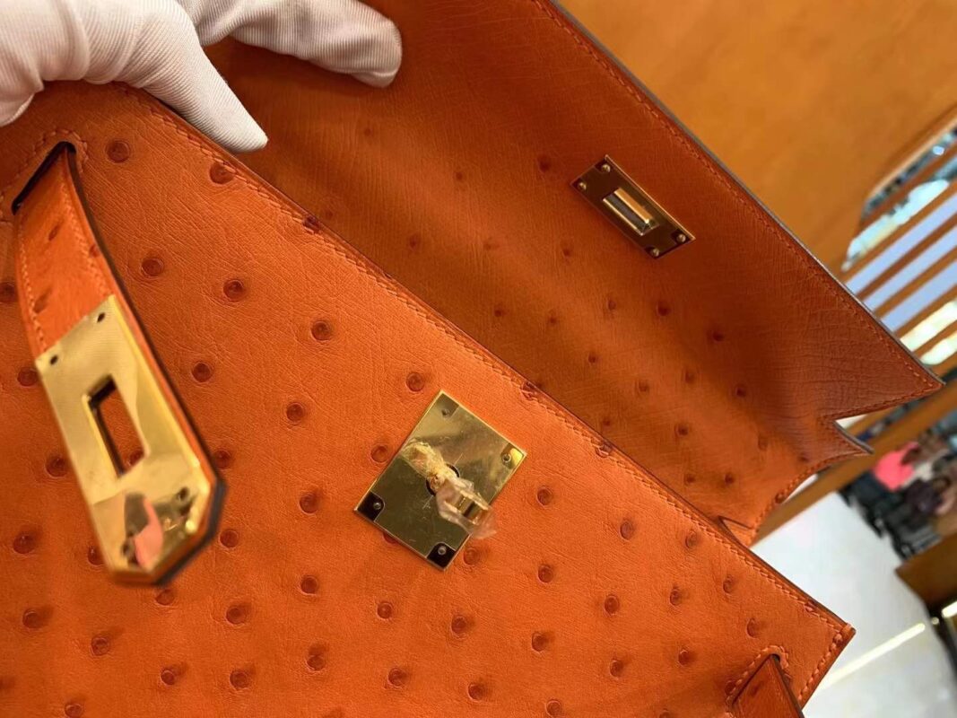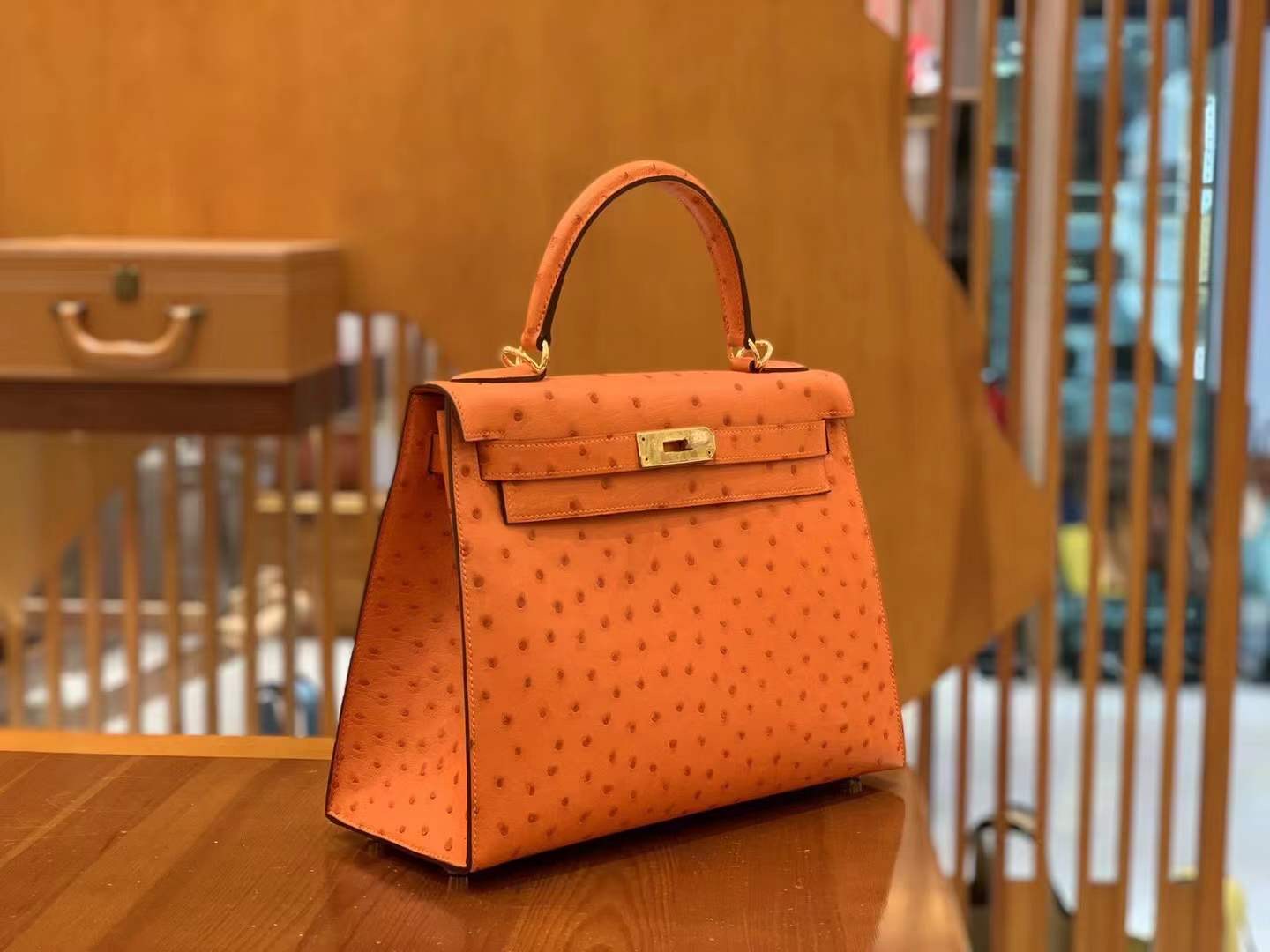Kelly 28cm Classic Orange Gold BuckleImported South African KK grade ostrich leather. Hand-sewn