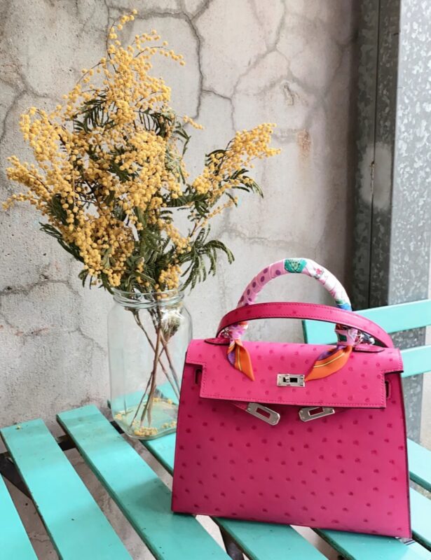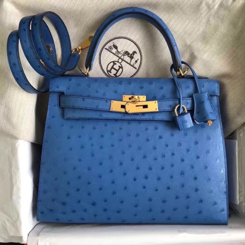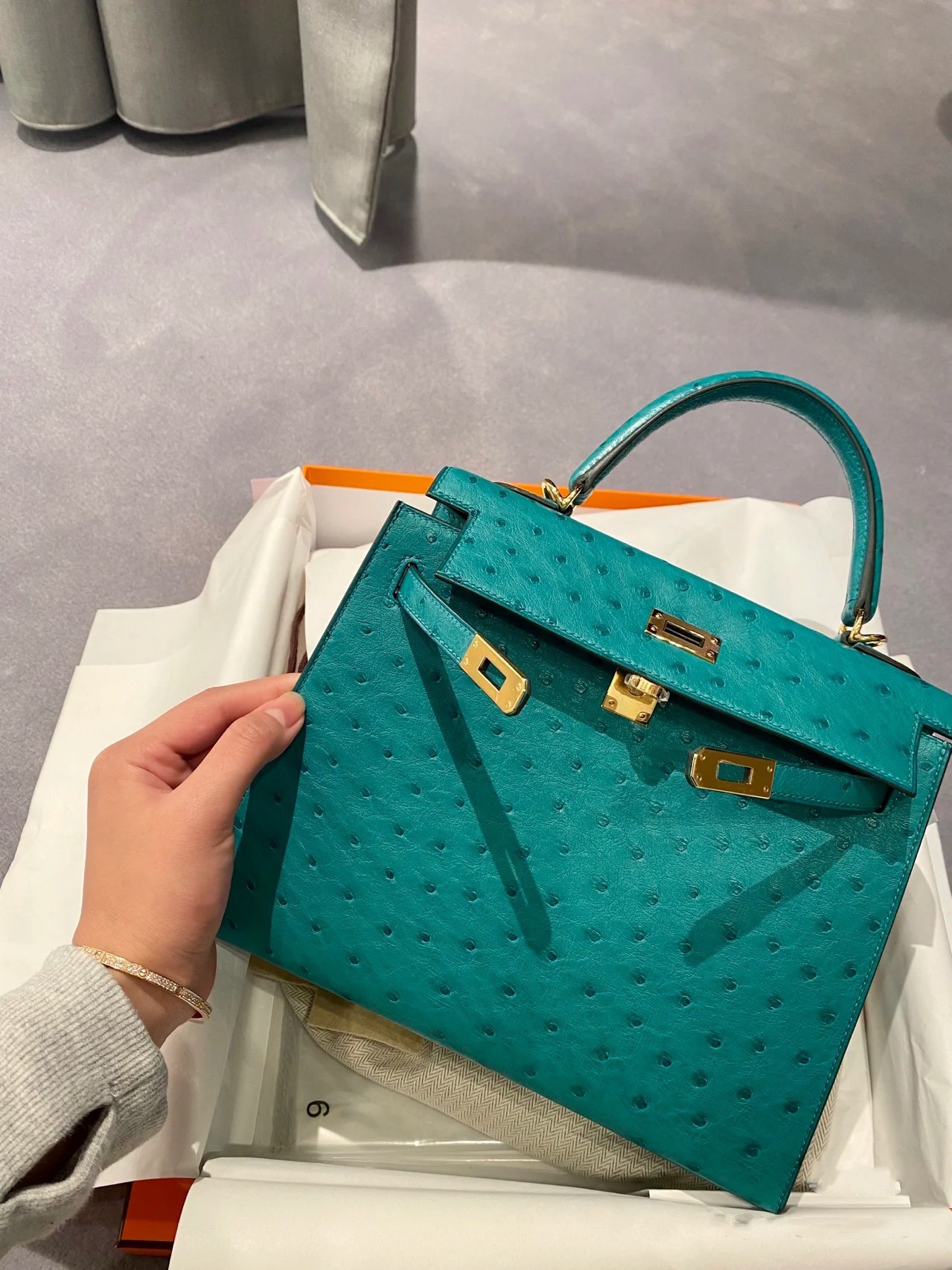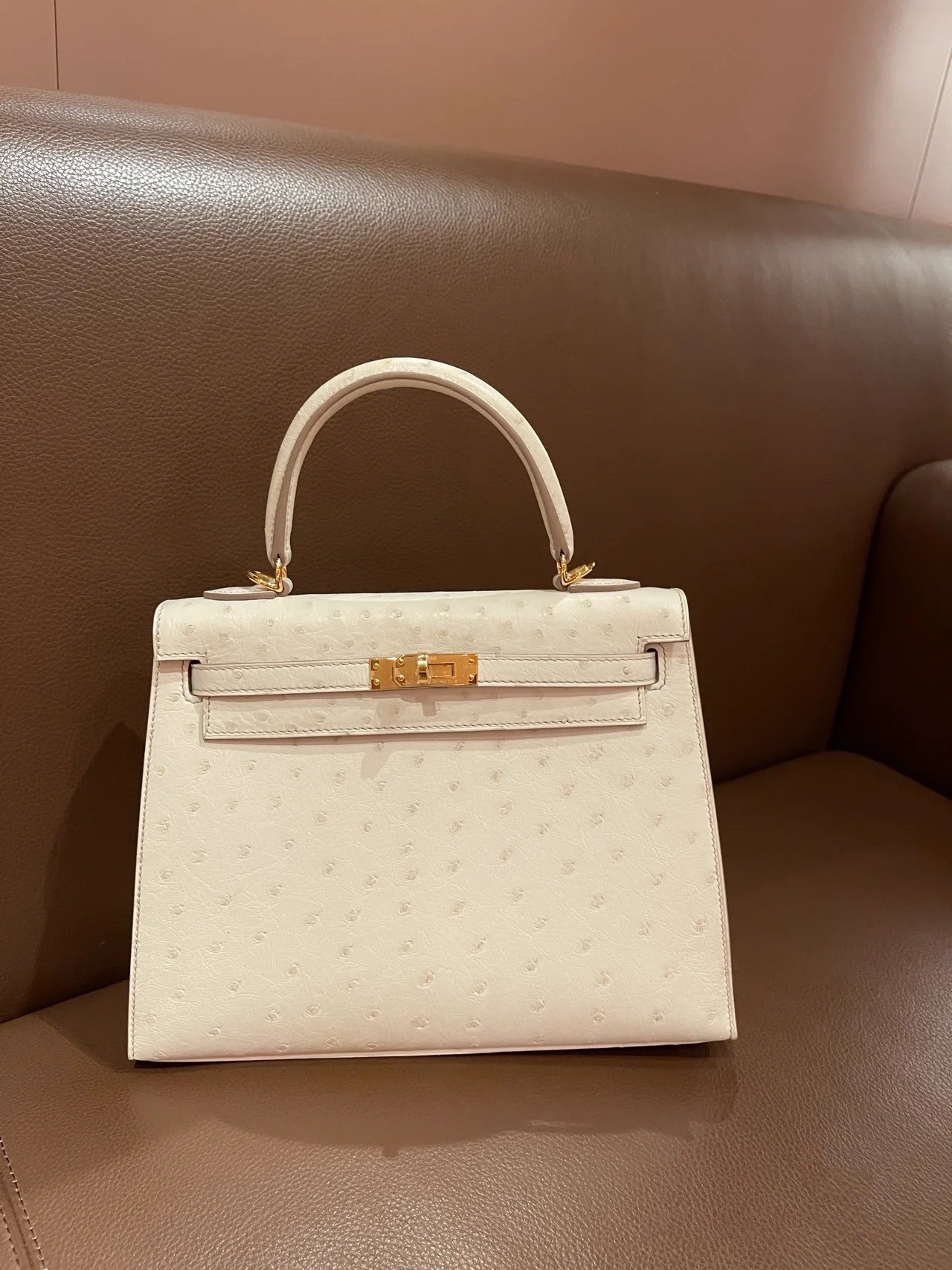 Kelly 28 Ostrich leather. Black Gold Buckle