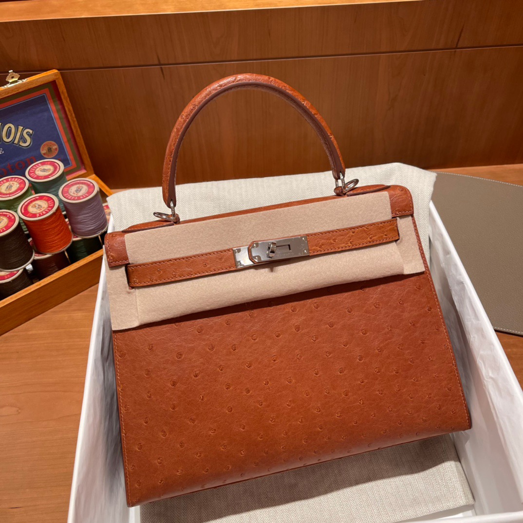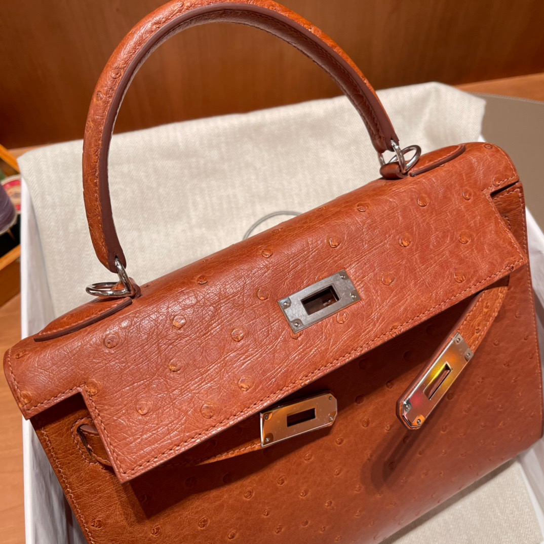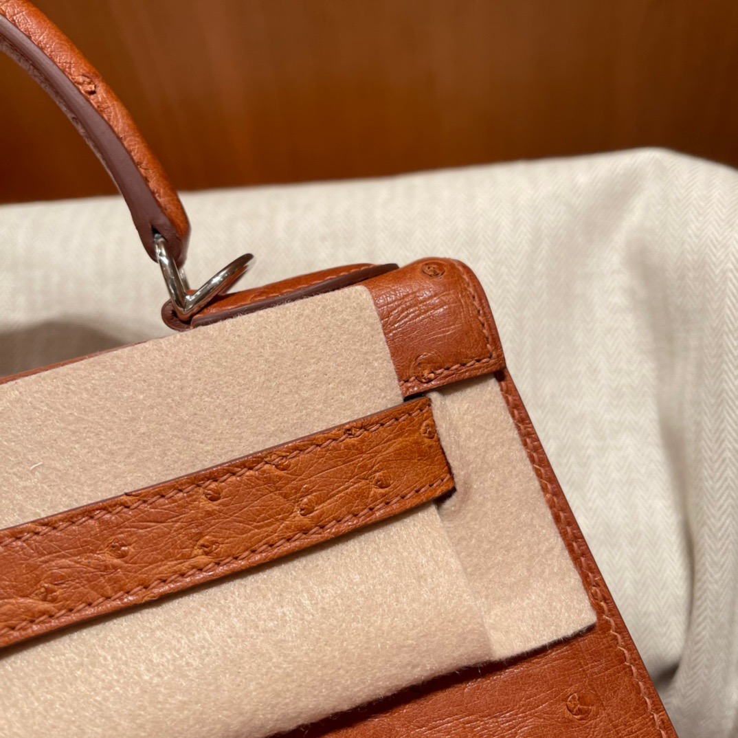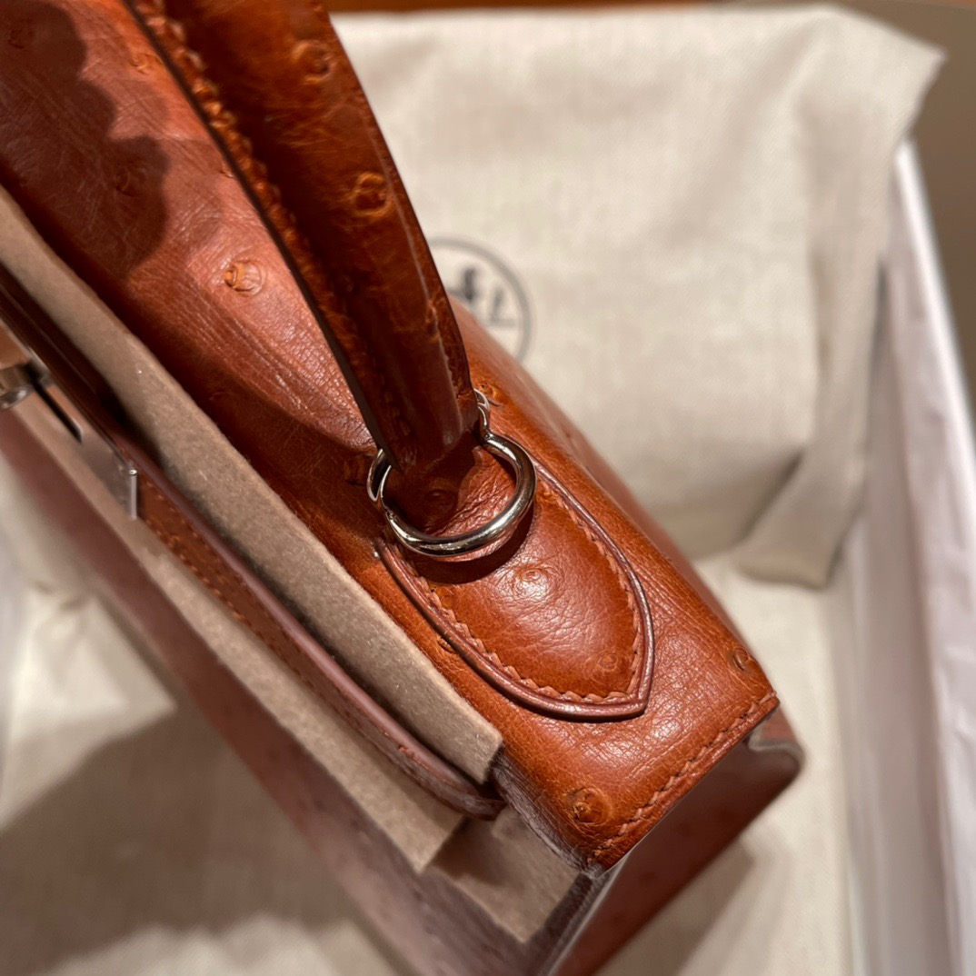 Kelly 28 Ostrich Golden Brown