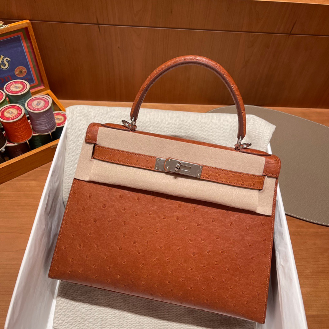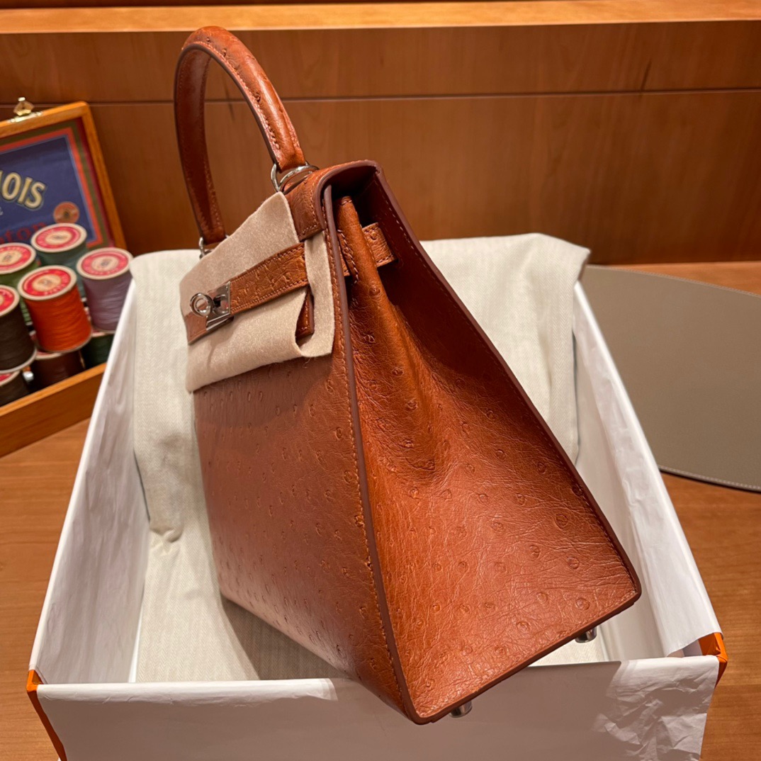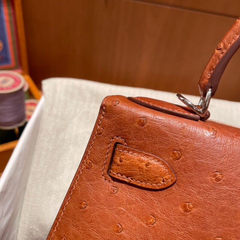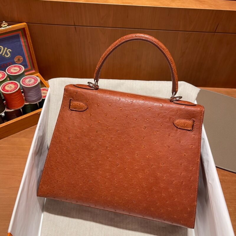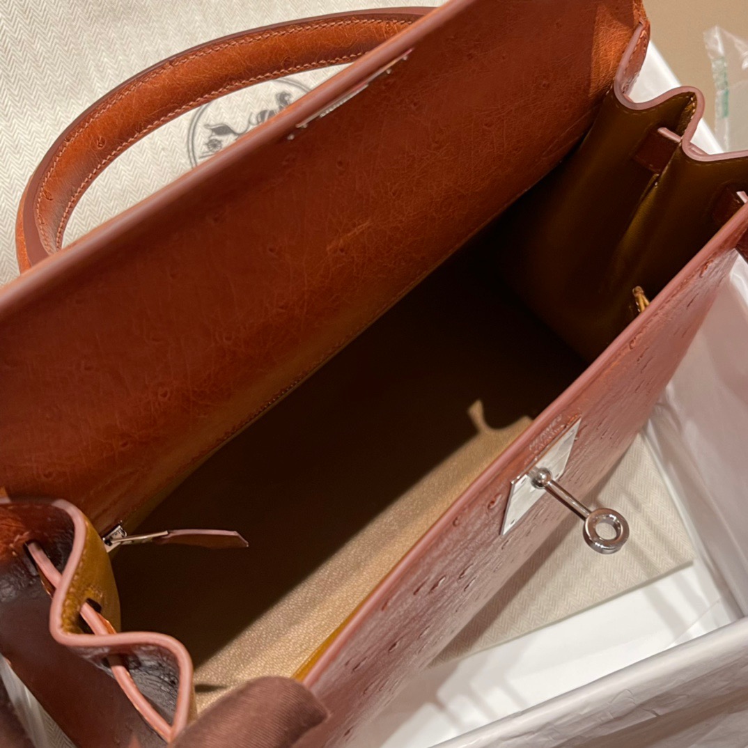Kelly 28 Ostrich Golden Brown