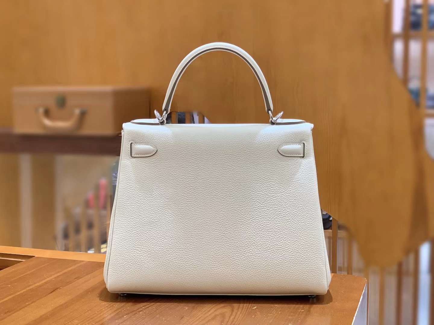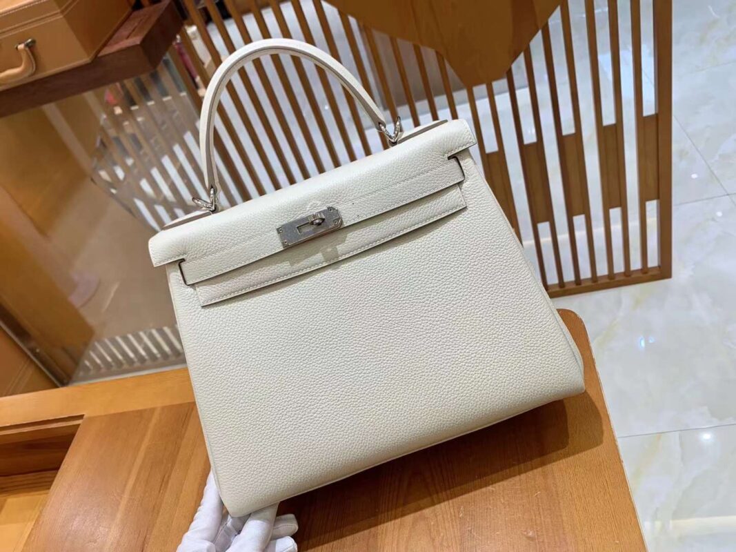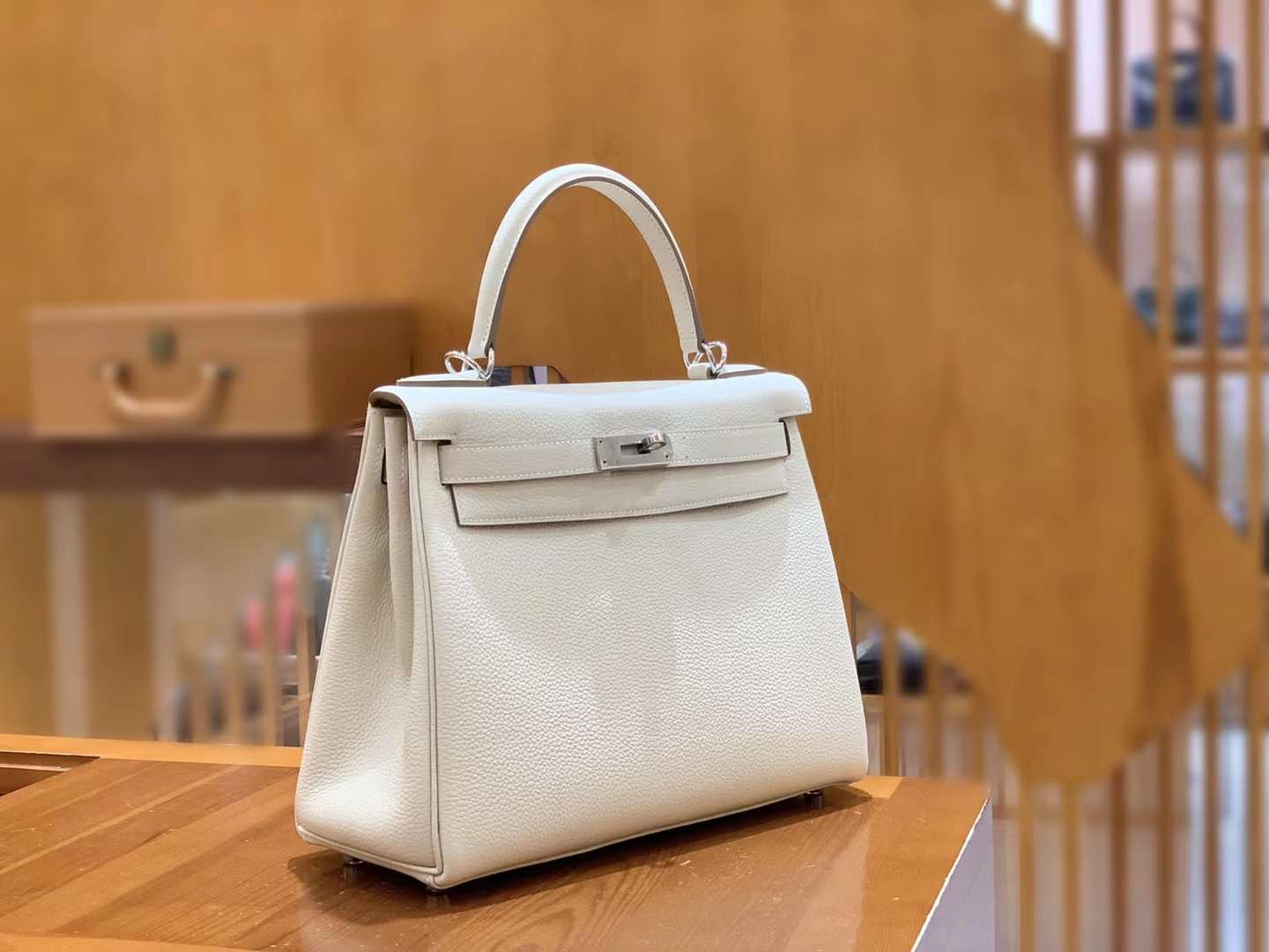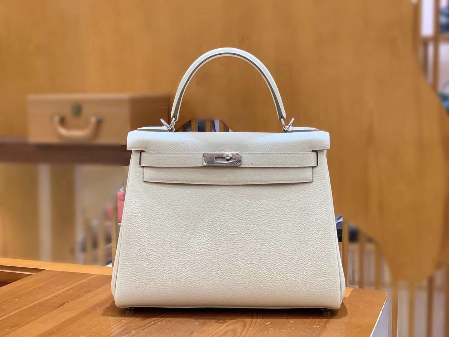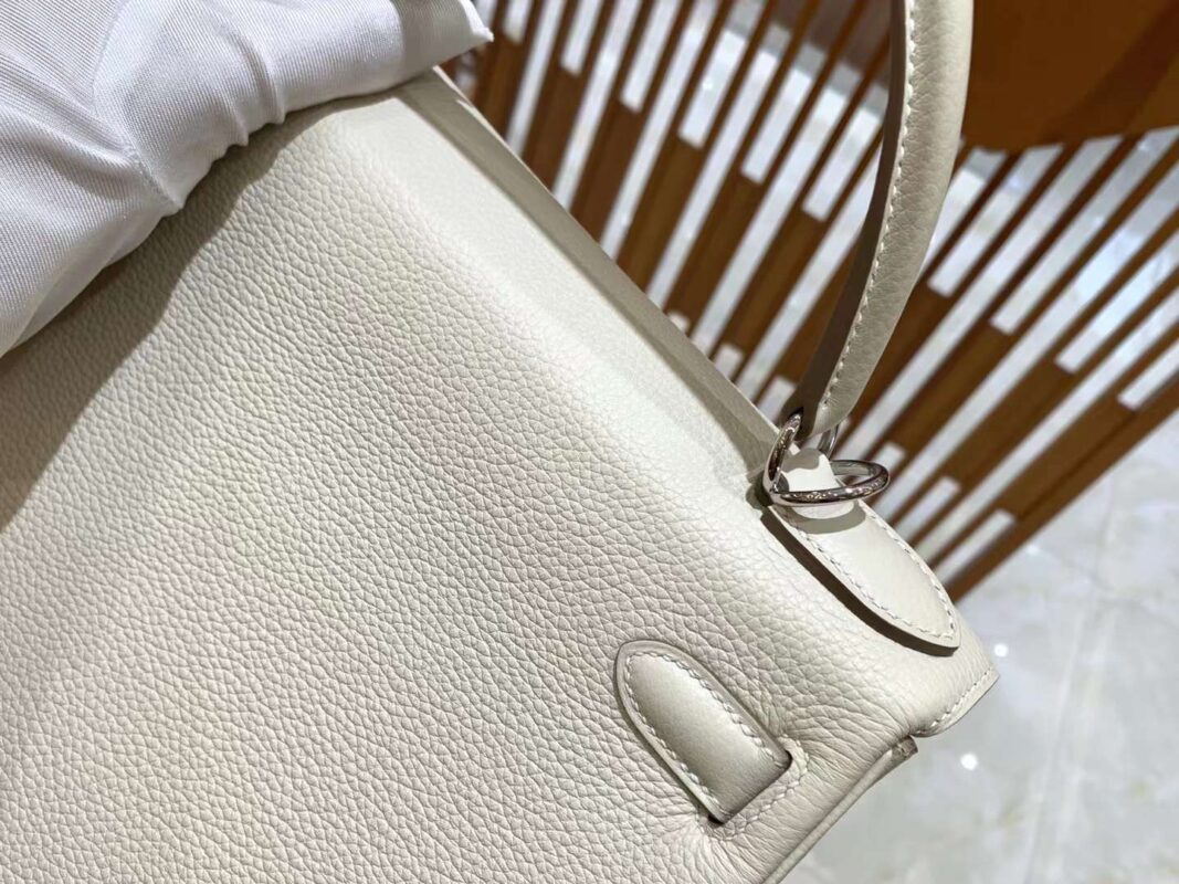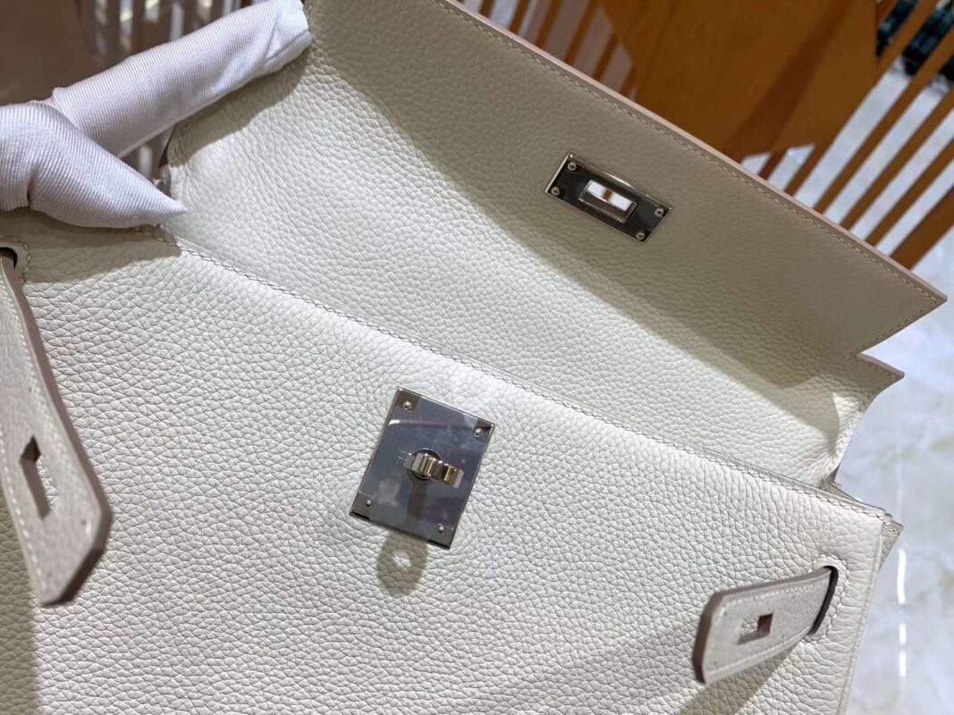 Kelly 28cm Togo Craie White silver buckle imported togo cowhide. French original beeswax thread, fully hand-sewn.