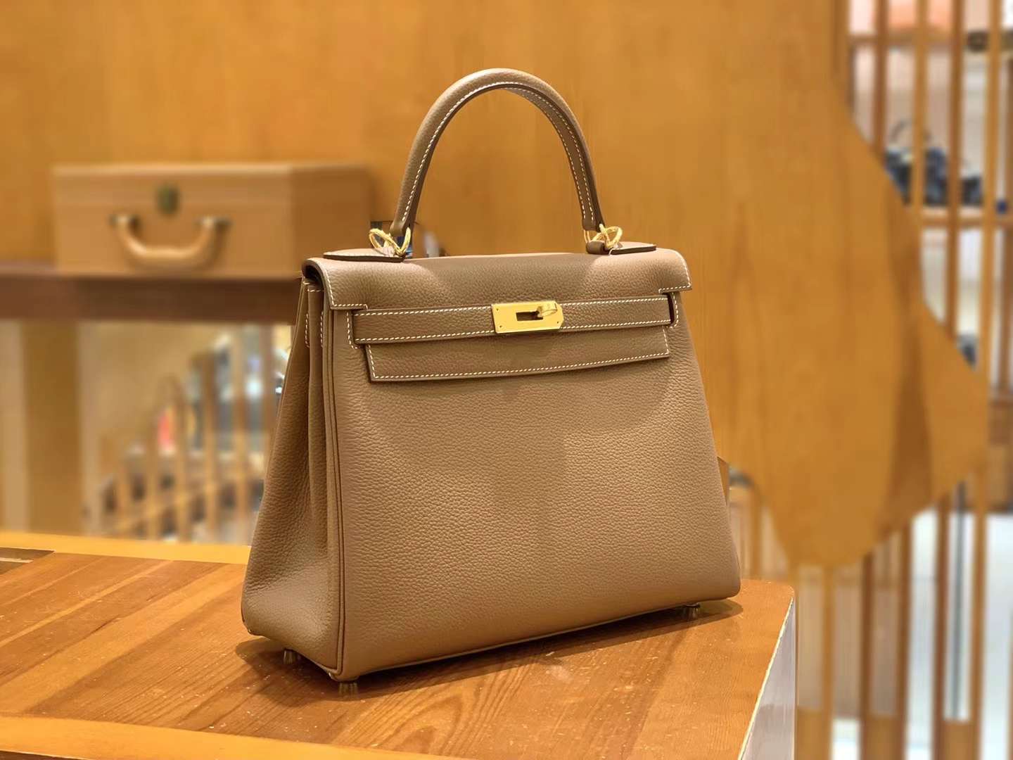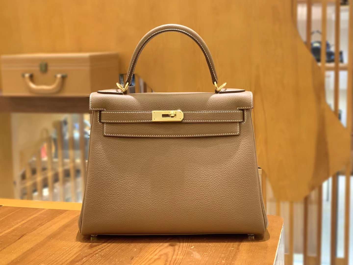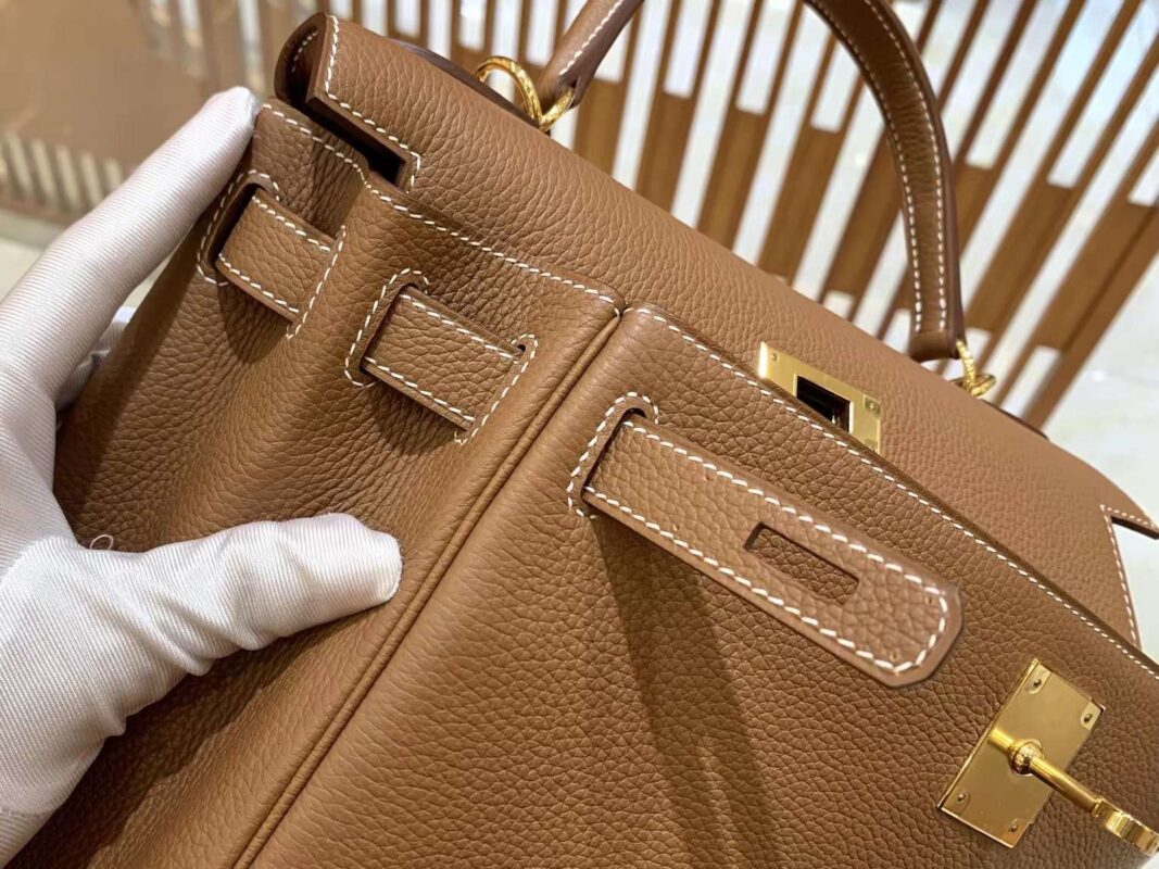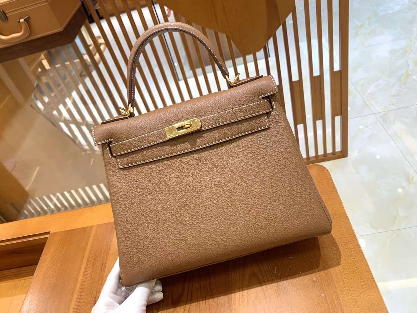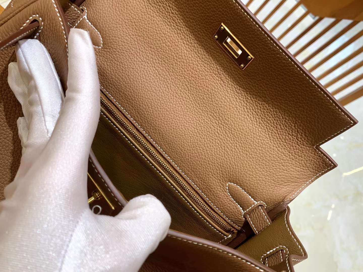 Kelly 28cm Togo Golden Brown gold buckle imported togo cowhide. French original beeswax thread, fully hand-sewn.