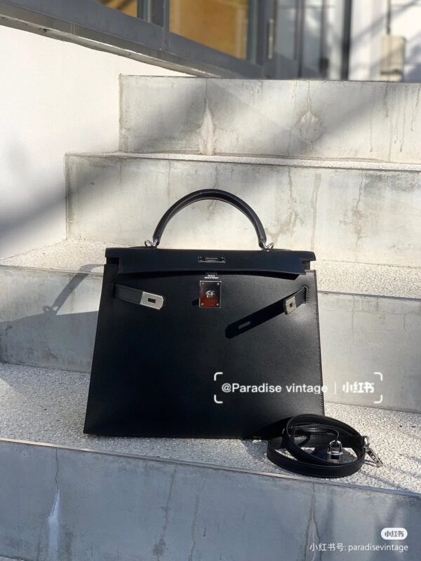 Kelly 32 Box Calf Noir PHW