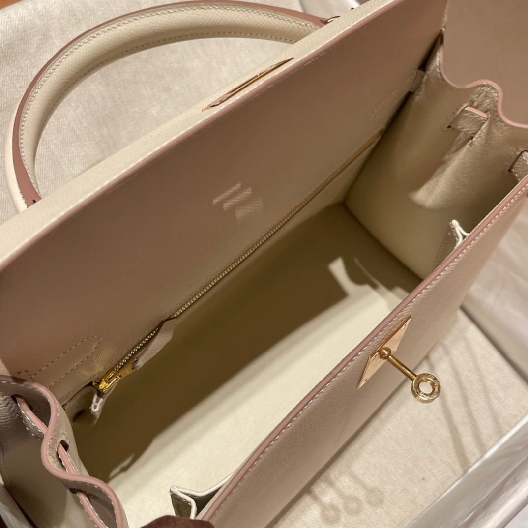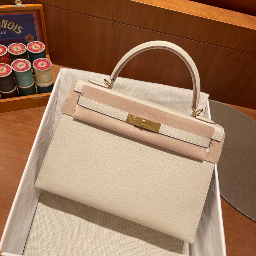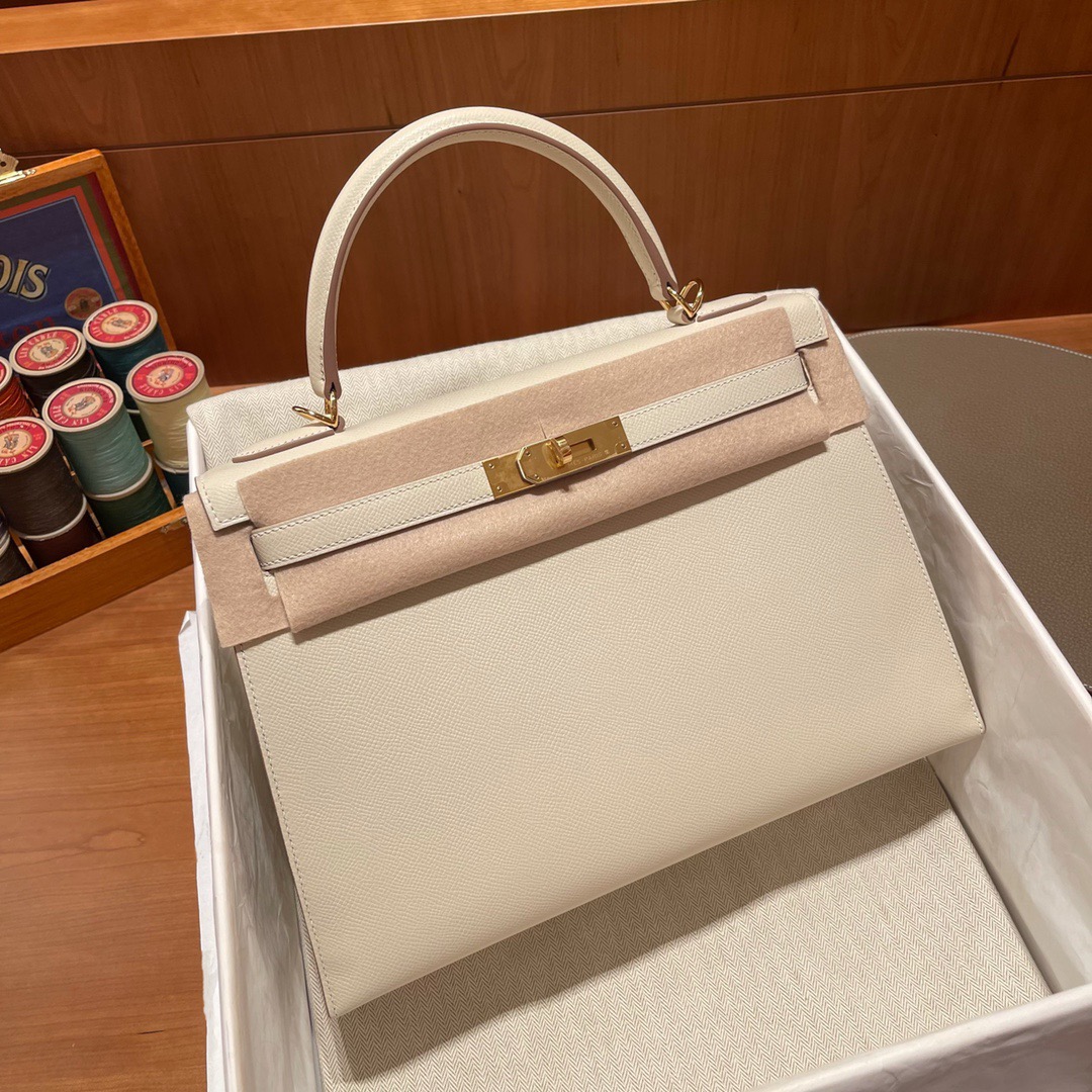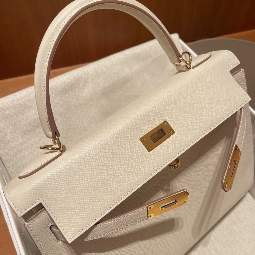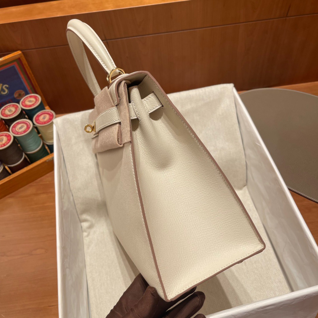 Kelly 32cm Epsom Leather. 10 Craie. Gold Buckle