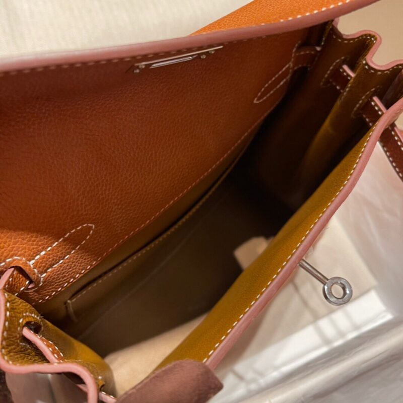 Ado schoolbag/backpack Faubourg saddle leather Barenia Faubourg 34 log color Fauve has a good texture and a faint leather fragrance