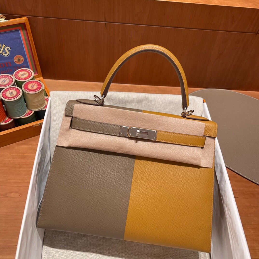 Kelly Casaque Limited Edition 28cm Epsom Leather Triple Kelly/Left and Right