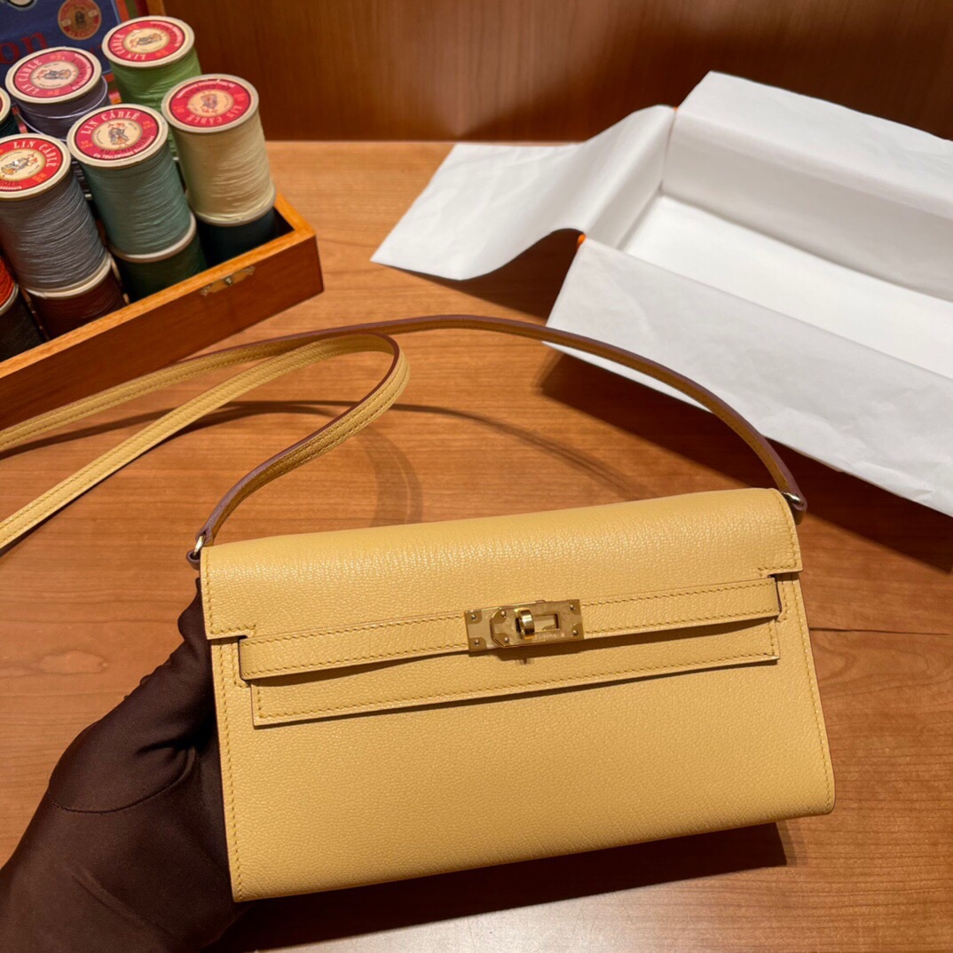 Kelly classic to go/kelly woc goat leather 1S straw yellow