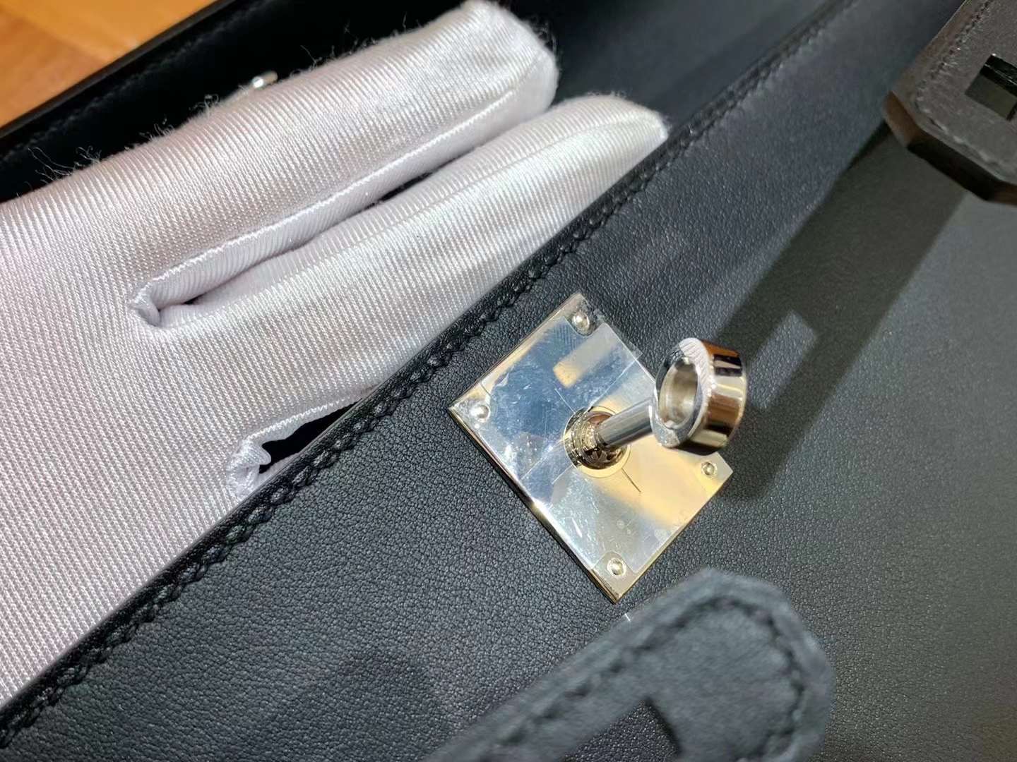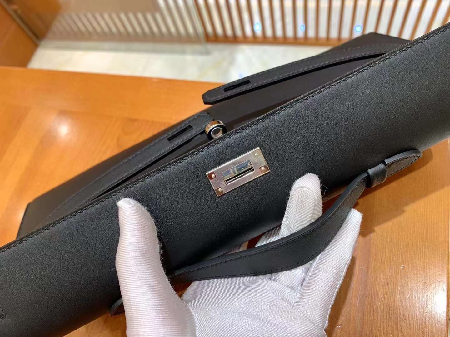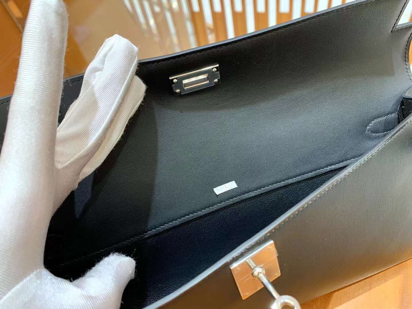 Kelly cut 31cm swift. Black. Silver Buckle