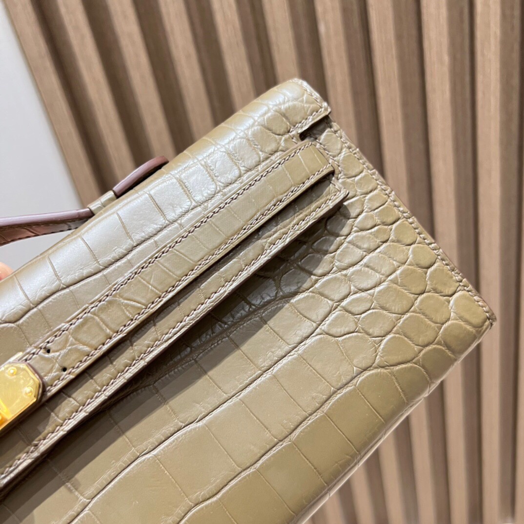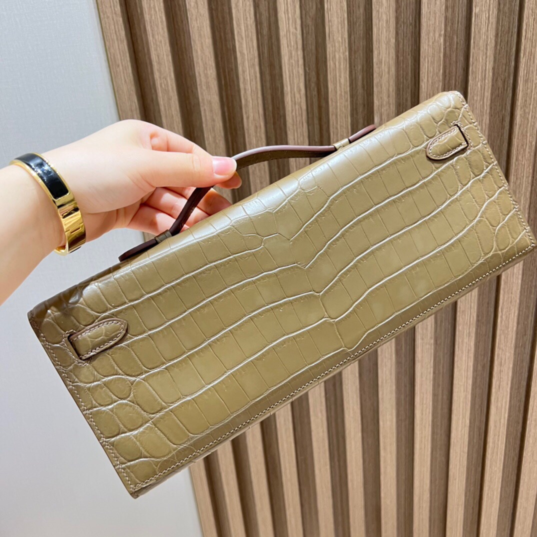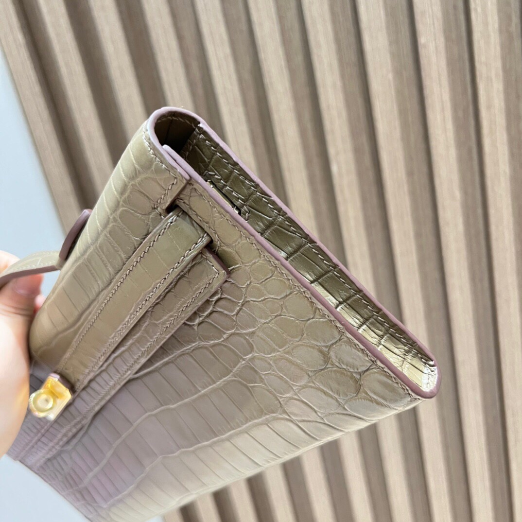 Kelly Cut Clutch Nile Crocodile Nilo Matte Matte 8C Elephant Gray