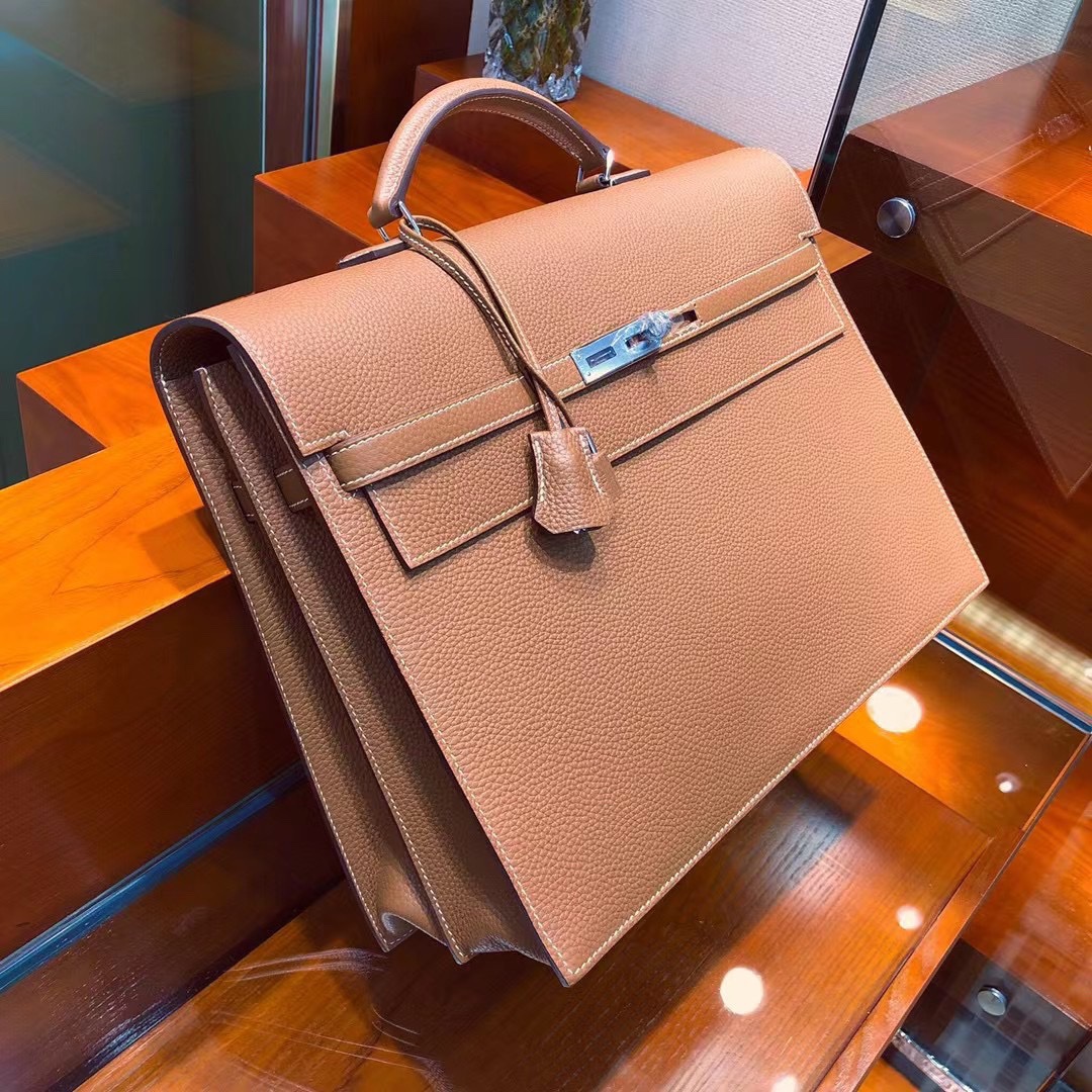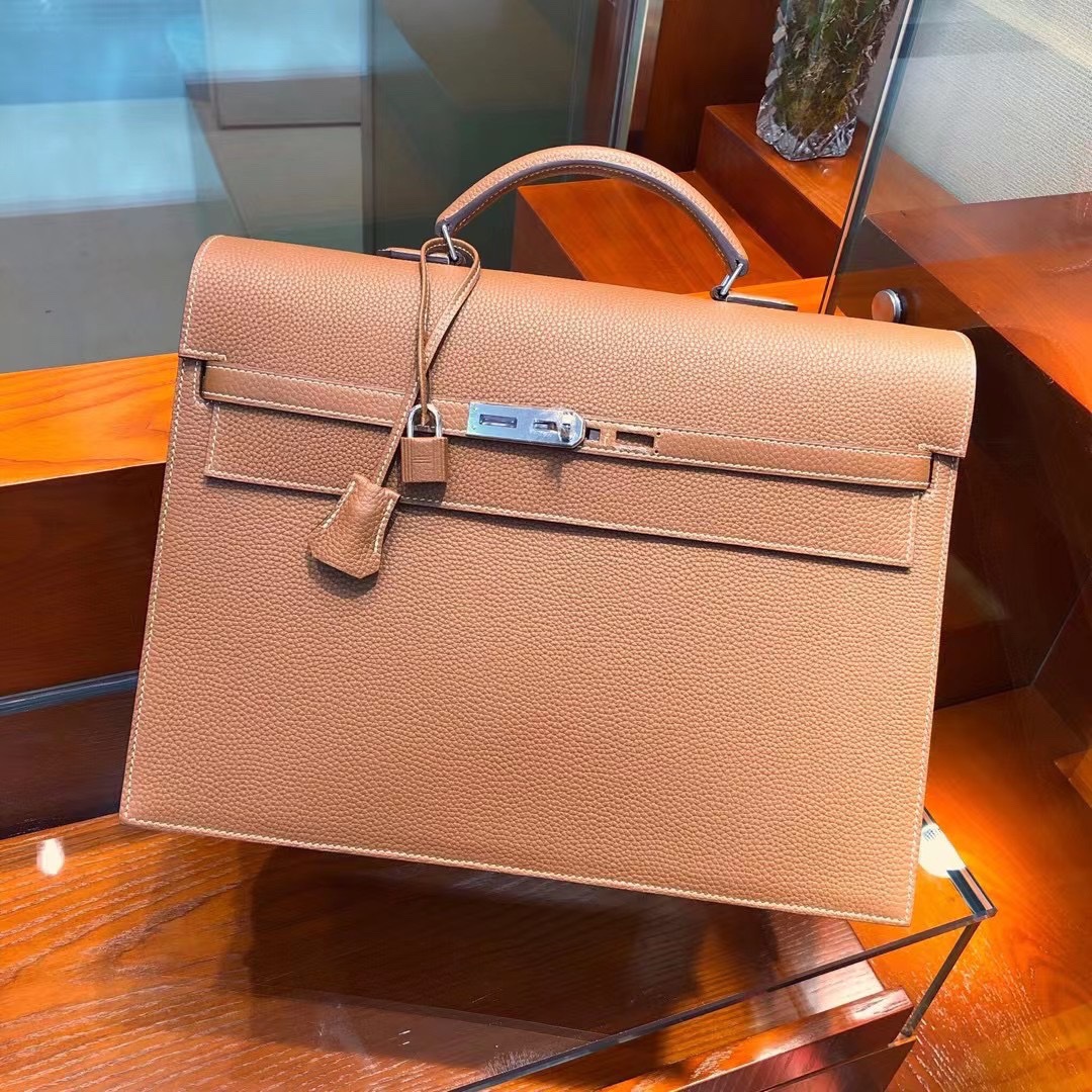 Kelly Depeche 38 Briefcase in Gold Togo for Man
