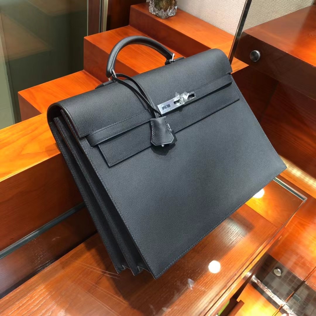 Kelly Depeche 38 Briefcase in Noir Epsom for Man