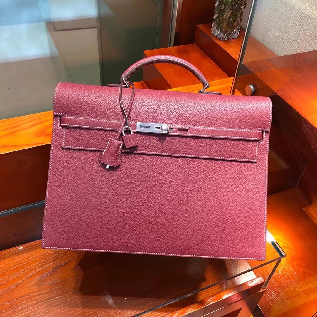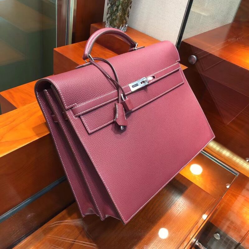 Kelly Depeche 38 Briefcase in Rouge Garance Togo for Man