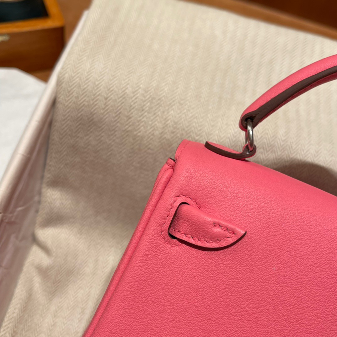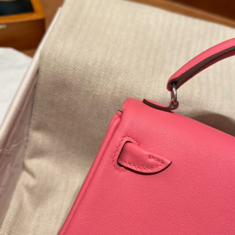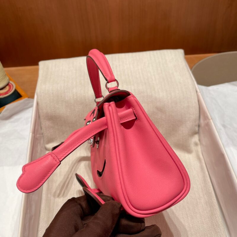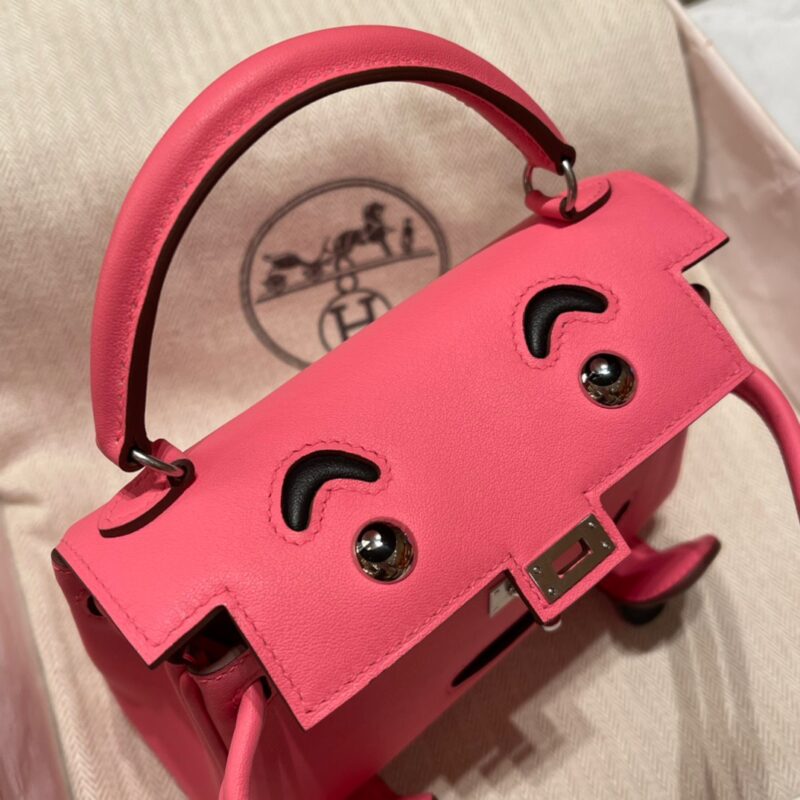 Kelly Doll Millennium Doll Bag Swift Leather. 8W Lipstick Pink/89 Black. Silver Buckle