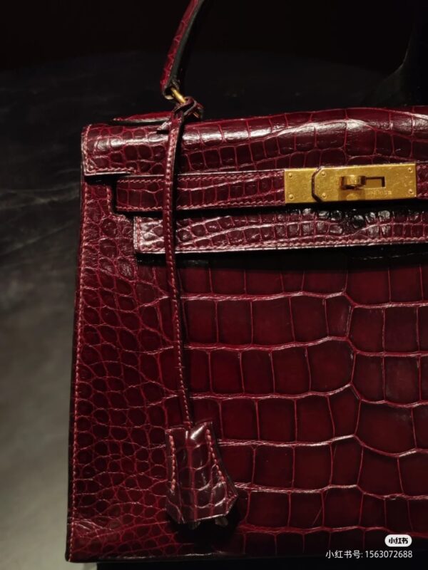 Kelly bag in Bordeaux red crocodile leather with 24k gold plated hardwares.