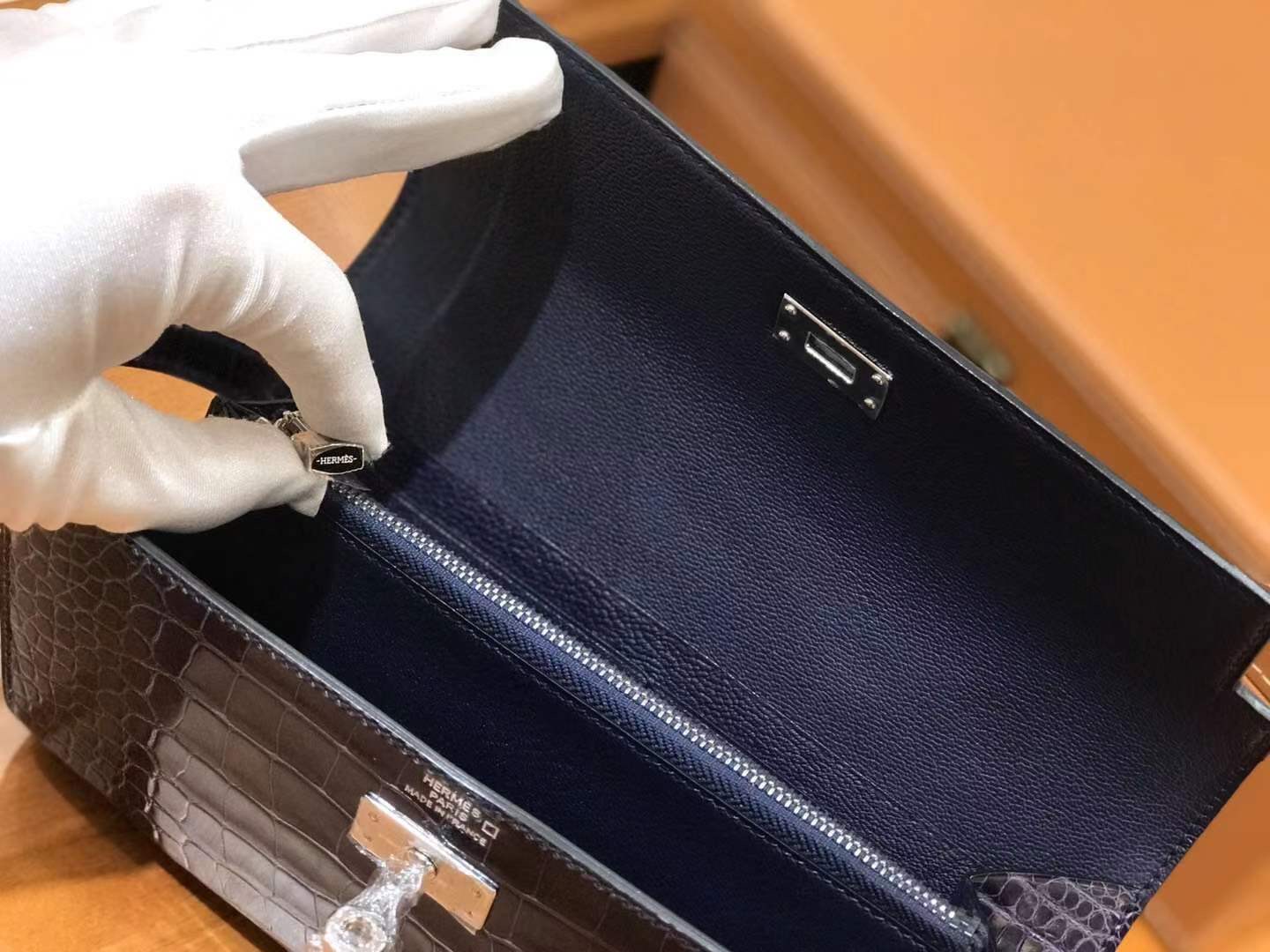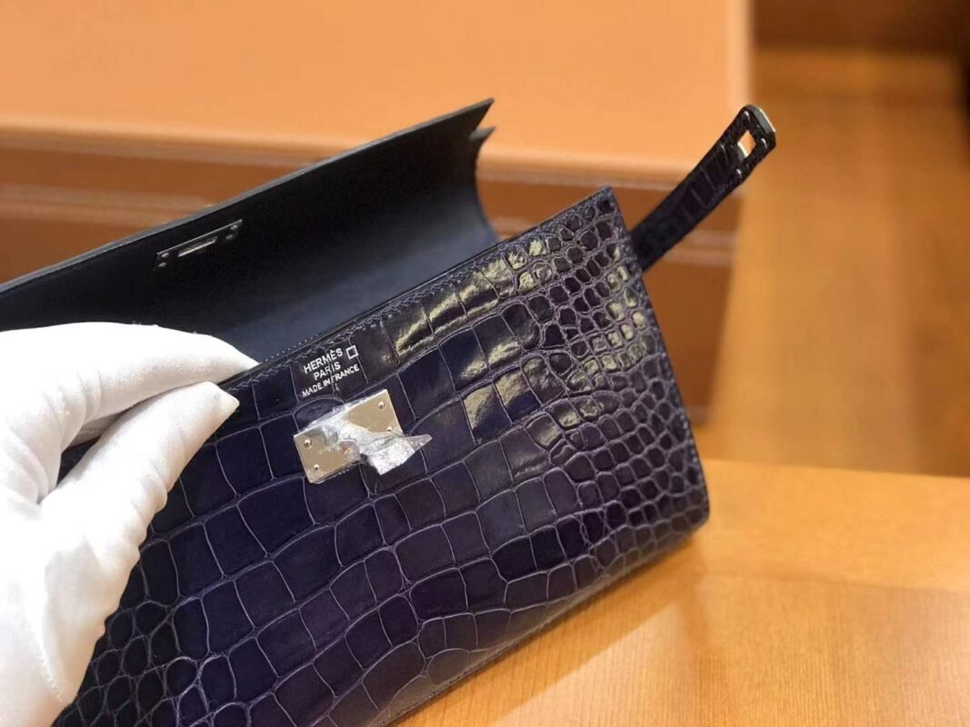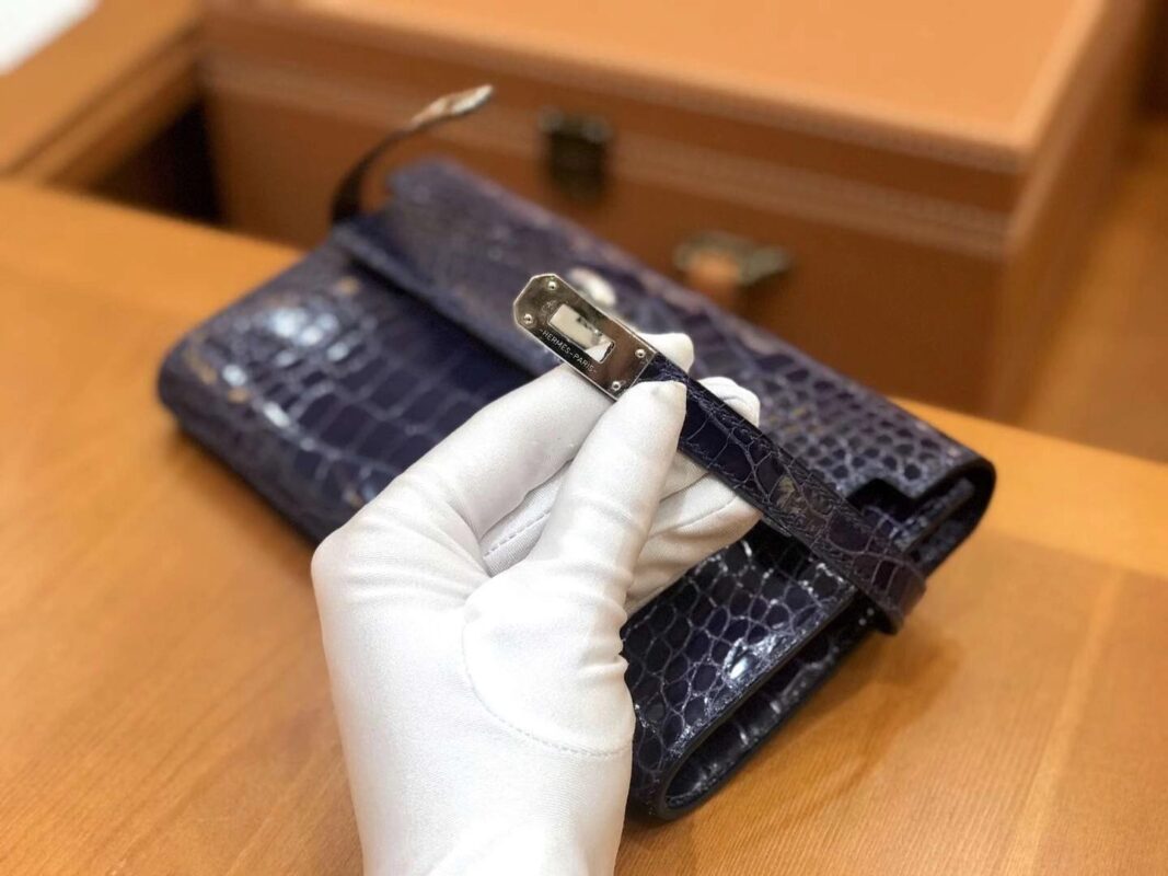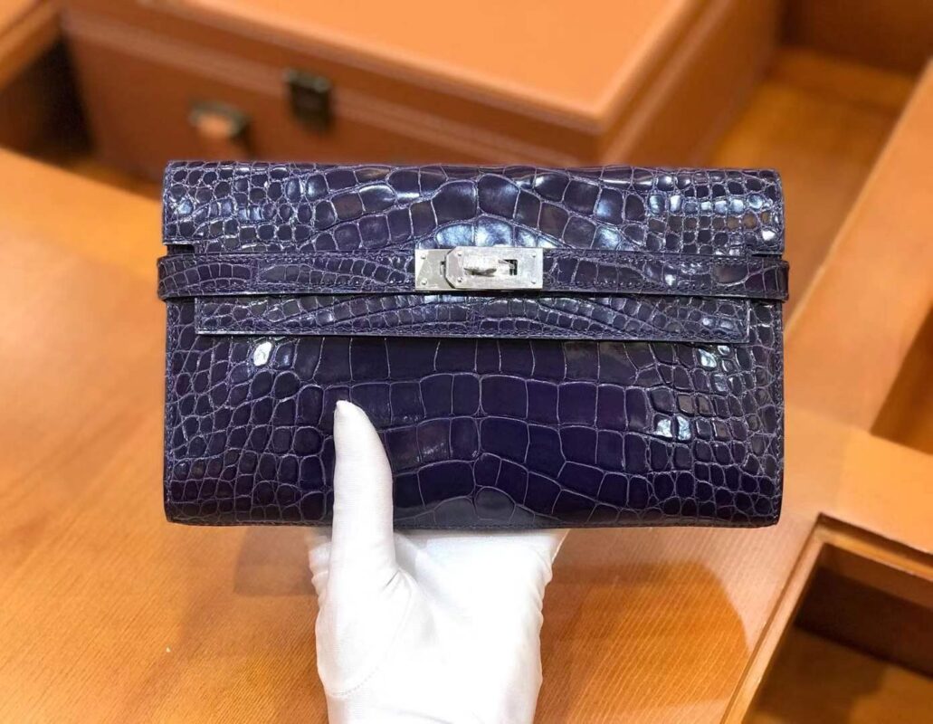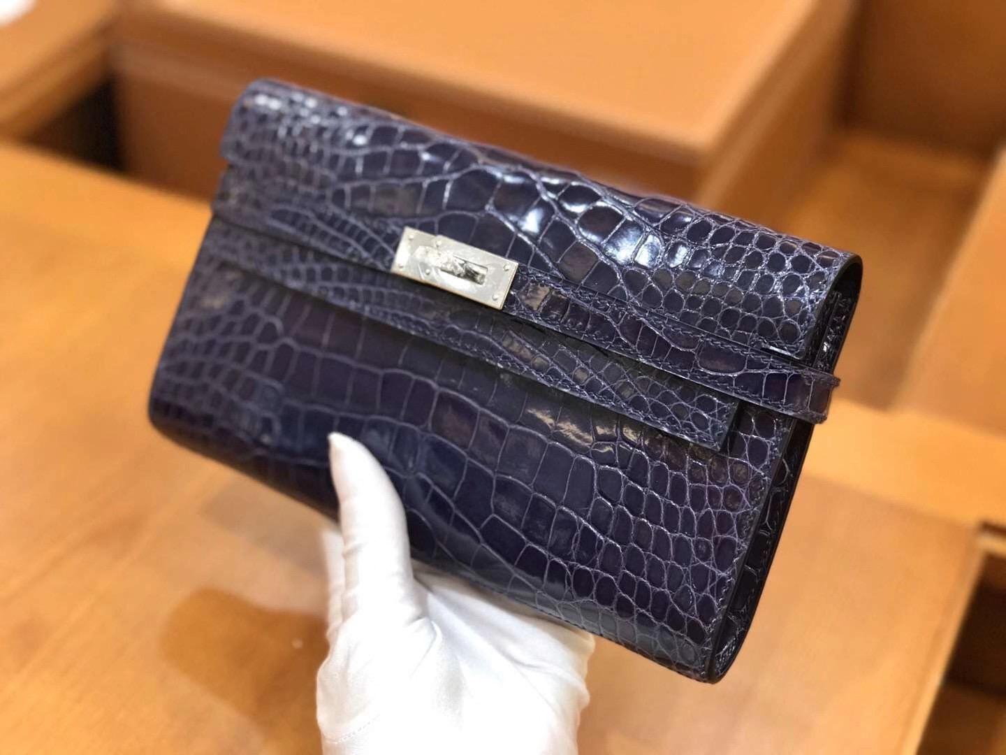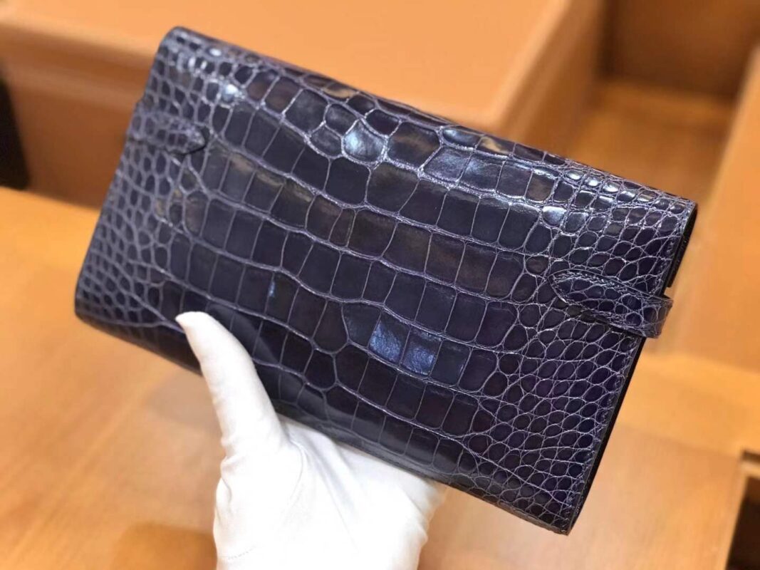 Kelly Long Wallet Sapphire Blue Imported first-class American crocodile. Fully hand-sewn