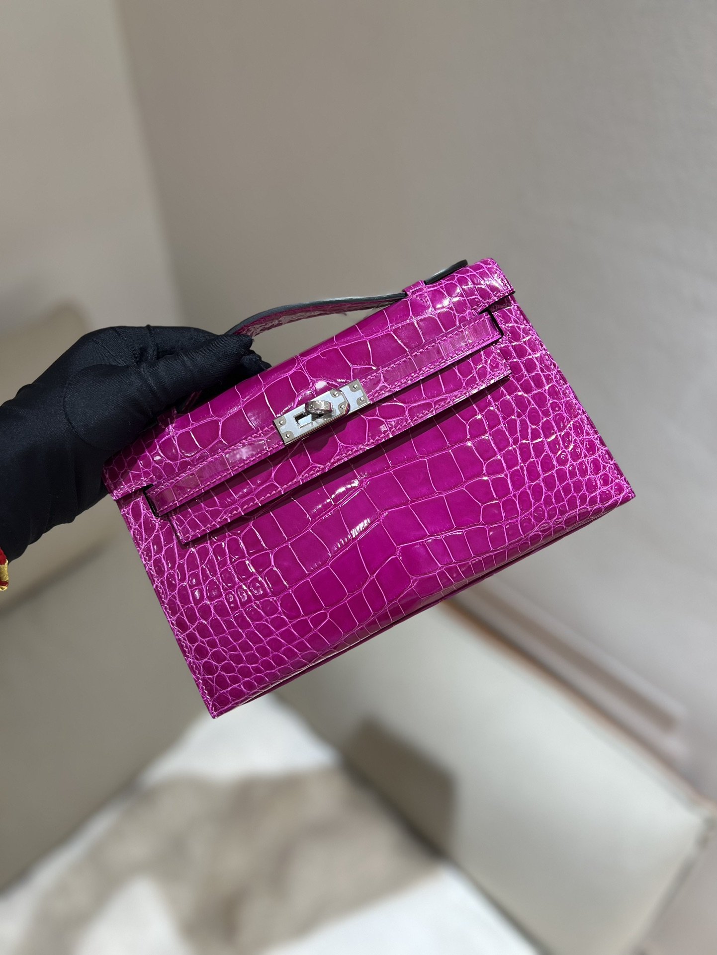 Kelly Pochette in Rose Scheherazade Shiny Alligator
