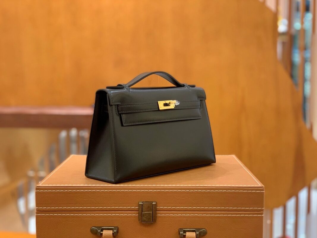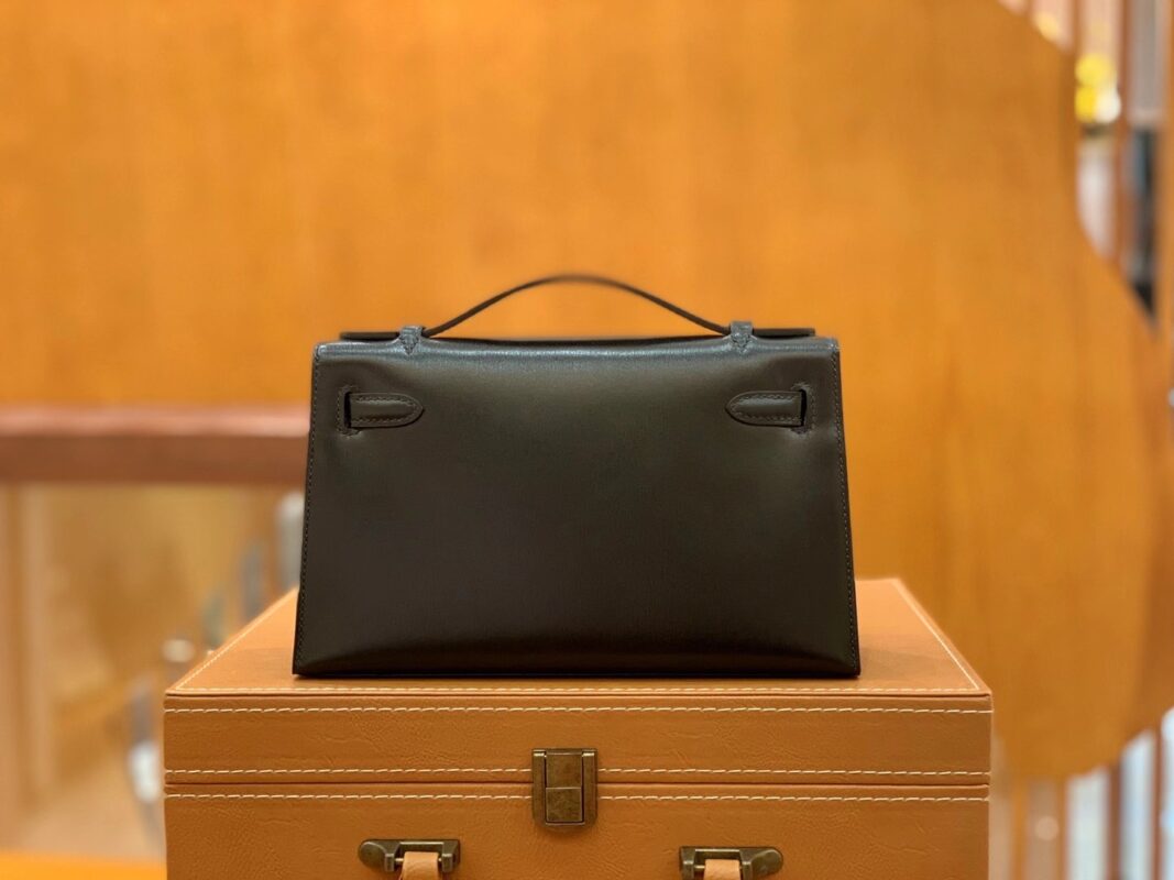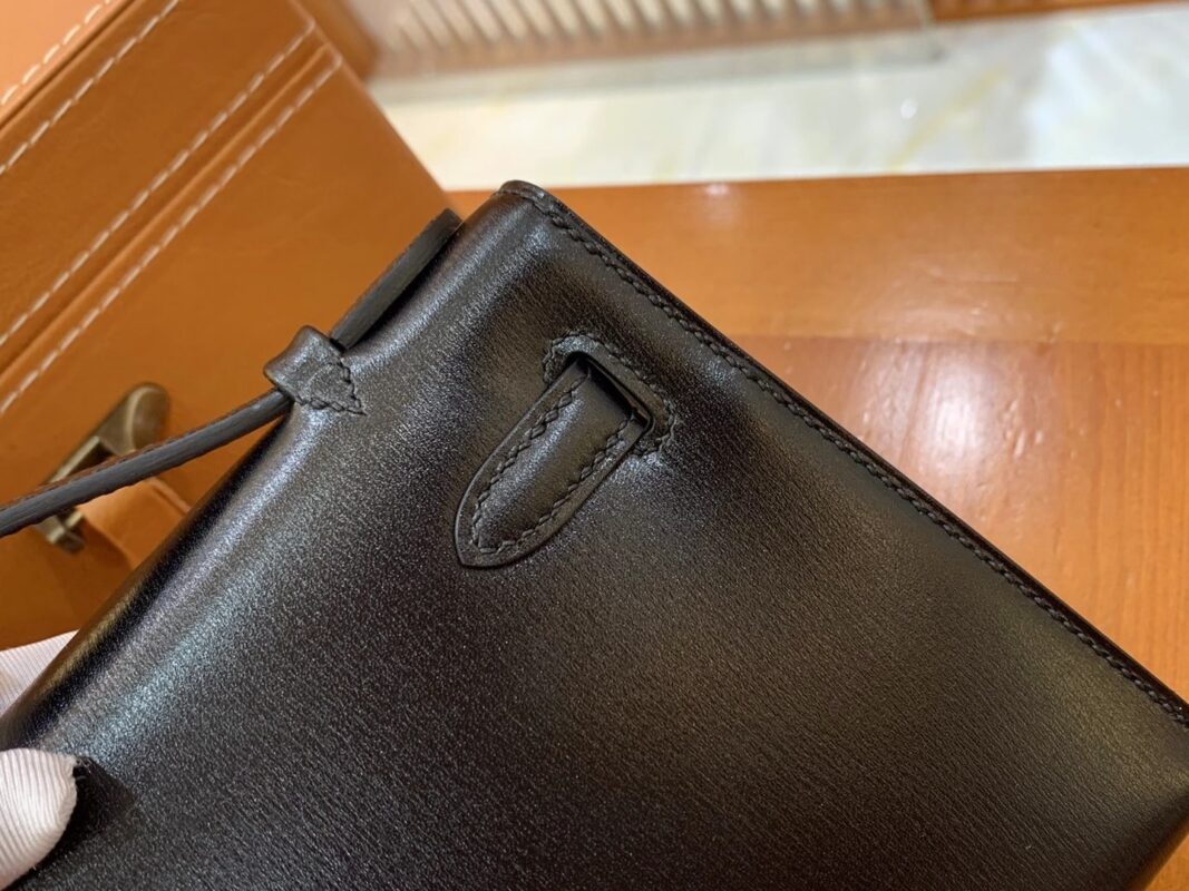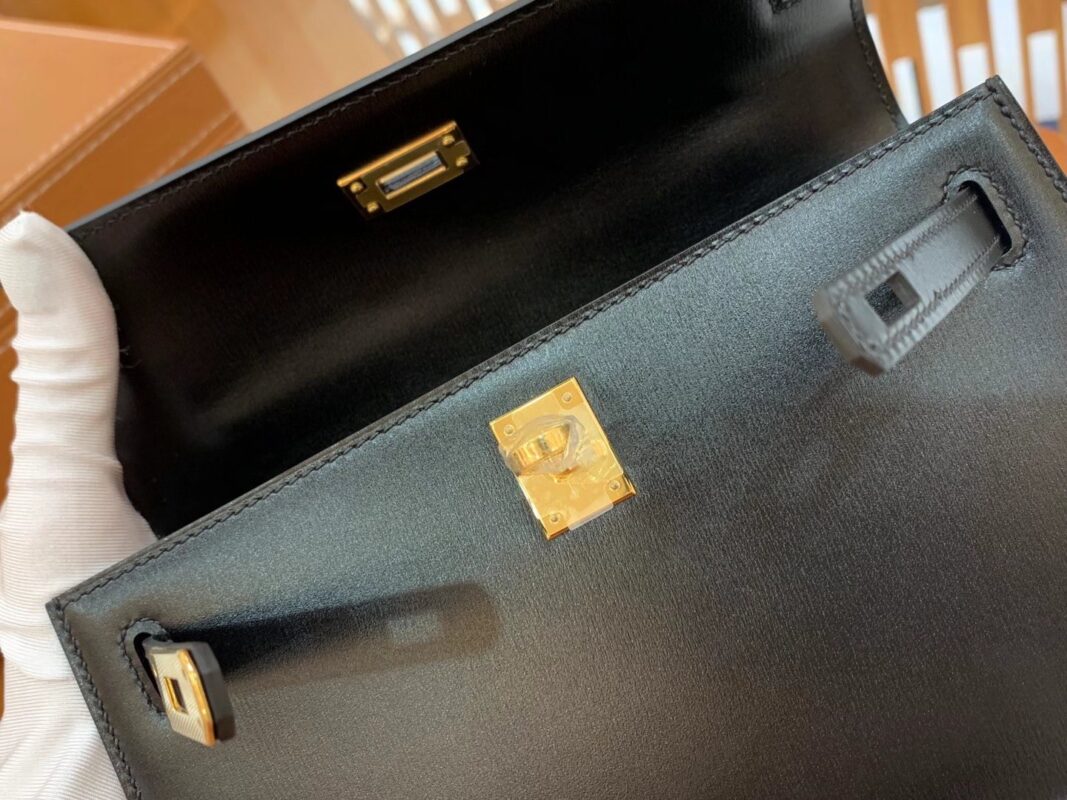 Mini Kelly Generation 22cm Black Gold Buckle Imported BOX cowhide. Fully hand-sewn