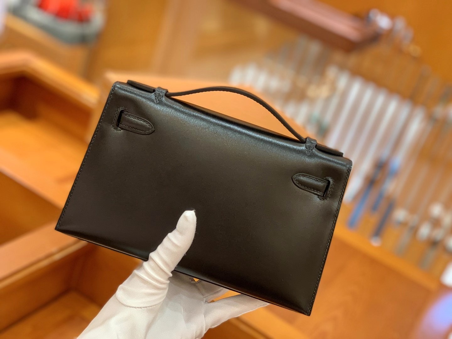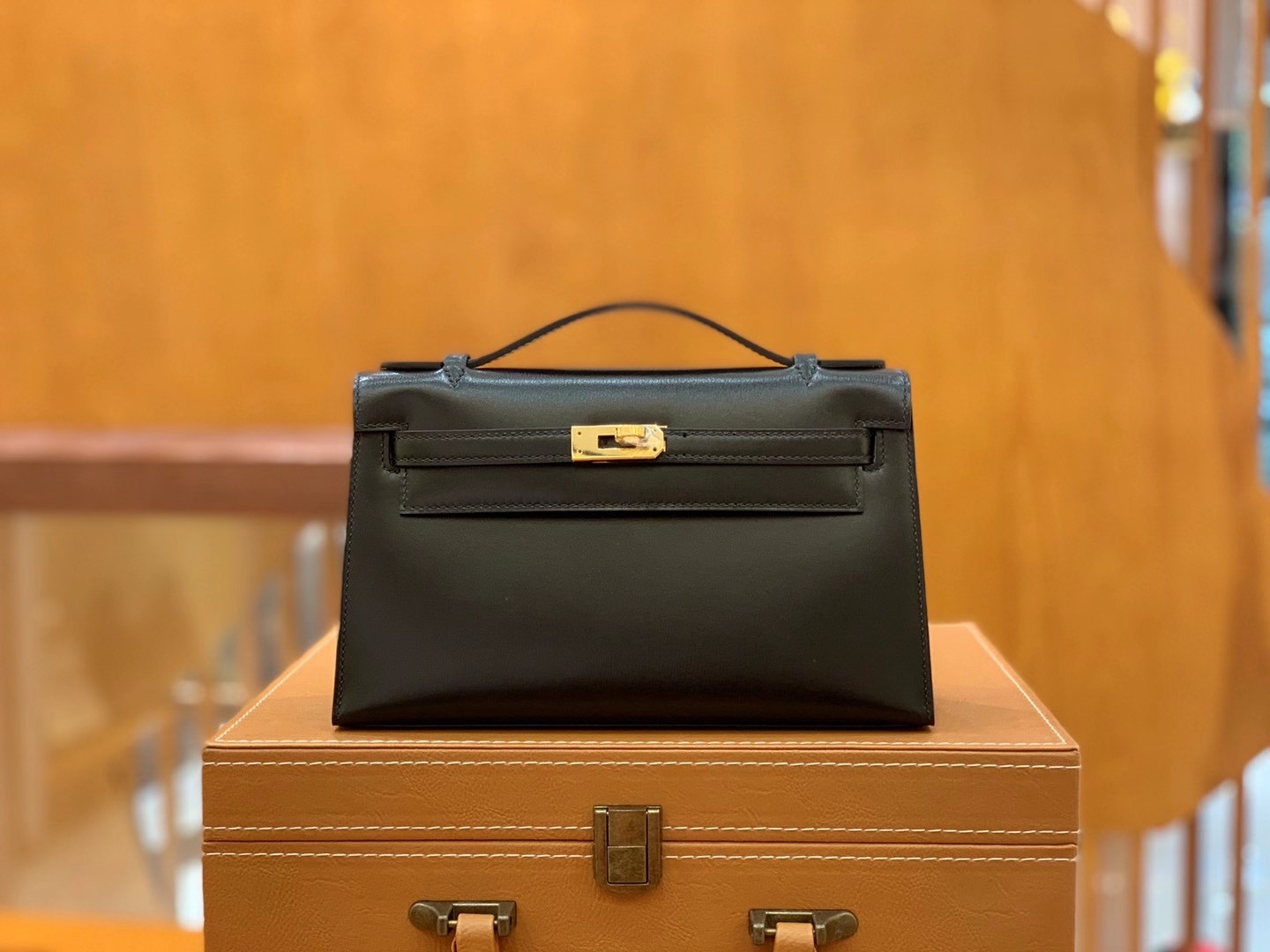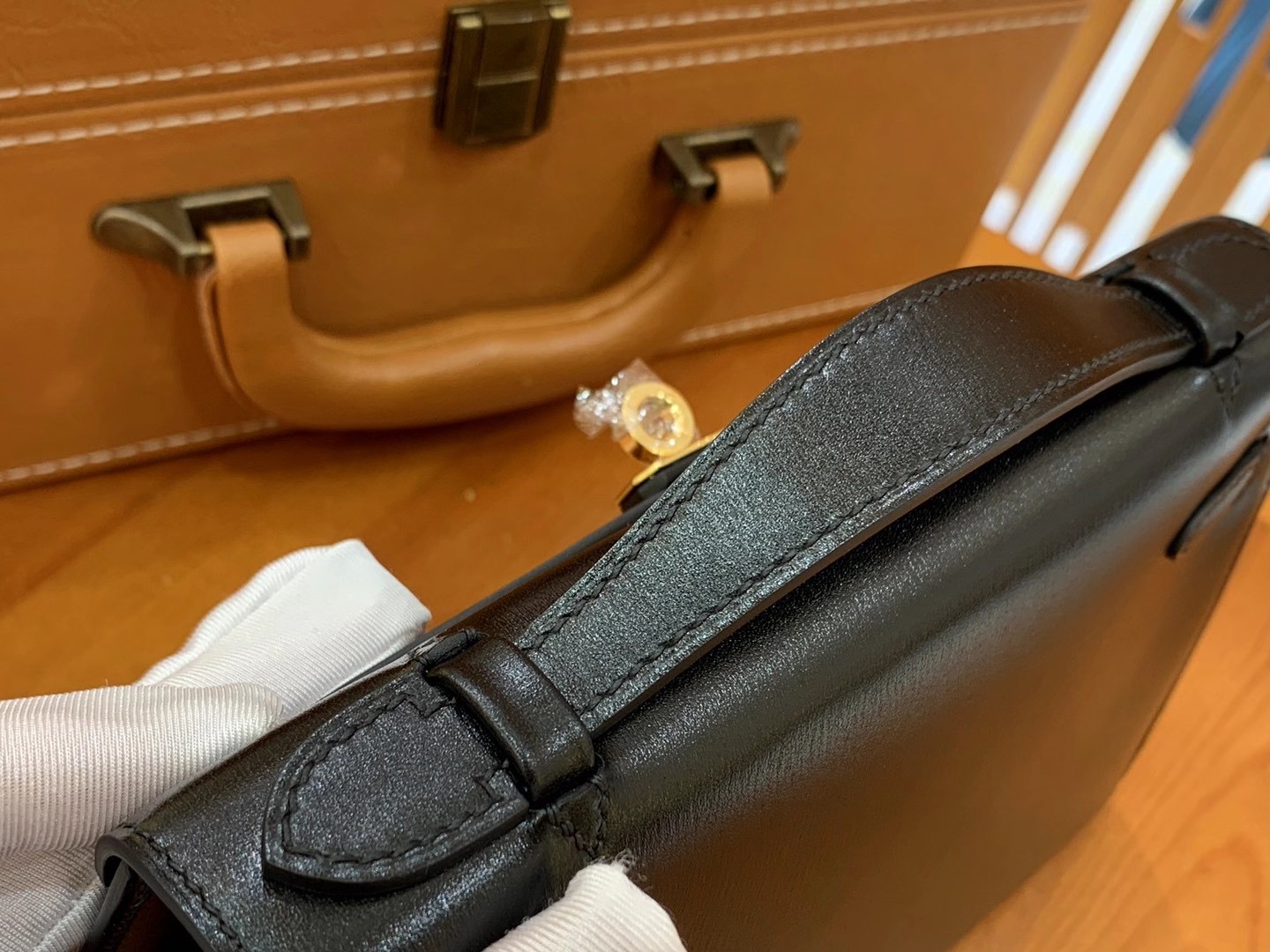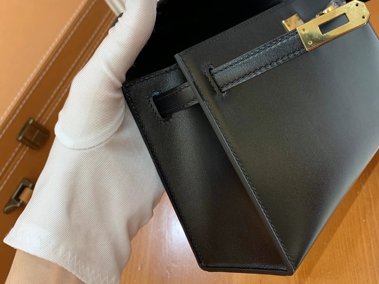 Mini Kelly Generation 22cm Black Gold Buckle Imported BOX cowhide. Fully hand-sewn