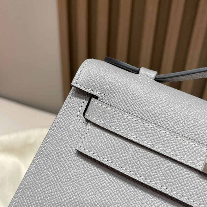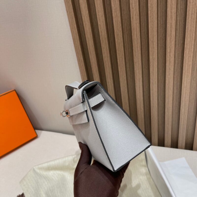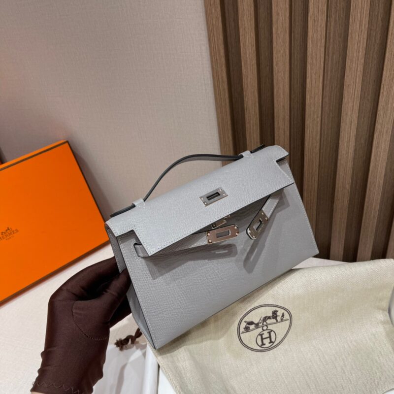 Kelly Pochette Generation 22cm. Epsom leather 4Z Seagull Gray (Gris Mouette). Silver Buckle.