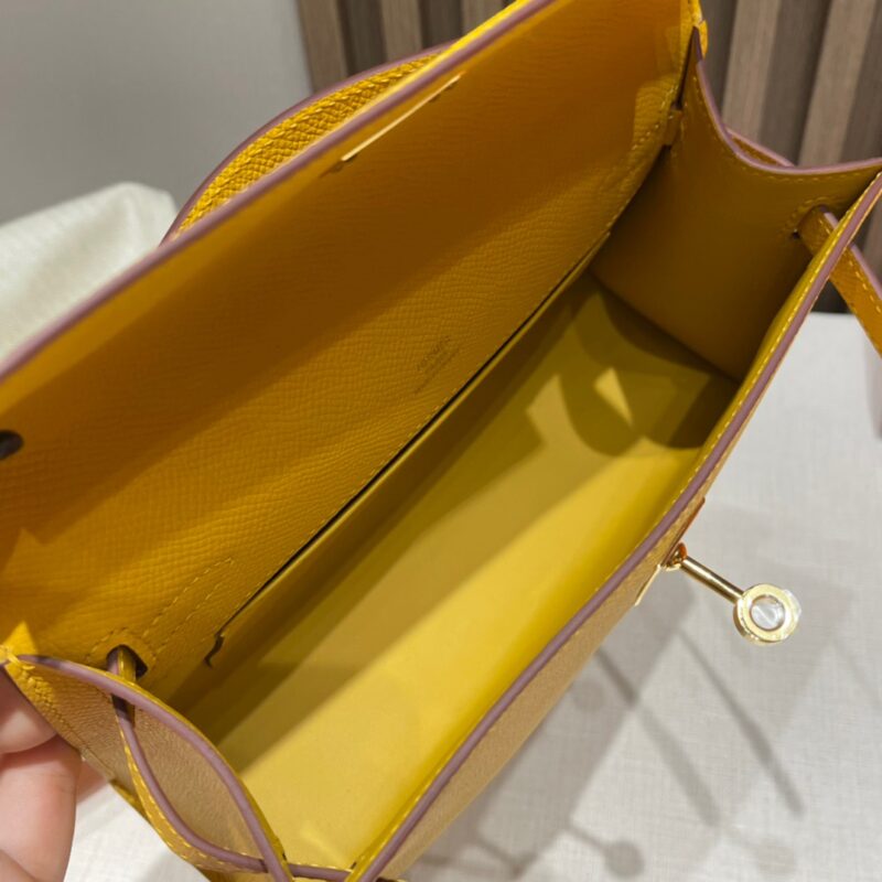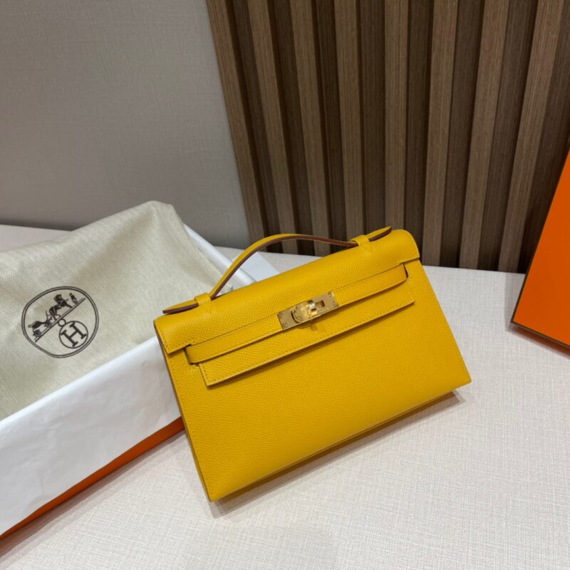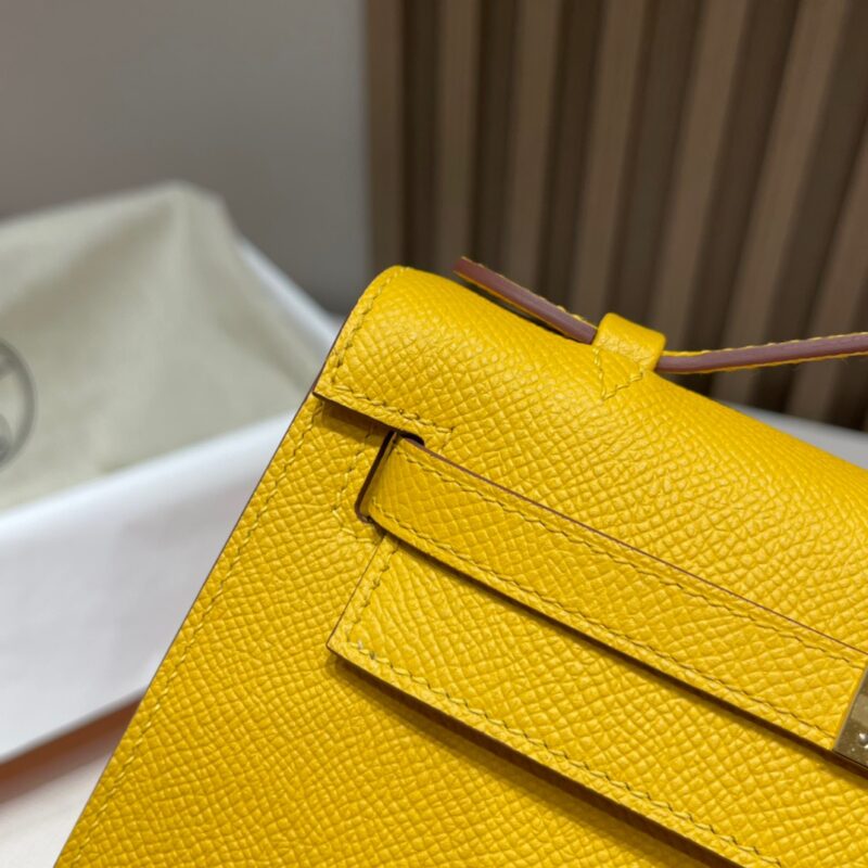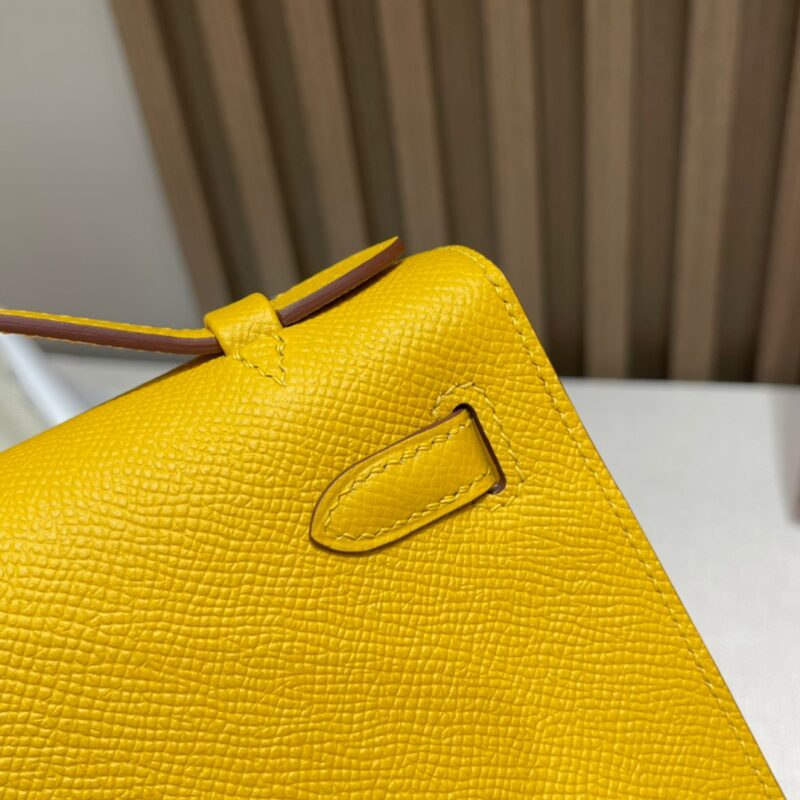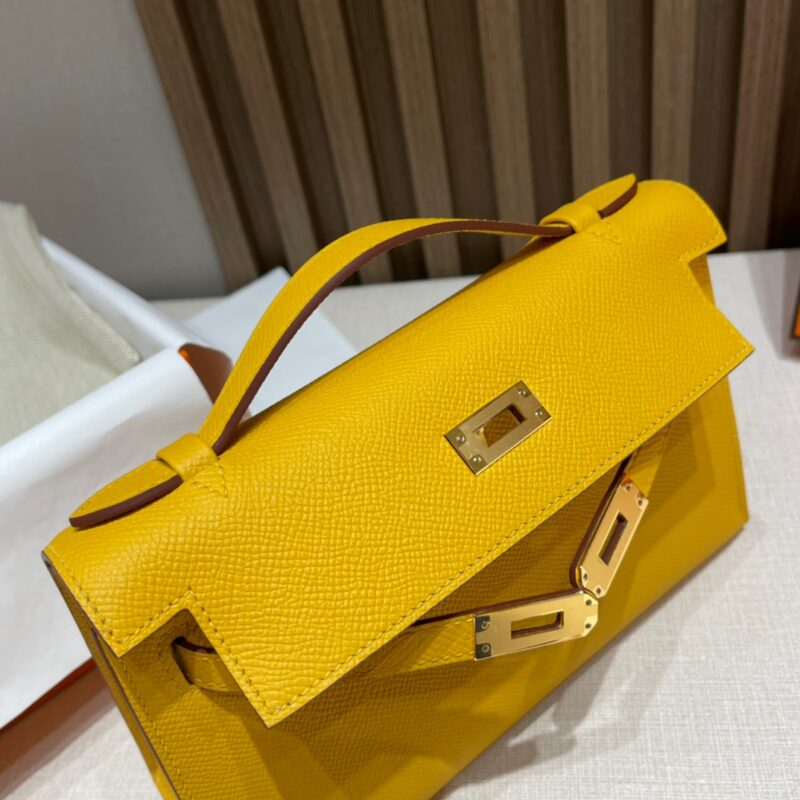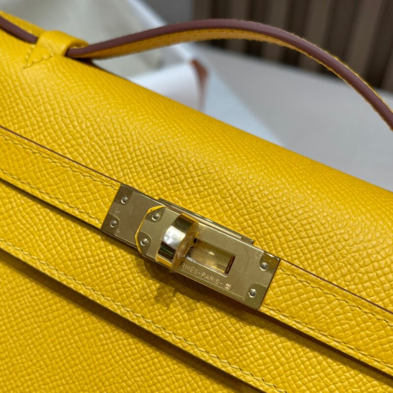 Kelly Pochette First Generation. Epsom leather. 9D Jaune Ambre. Gold Buckle.