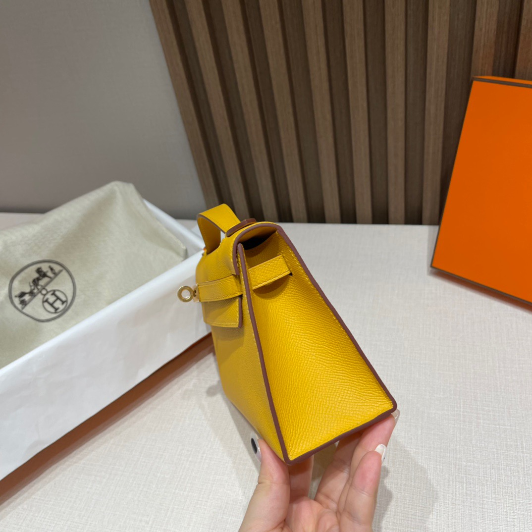 Kelly Pochette First Generation. Epsom leather. 9D Jaune Ambre. Gold Buckle.