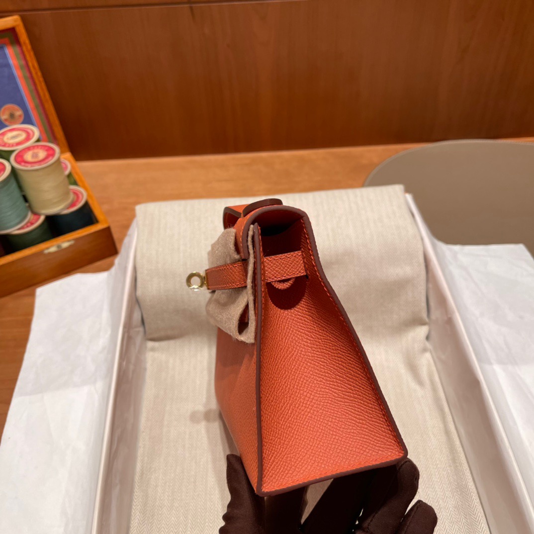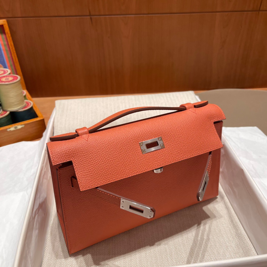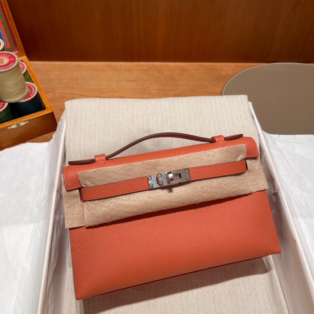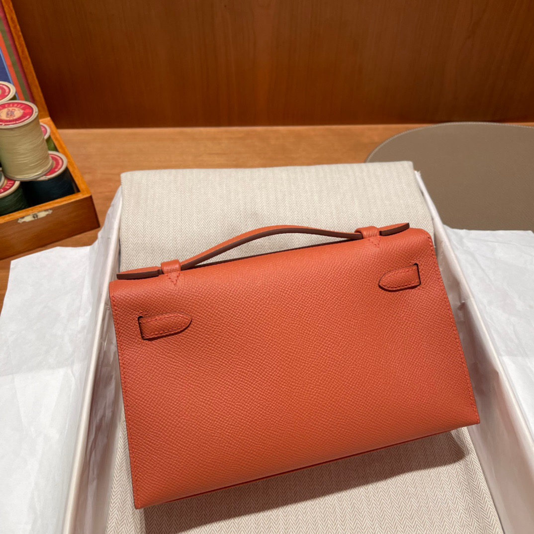 Kelly Pochette First Generation. Epsom leather. 3L Rose Tea Pink. Gold Buckle.