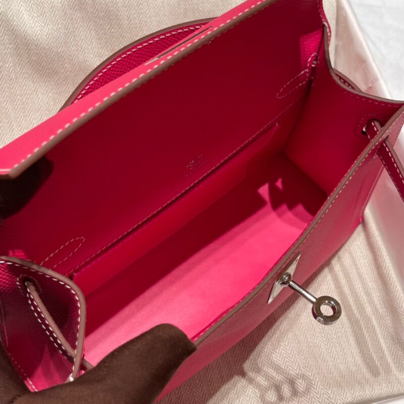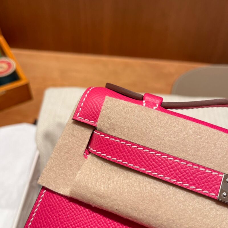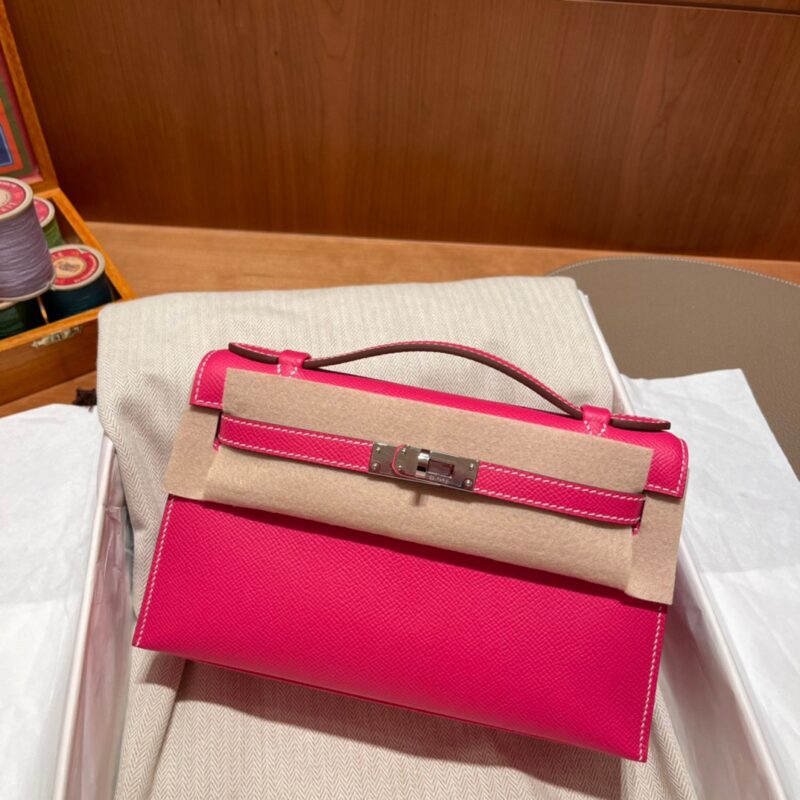Pochette First Generation 22cm. Epsom leather. E5 Rose Tyrien. Silver Buckle.