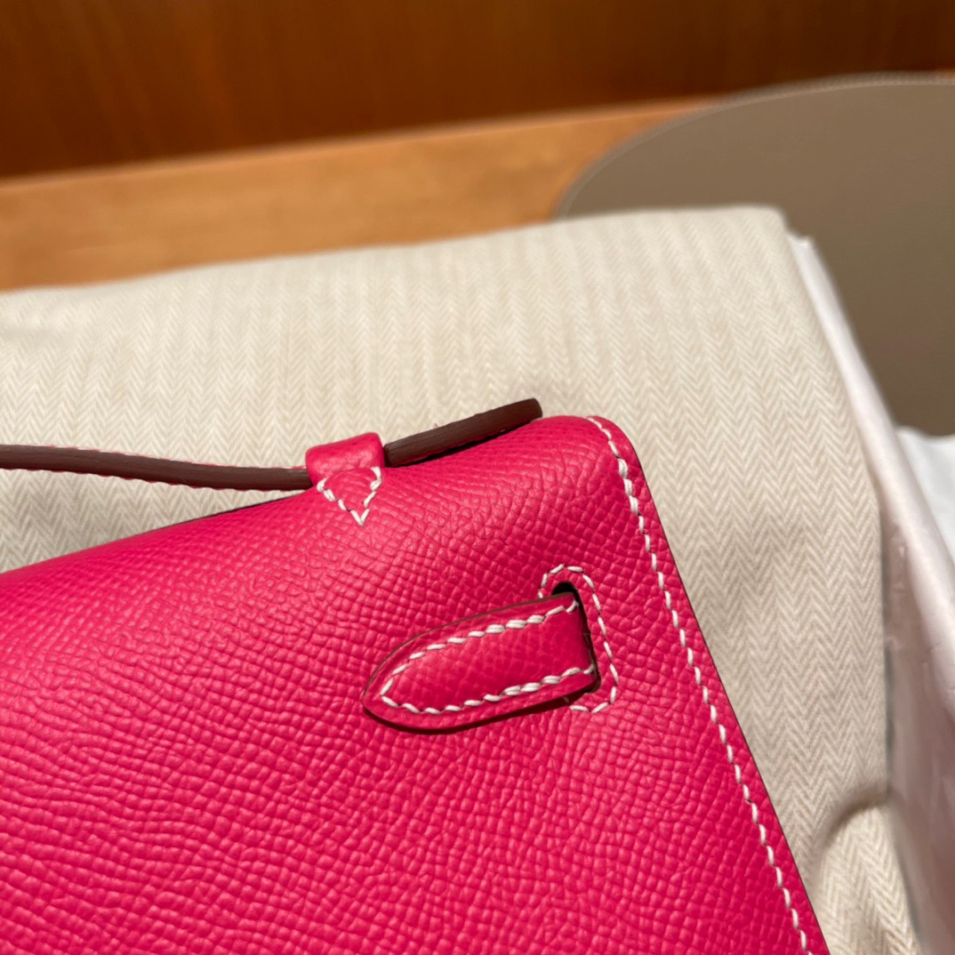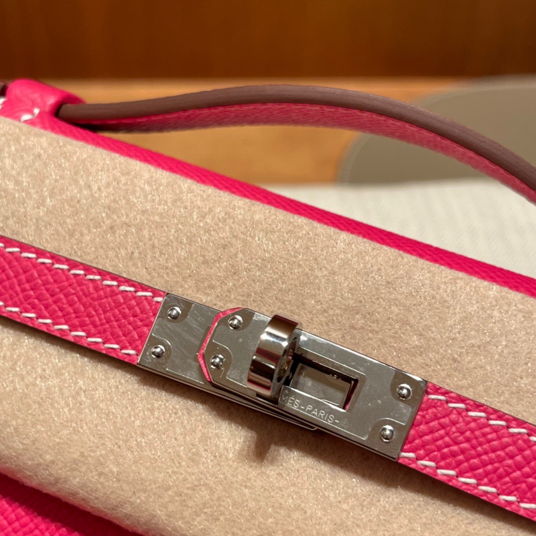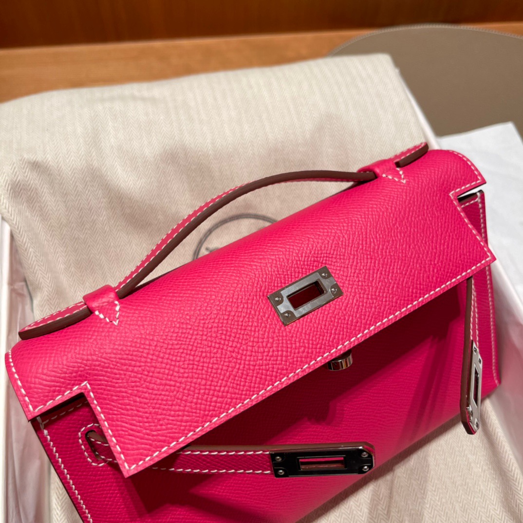 Pochette First Generation 22cm. Epsom leather. E5 Rose Tyrien. Silver Buckle.