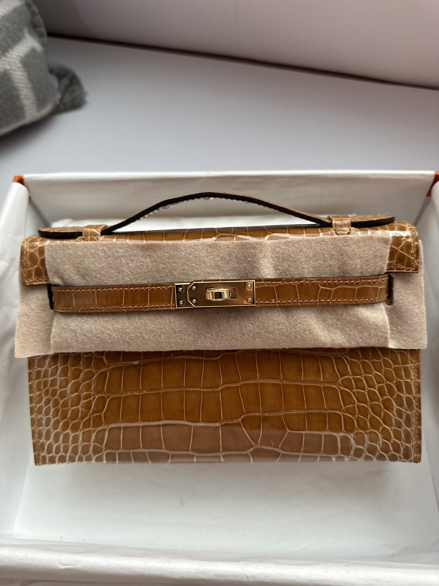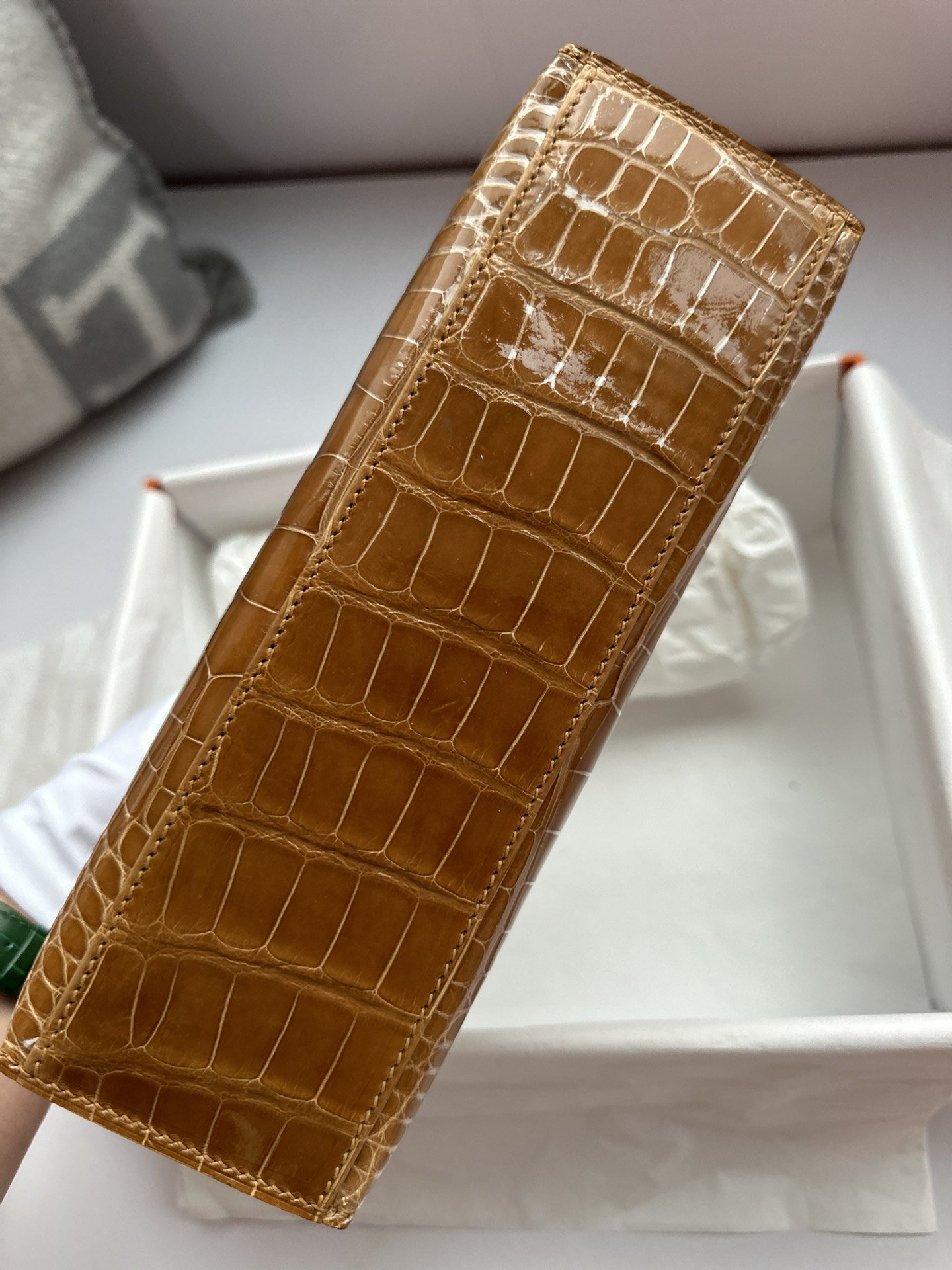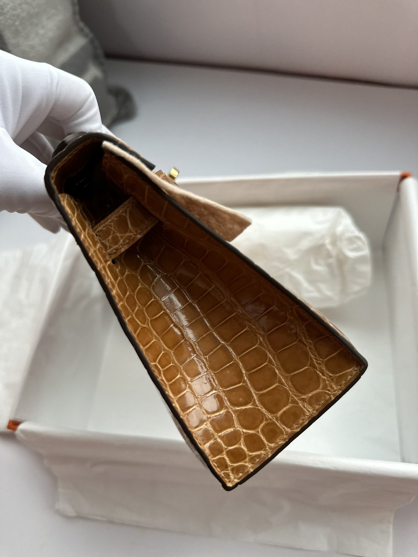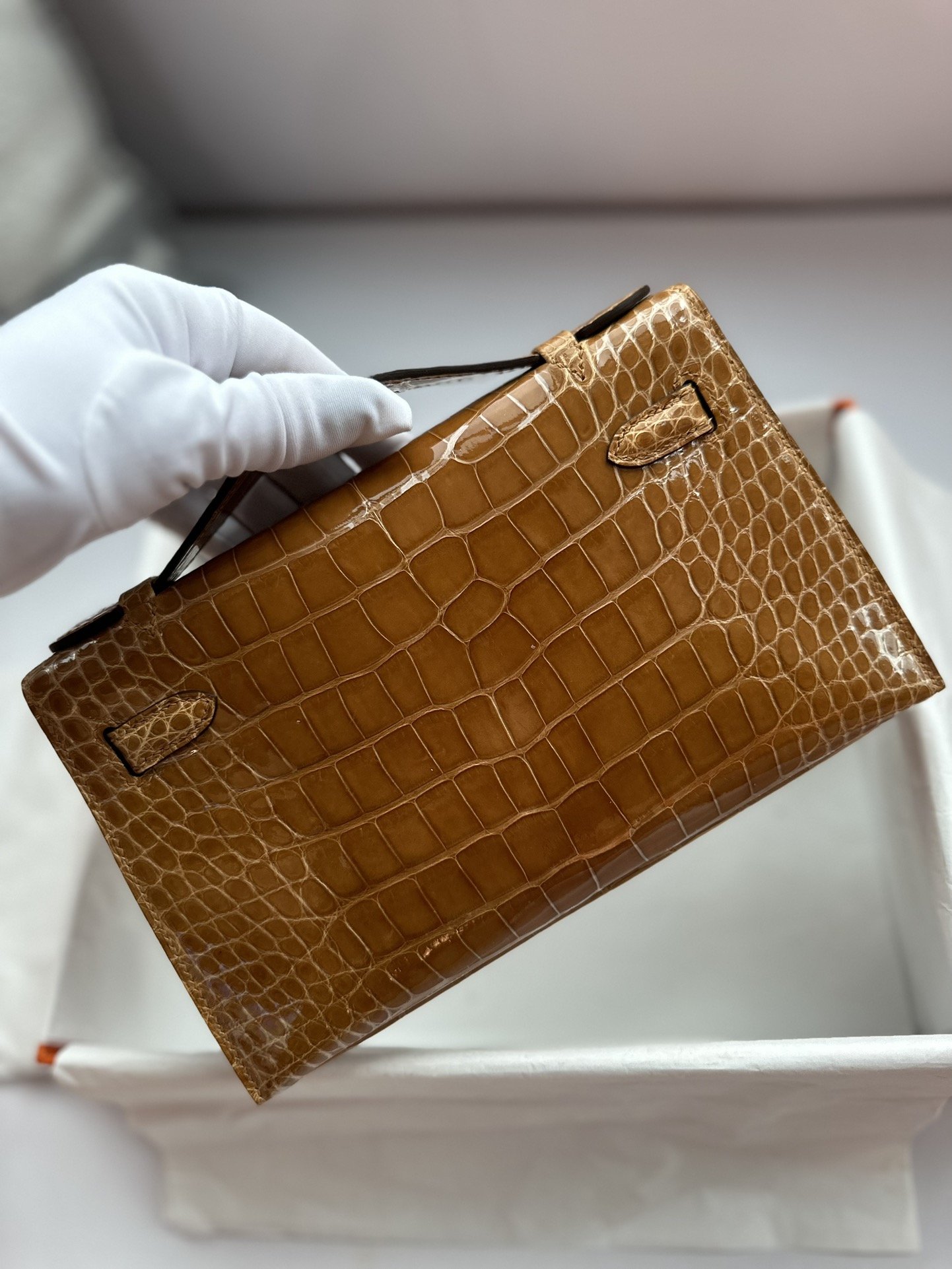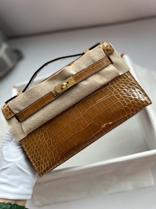 Kelly Pochette in Ficelle Shiny Alligator GHW